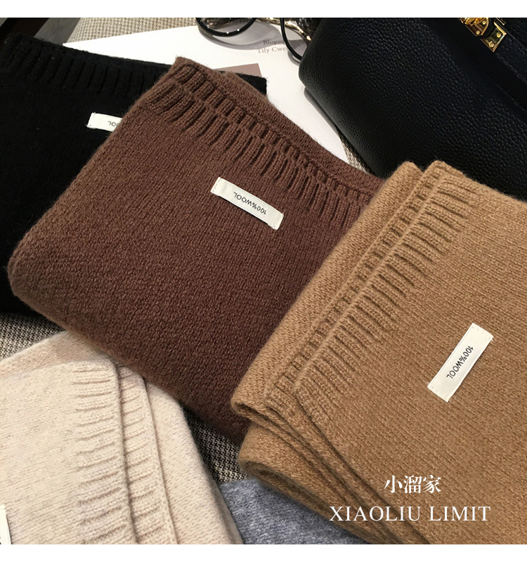 100% WOOL 호주 순수 WOOL 스카프 겨울 다목적 단색 목도리 학생과 커플을위한 이중 목적 따뜻한 스카프