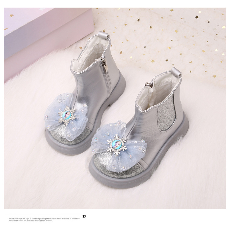 소녀를위한 어린이 가죽 부츠 겨울 신상품 기모 따뜻한 중간 부츠 공주 엘사 핑크 활 아기 선물