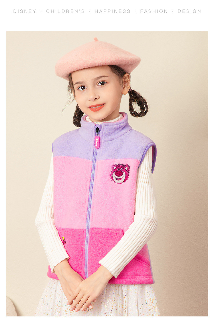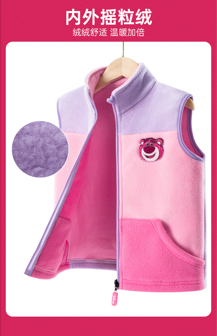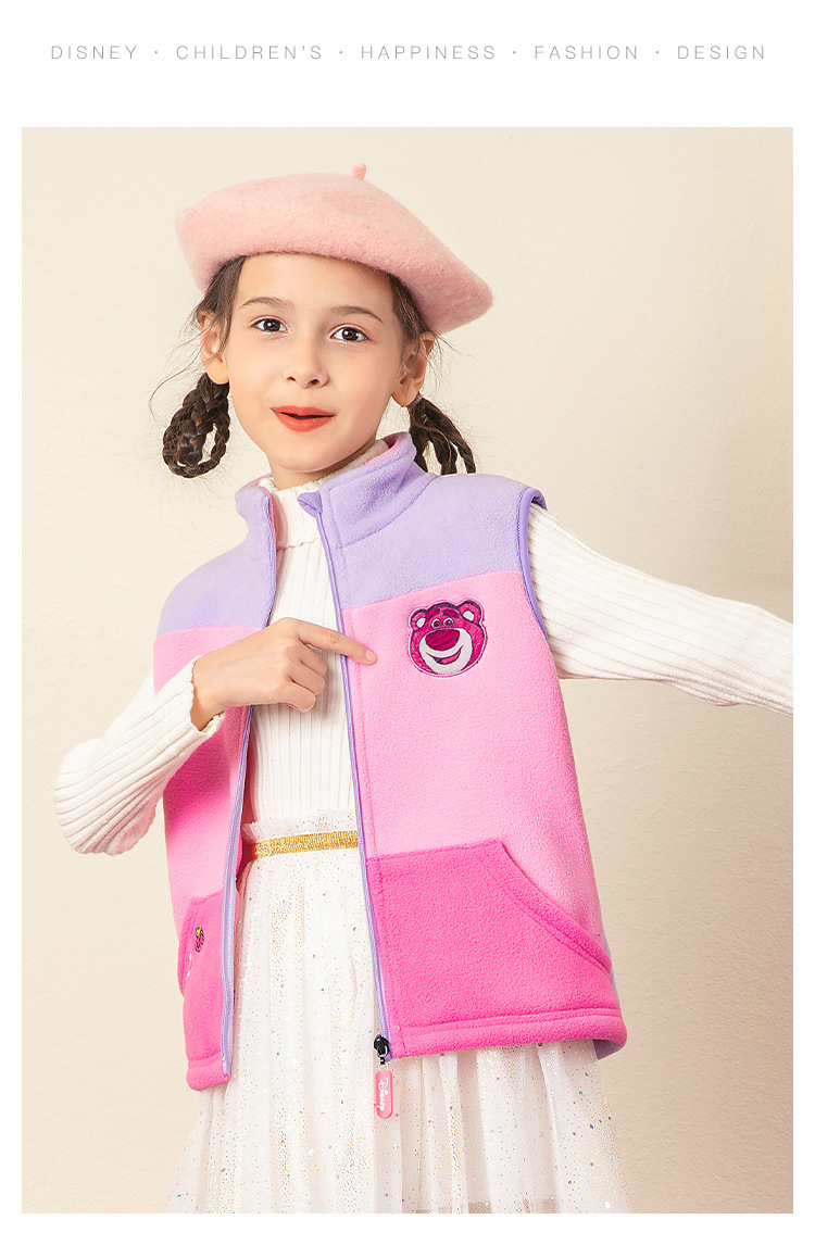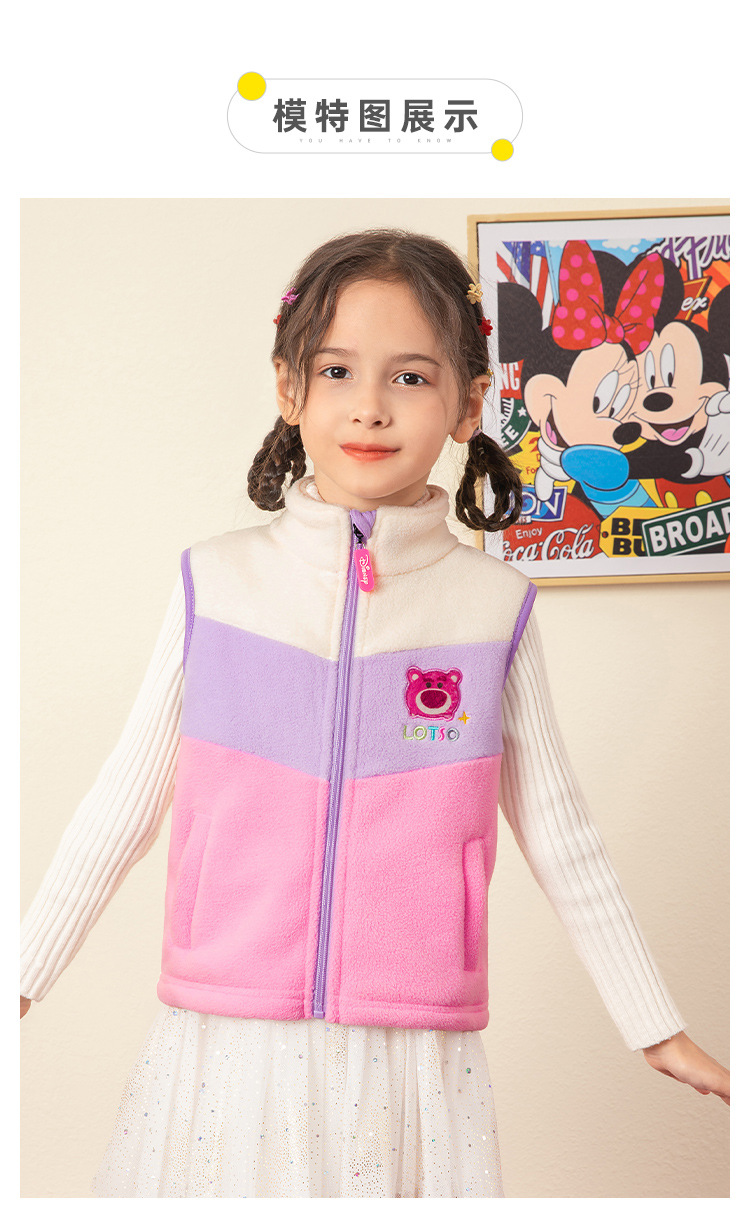 디즈니 2023 가을 어린이 딸기 곰 폴라 양털 조끼 학생 방풍 따뜻한 탑 조끼