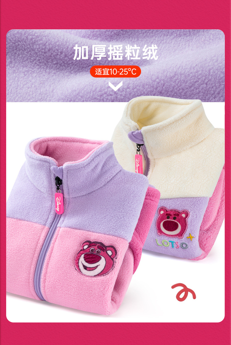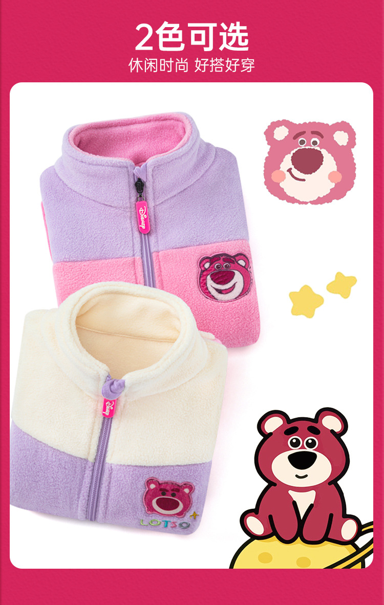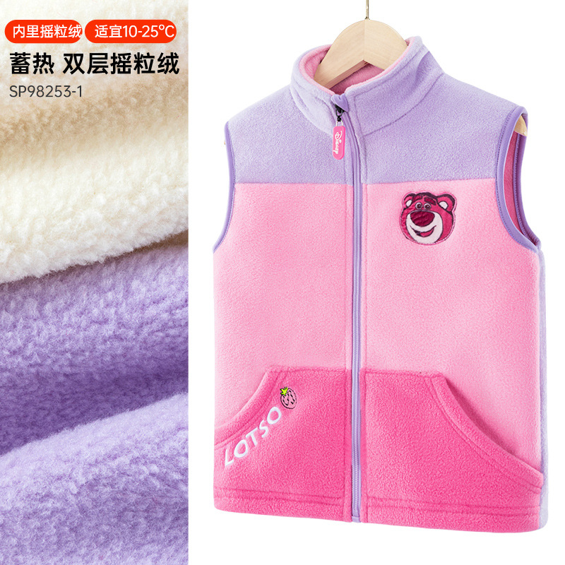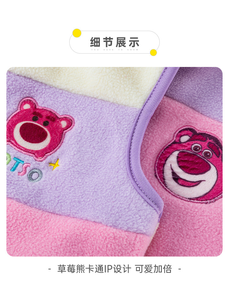 디즈니 2023 가을 어린이 딸기 곰 폴라 양털 조끼 학생 방풍 따뜻한 탑 조끼