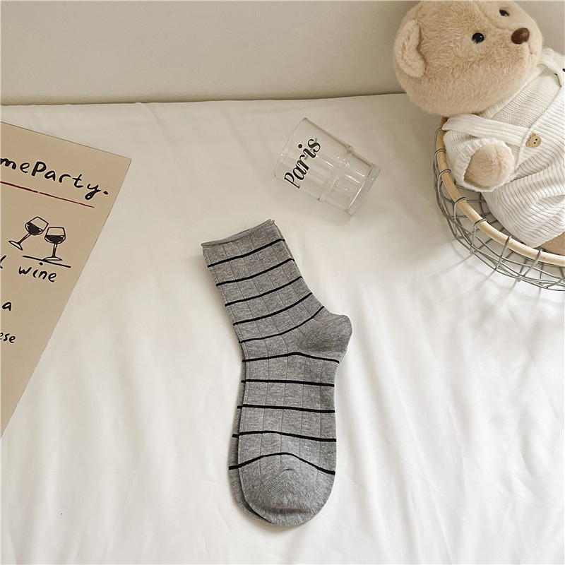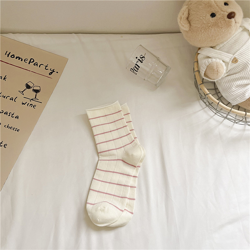 양말 여성용 한국 동대문 스트라이프 중간 길이 양말 모란디 스타일 컬링 스택 일본식 빈티지 유행 여성 양말