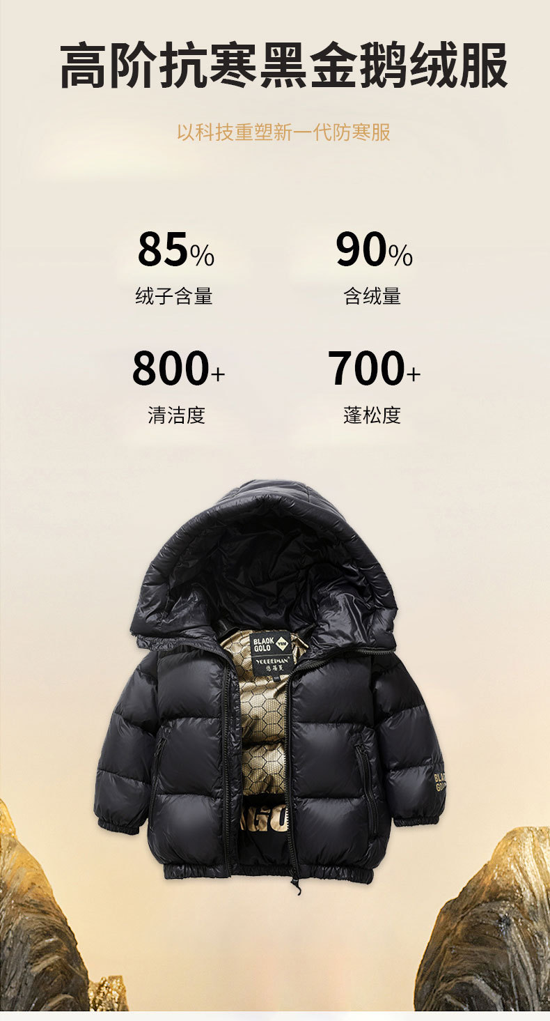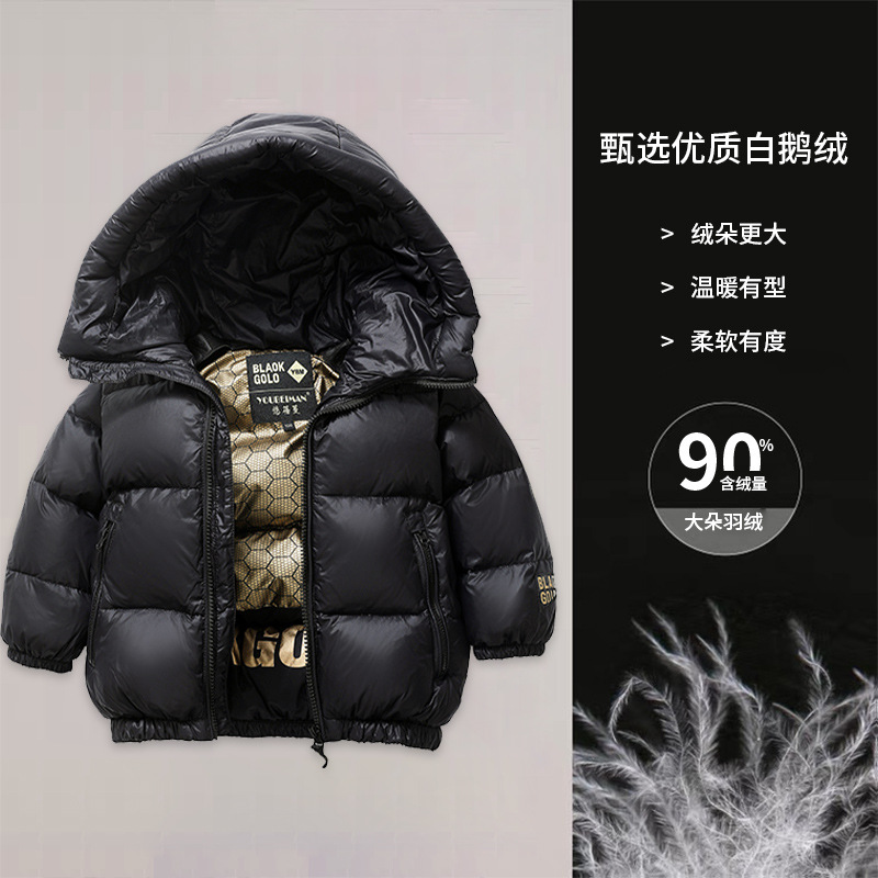 어린이 다운 재킷 겨울 소년 소녀 블랙 골드 짧은 두꺼운 빵 거위 재킷 어린이 겨울 옷스토어 가기