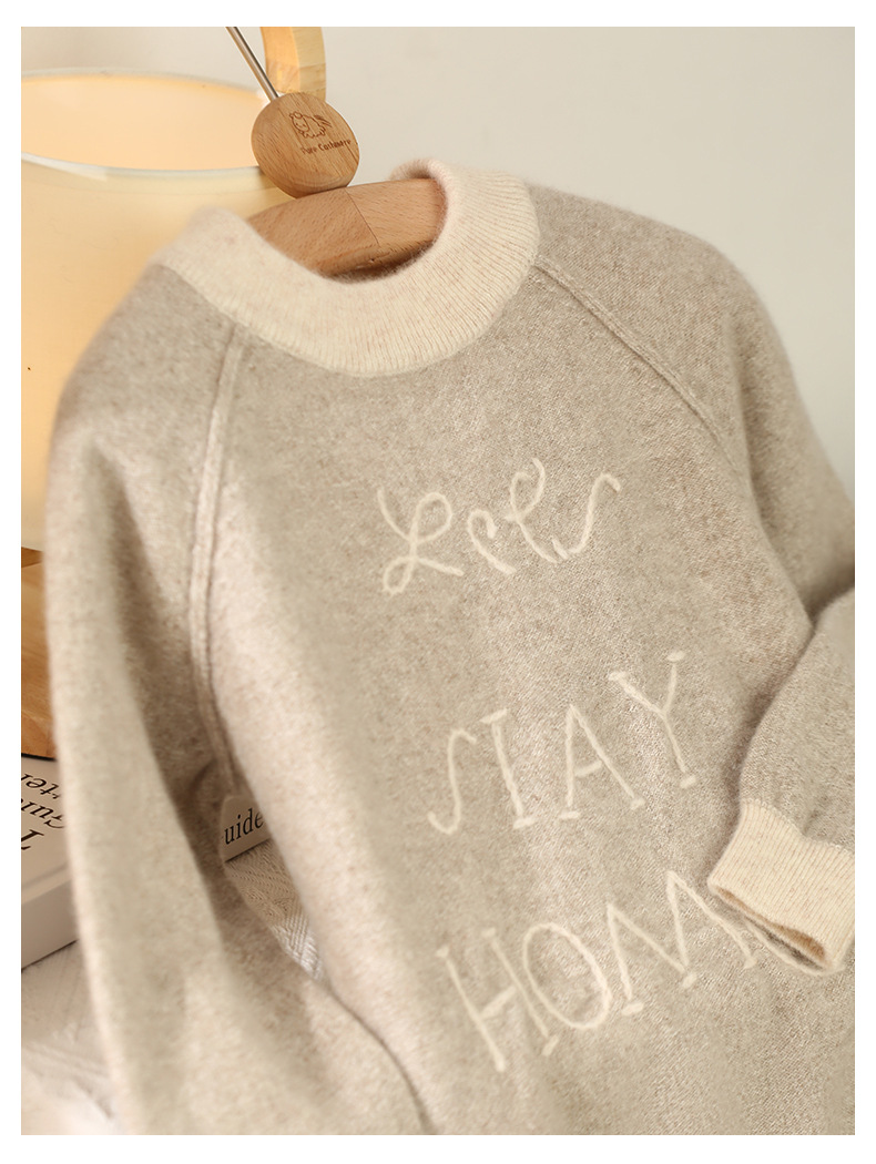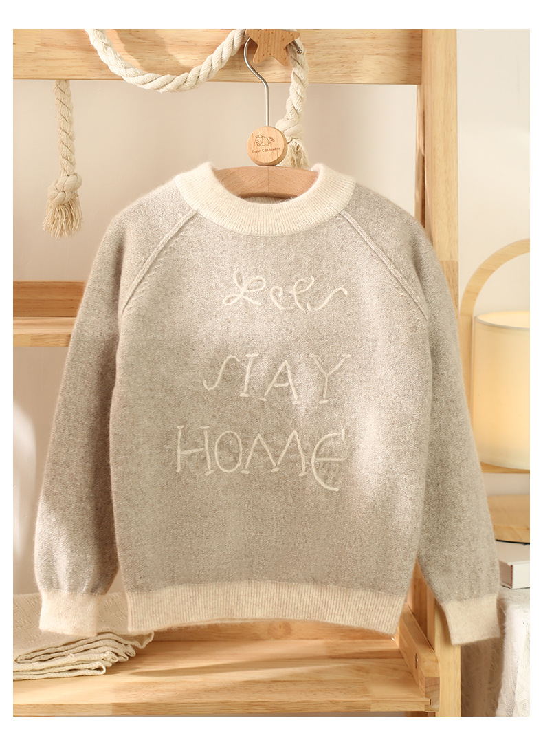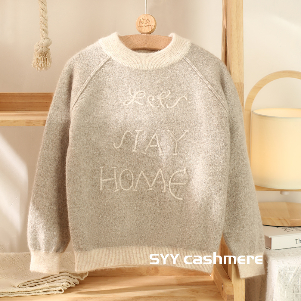 양 양의 수 영어 문자 세대 수 라운드 넥 패딩 어린이 캐시미어 스웨터스토어 가기
