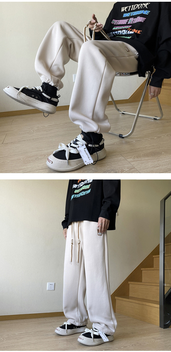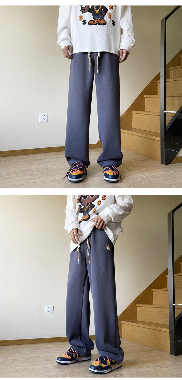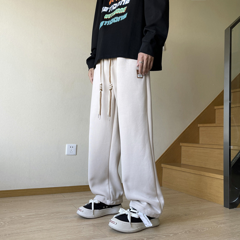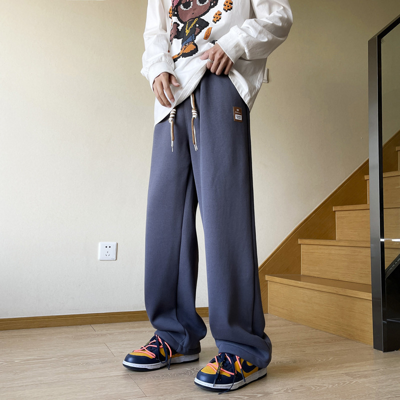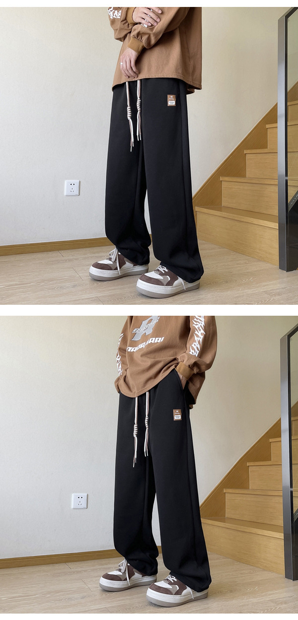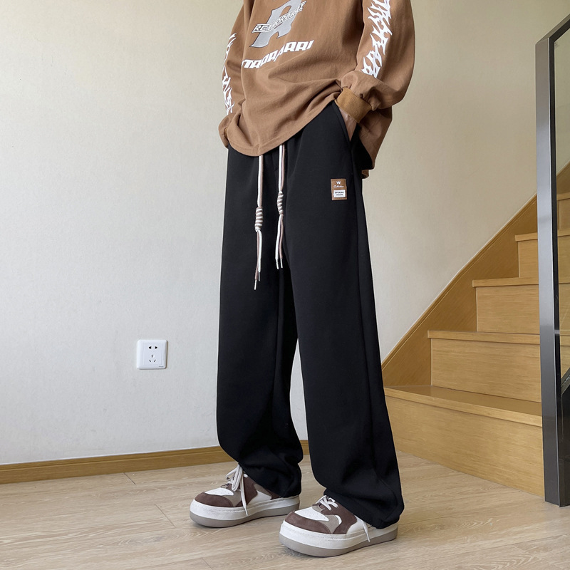 바지 남성용 2023 가을 겨울 패션 브랜드 캐주얼 루즈한 스트레이트 팬츠 착용 하이 스트리트 아메리칸 바이브 스포츠 발목 길이 바지스토어 가기