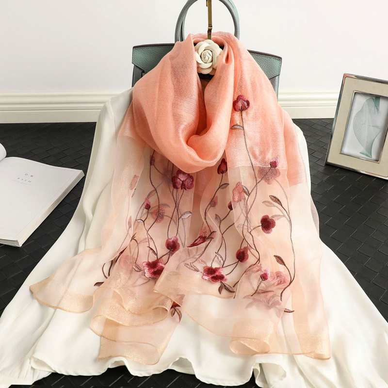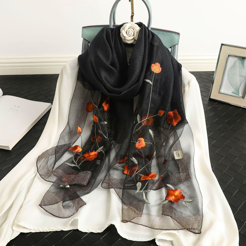 새로운 자수 실크 울 스카프 여성 뽕나무 실크 프놈펜 스카프 기질 장식 자수 에어컨 숄 도매스토어 가기