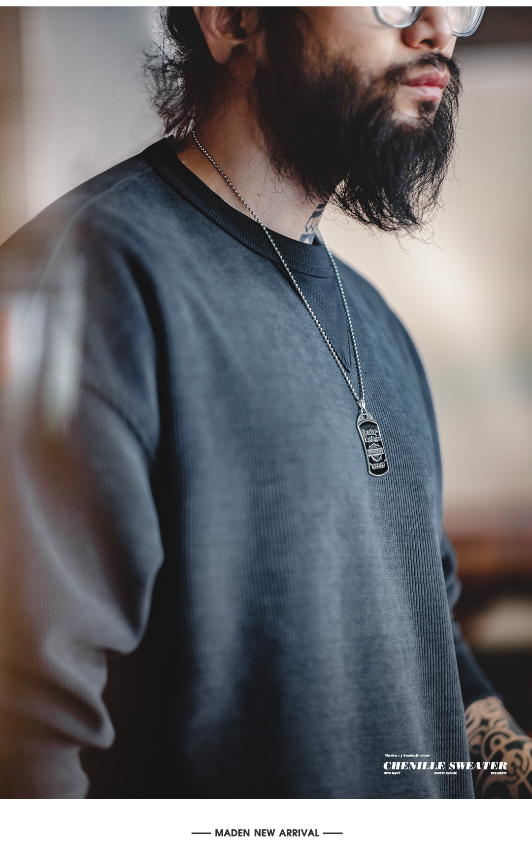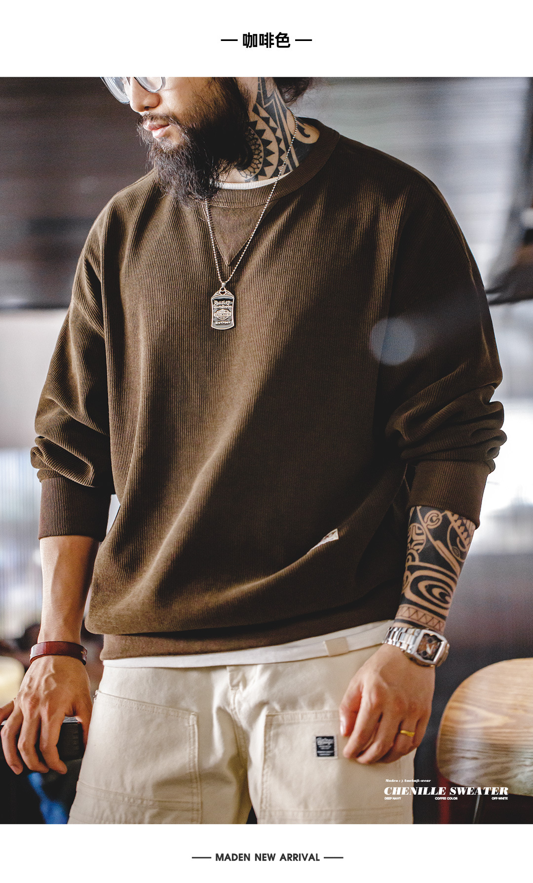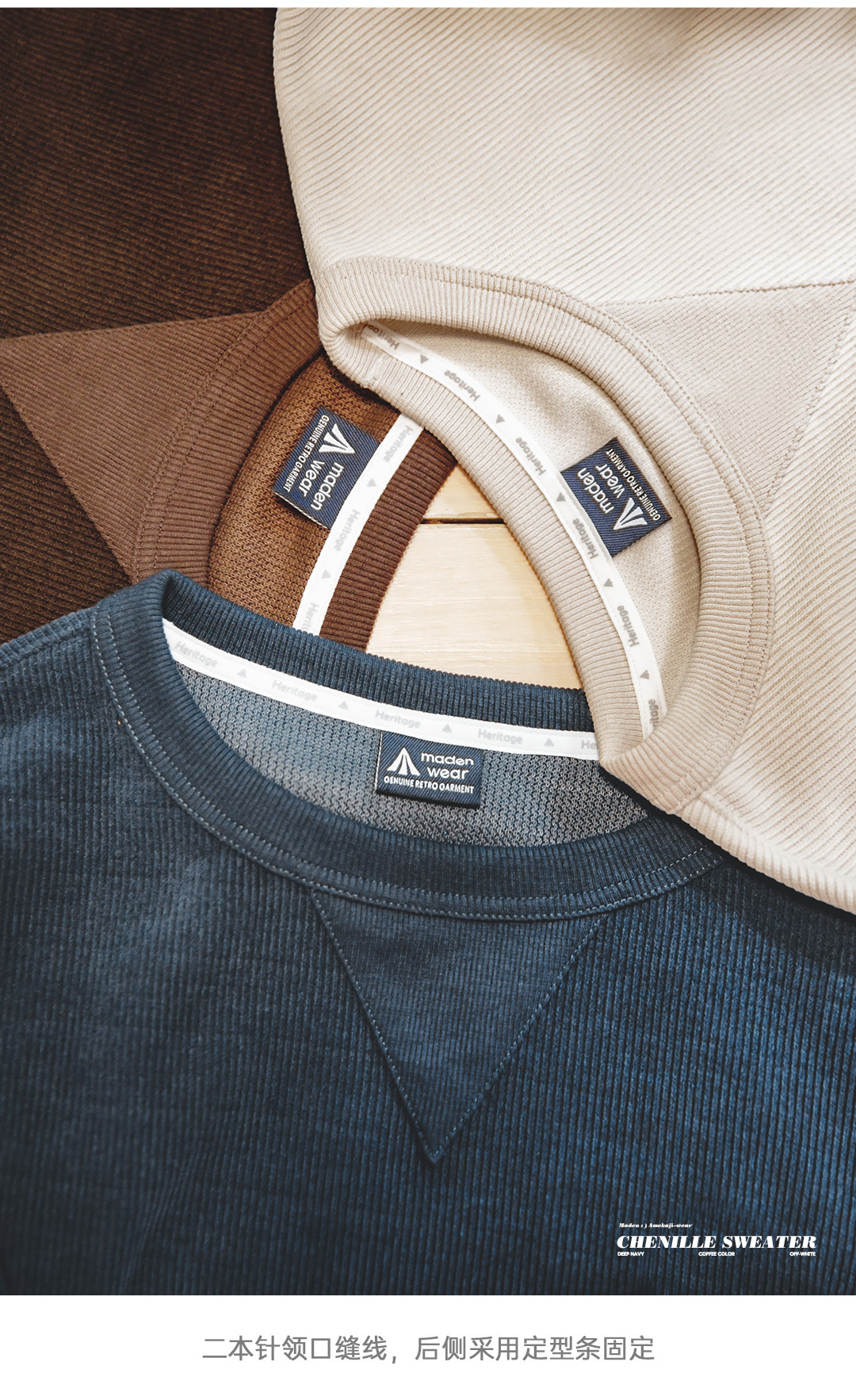 Madden Tooling 아메리칸 스타일 레트로 헤비 웨이트 셔닐 스웨터 라운드 넥 기본 주름 방지베이스 남성용 긴팔 티셔츠 가을스토어 가기