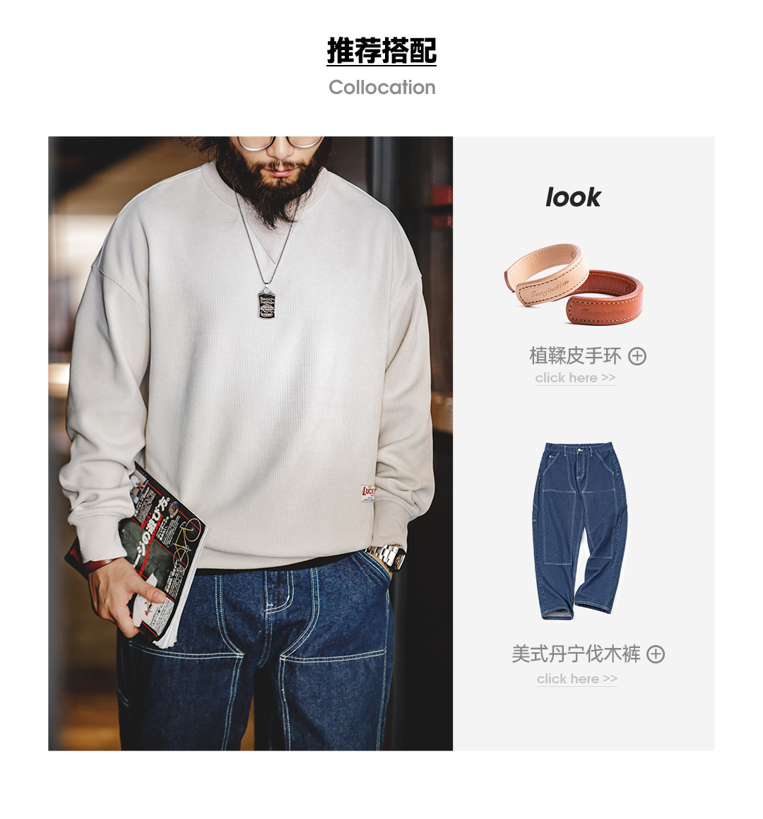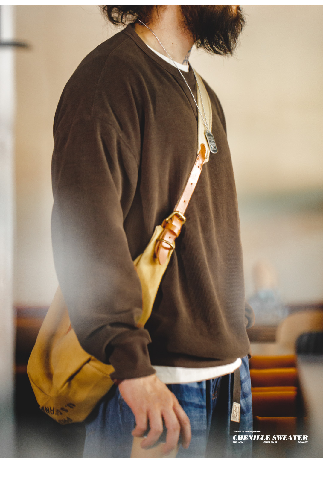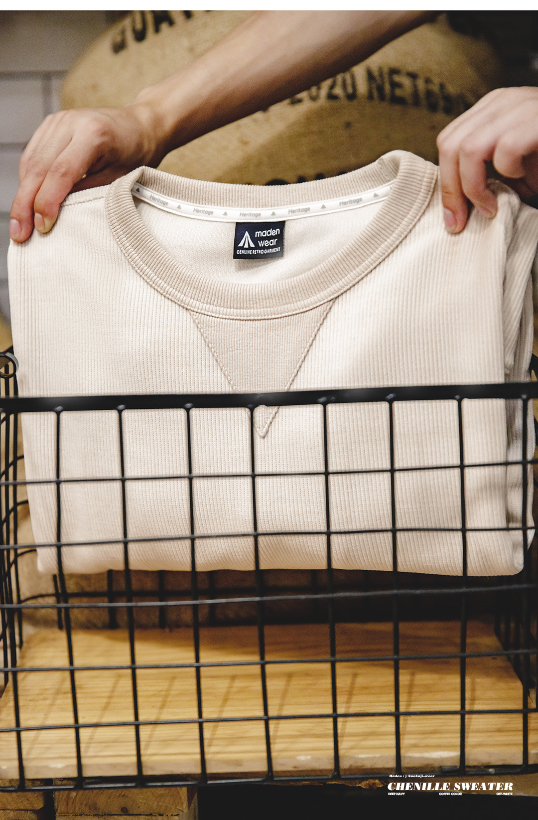 Madden Tooling 아메리칸 스타일 레트로 헤비 웨이트 셔닐 스웨터 라운드 넥 기본 주름 방지베이스 남성용 긴팔 티셔츠 가을스토어 가기