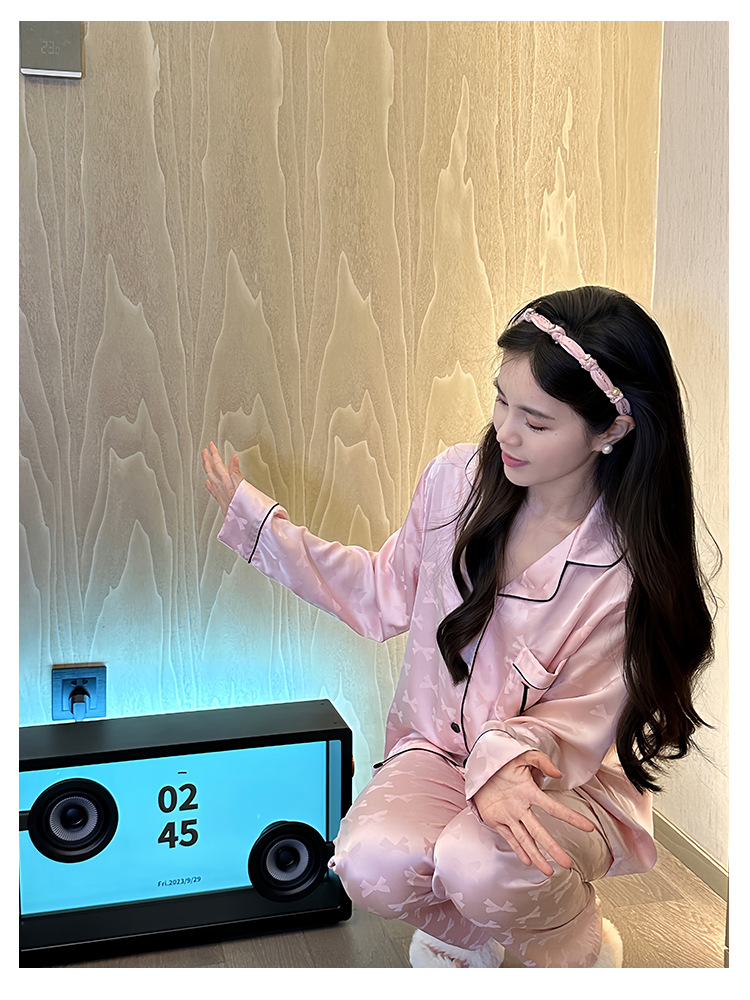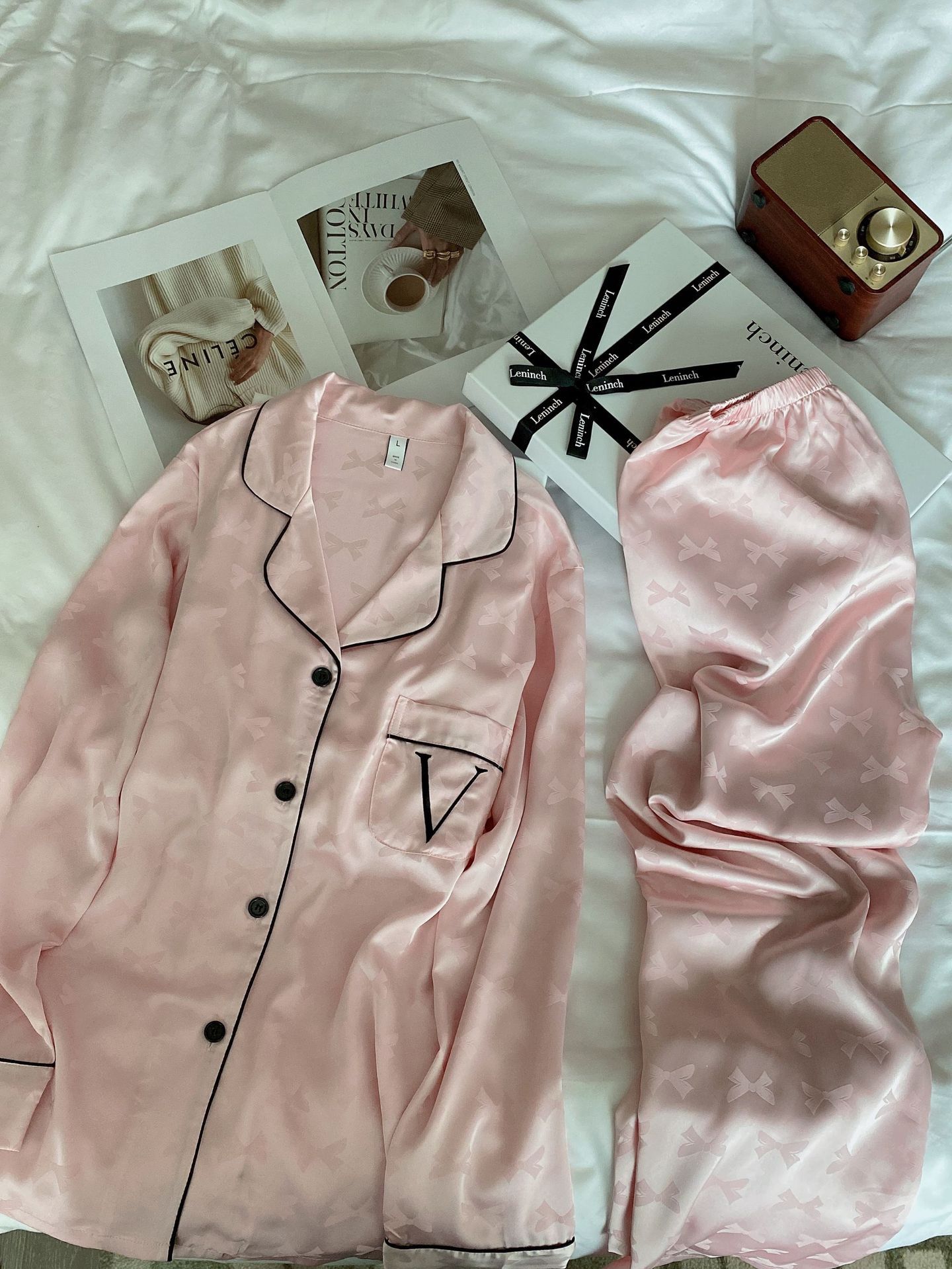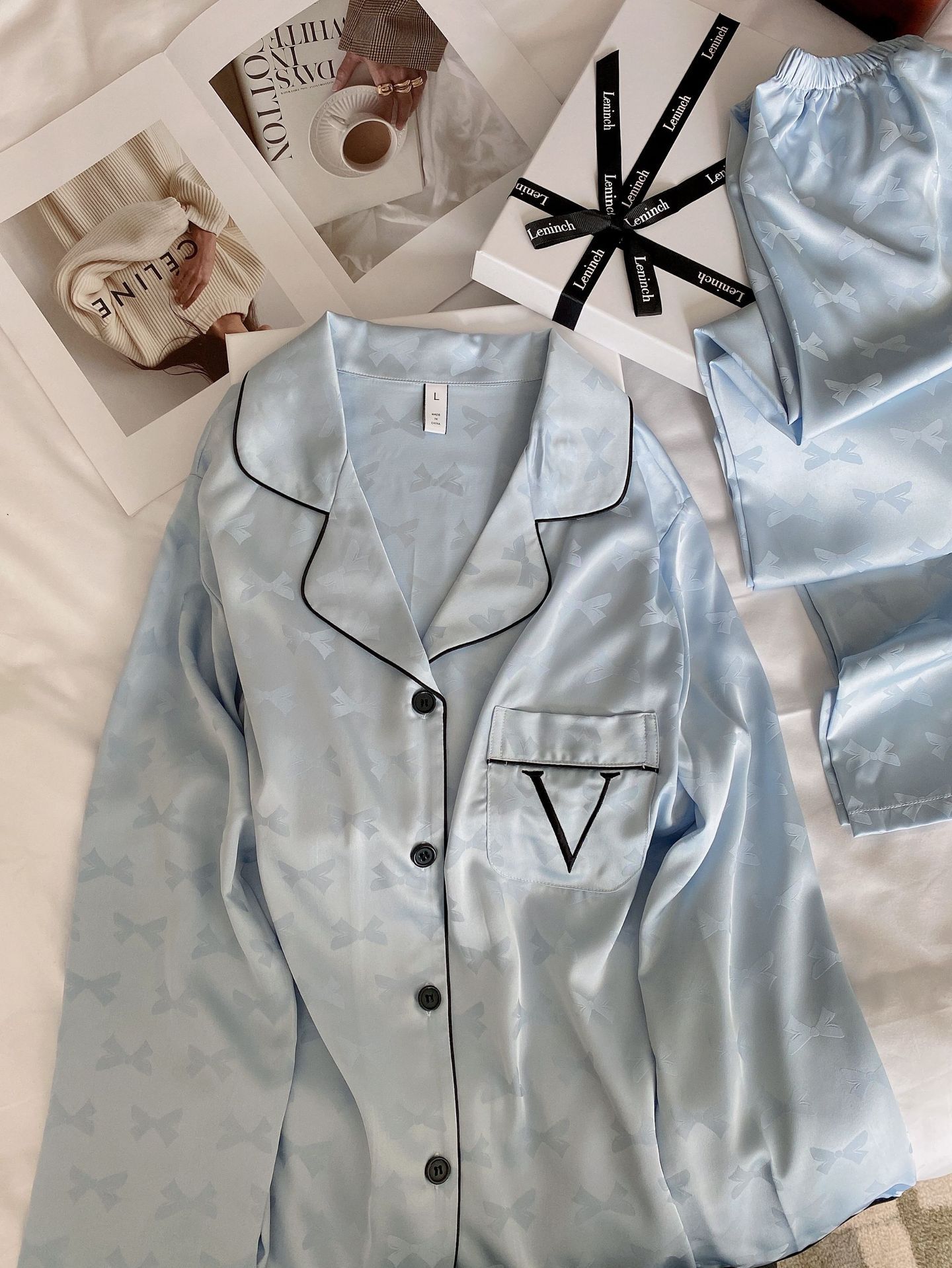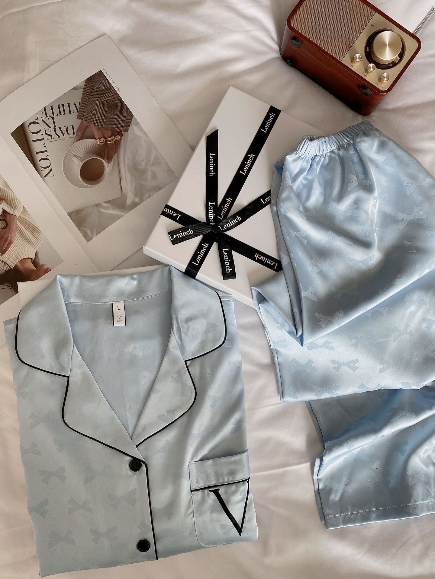 [달빛 나비] 여성용 신상 아이스 실크 잠옷 봄, 가을 얇은 고급 홈웨어 세트 여름스토어 가기