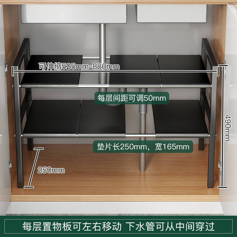개폐식 주방 싱크 보관 랙 캐비닛 적층 랙 다기능 파티션 냄비 보관 랙 마무리 선반