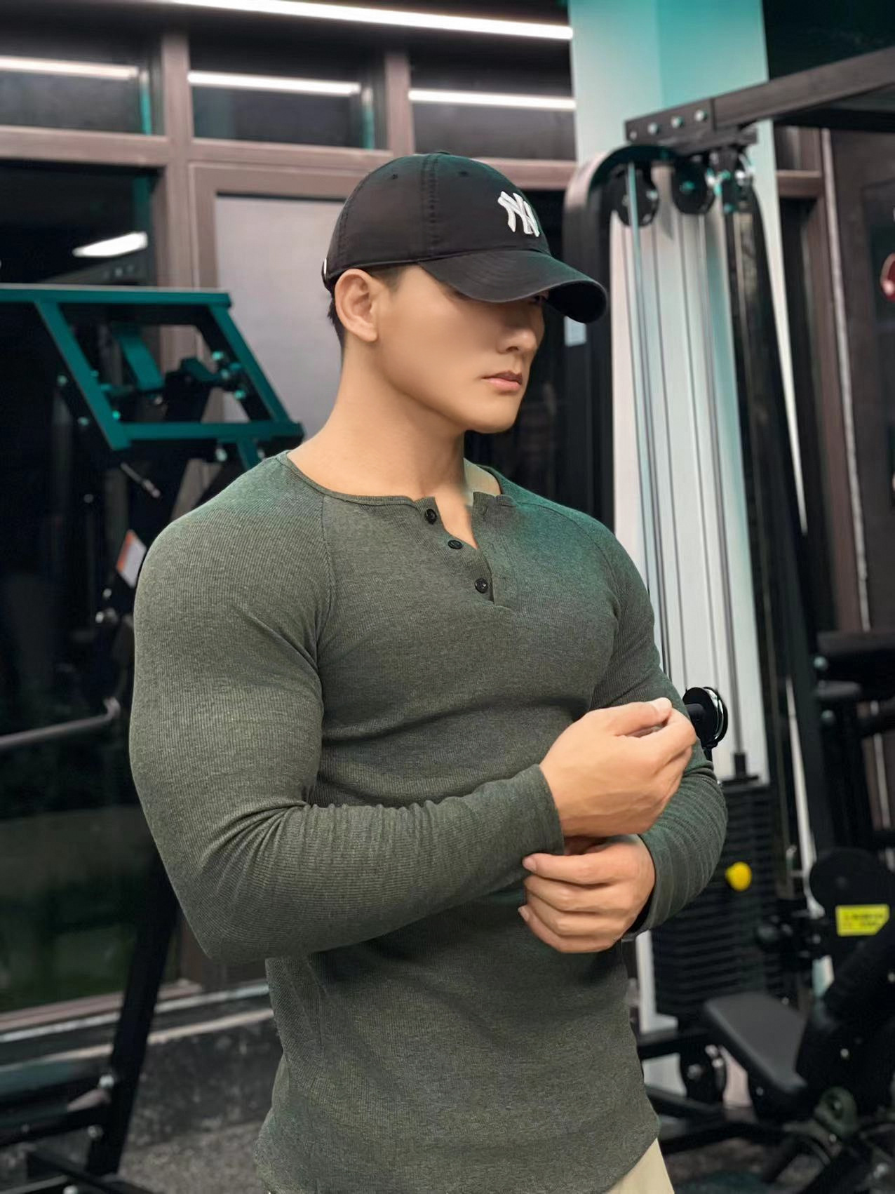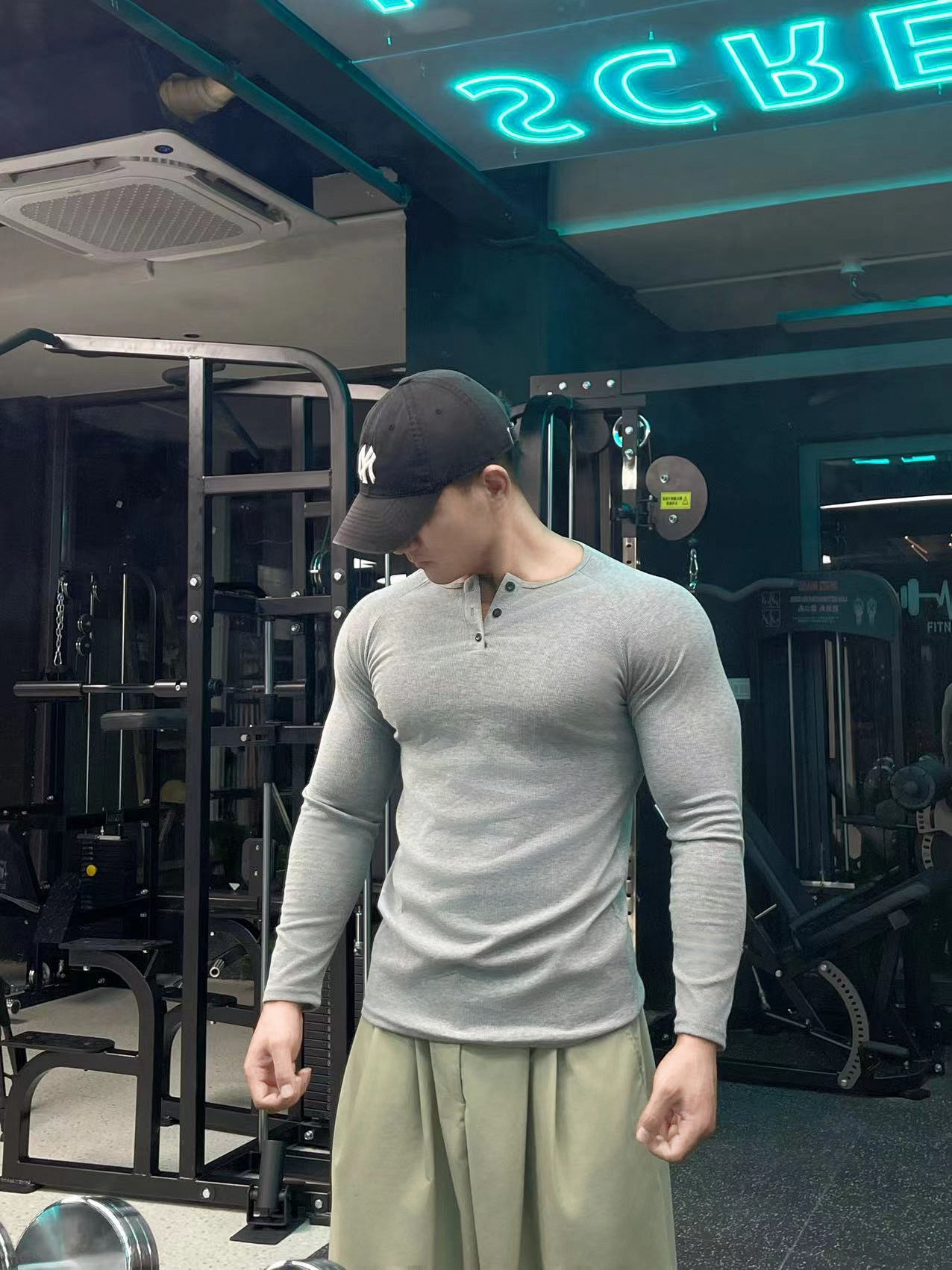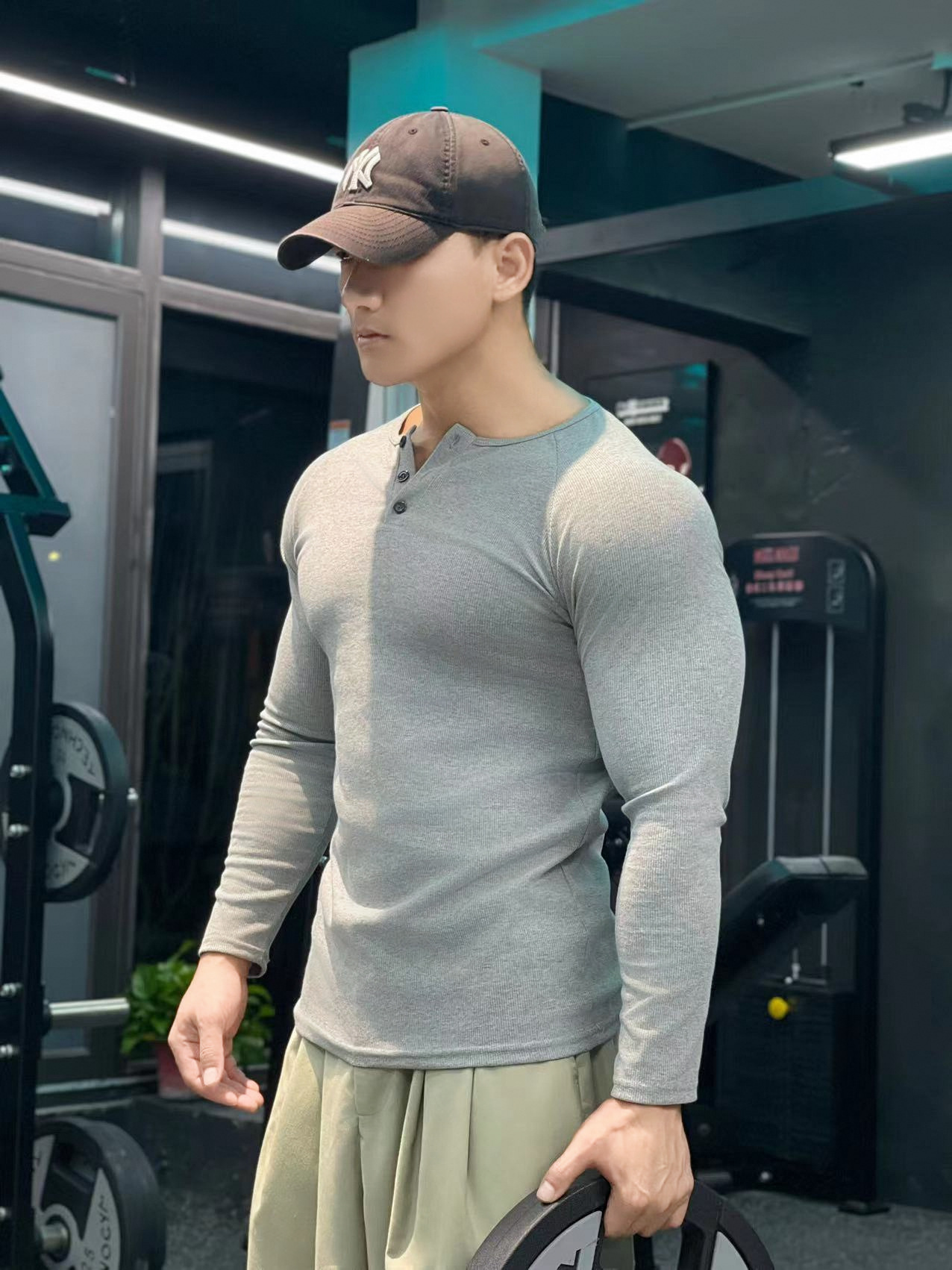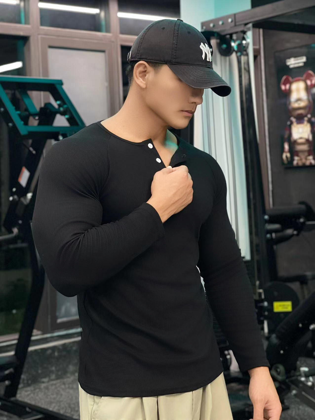 헨리 셔츠 미국 실 면 복고풍 긴 소매 아미 카지 남성용 라글란 휘트니스 빅 헨리 칼라 티셔츠 스포츠스토어 가기