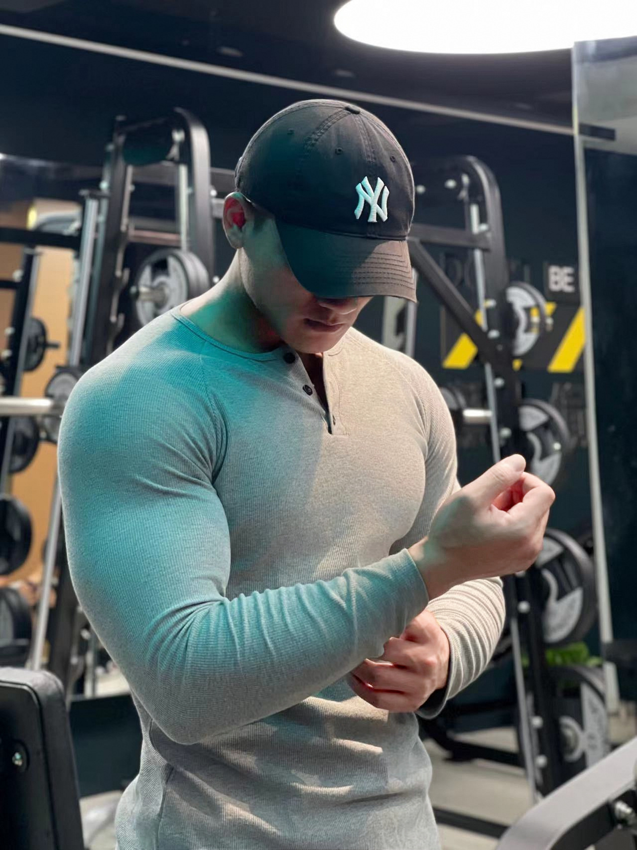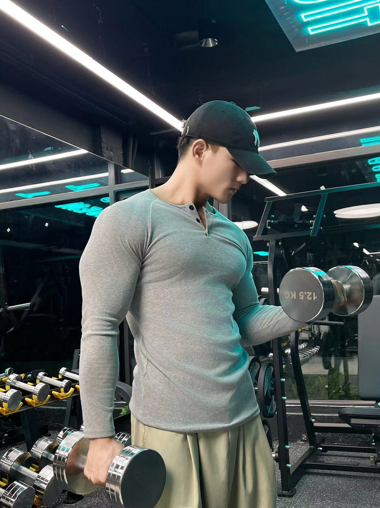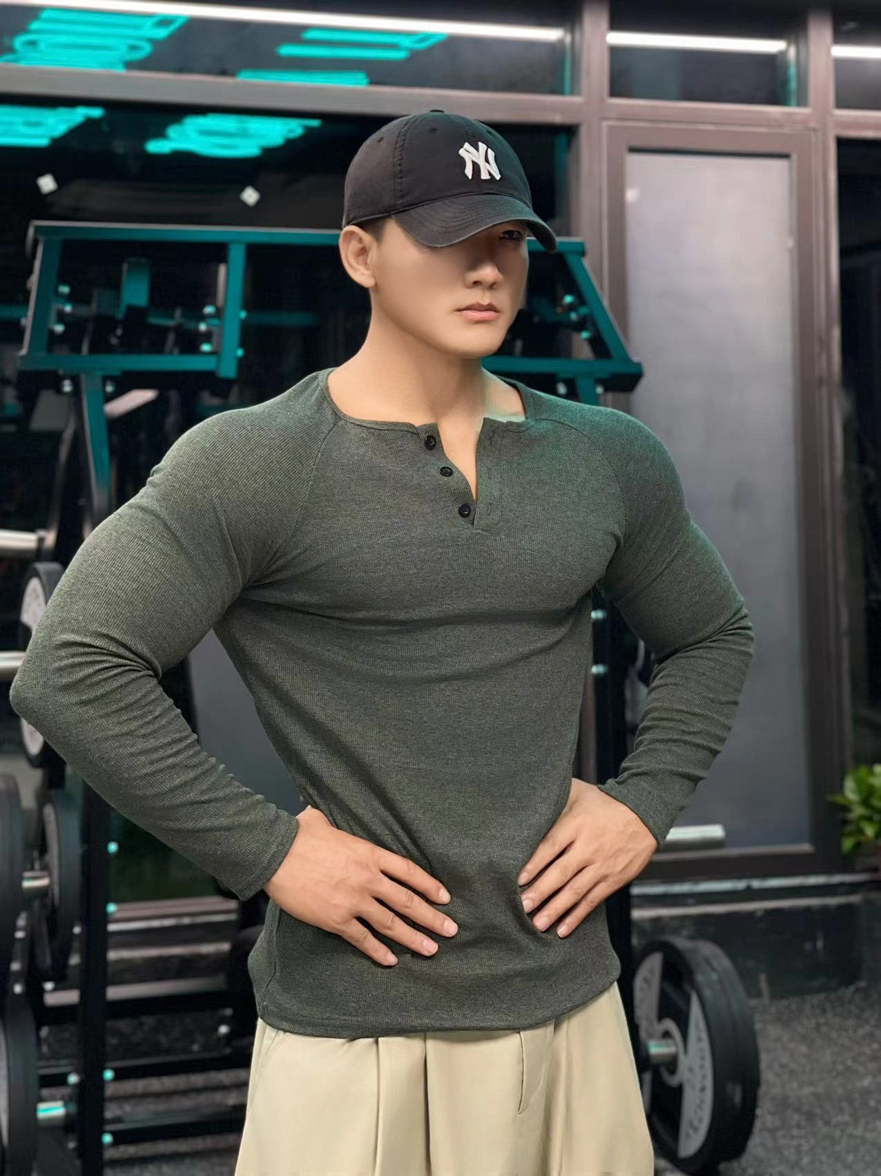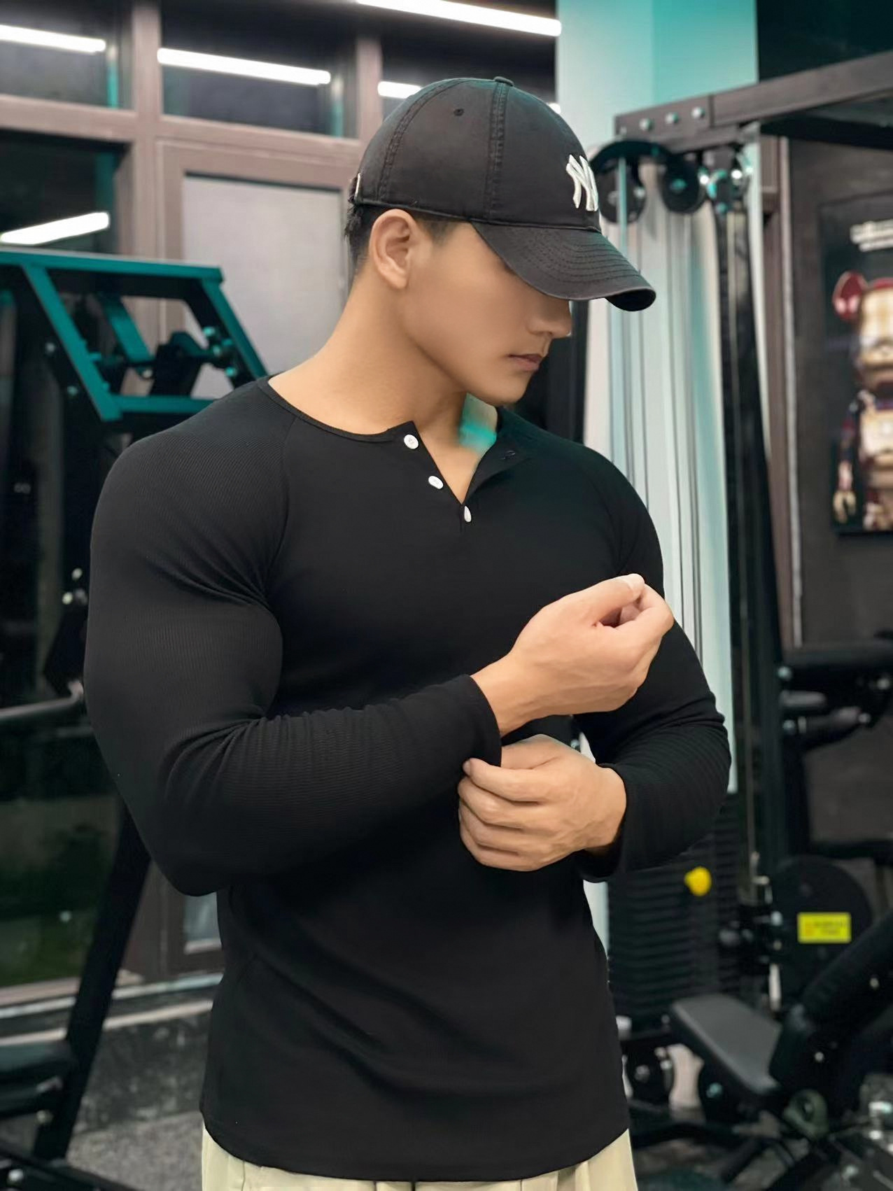 헨리 셔츠 미국 실 면 복고풍 긴 소매 아미 카지 남성용 라글란 휘트니스 빅 헨리 칼라 티셔츠 스포츠스토어 가기