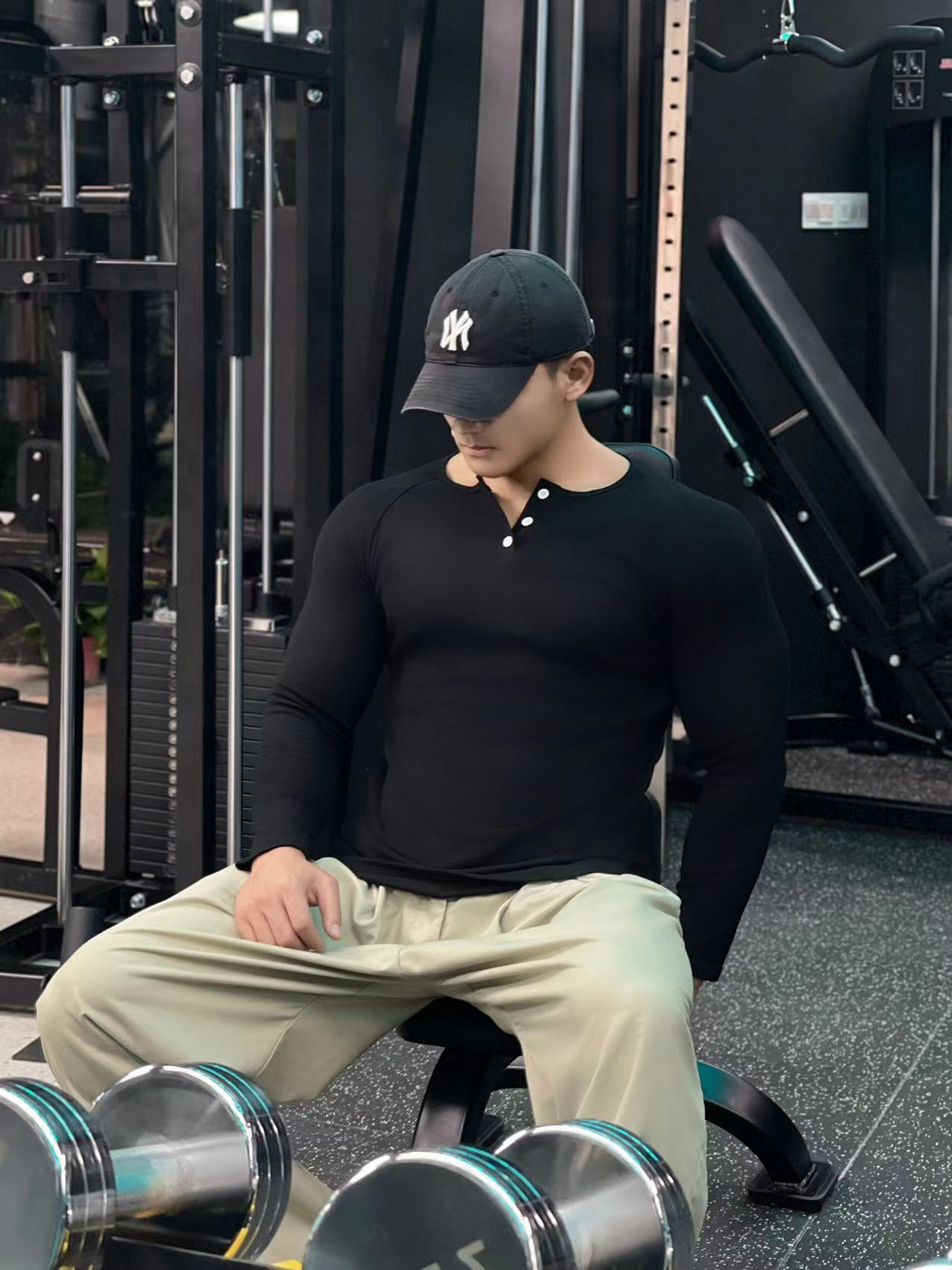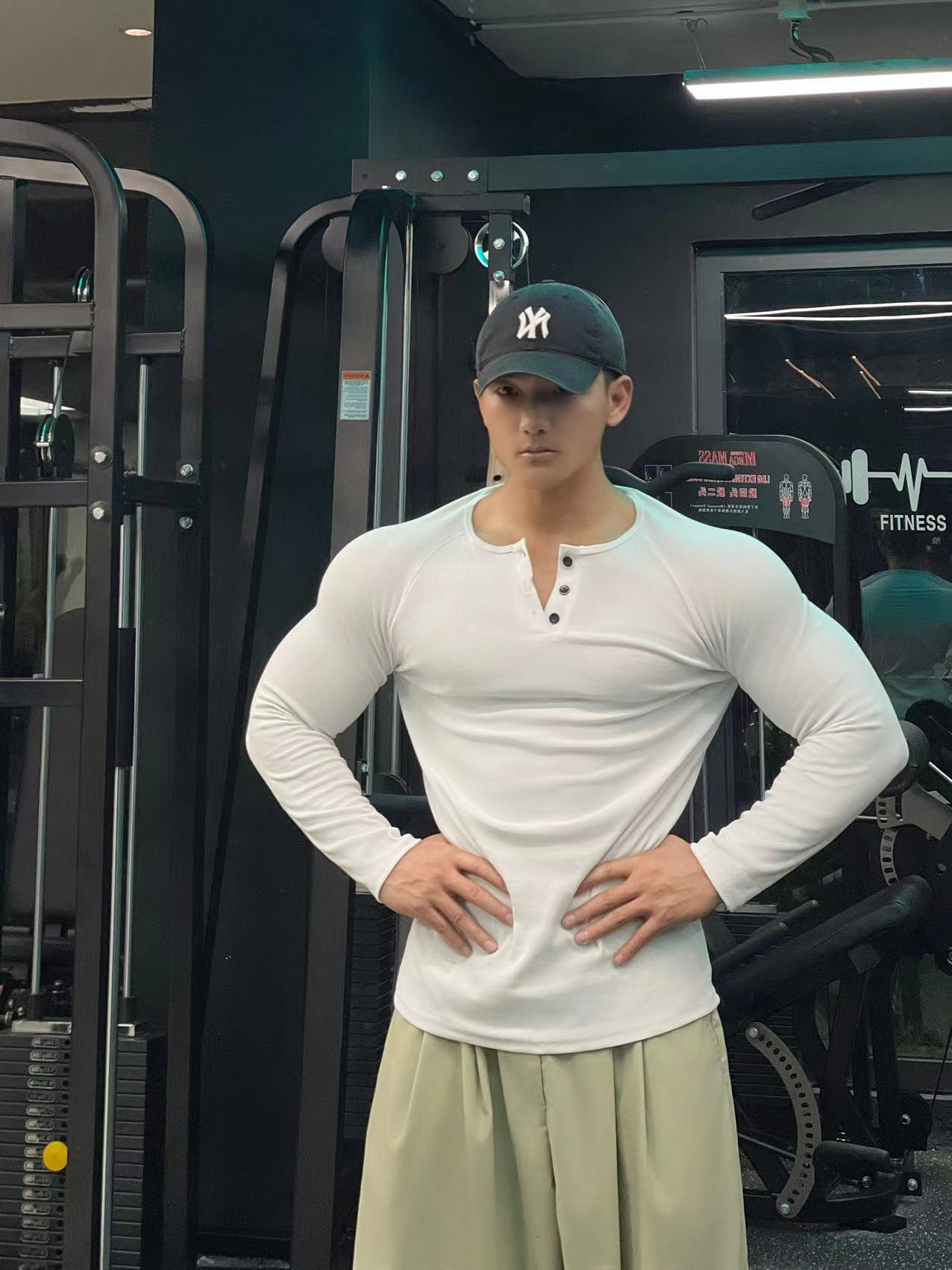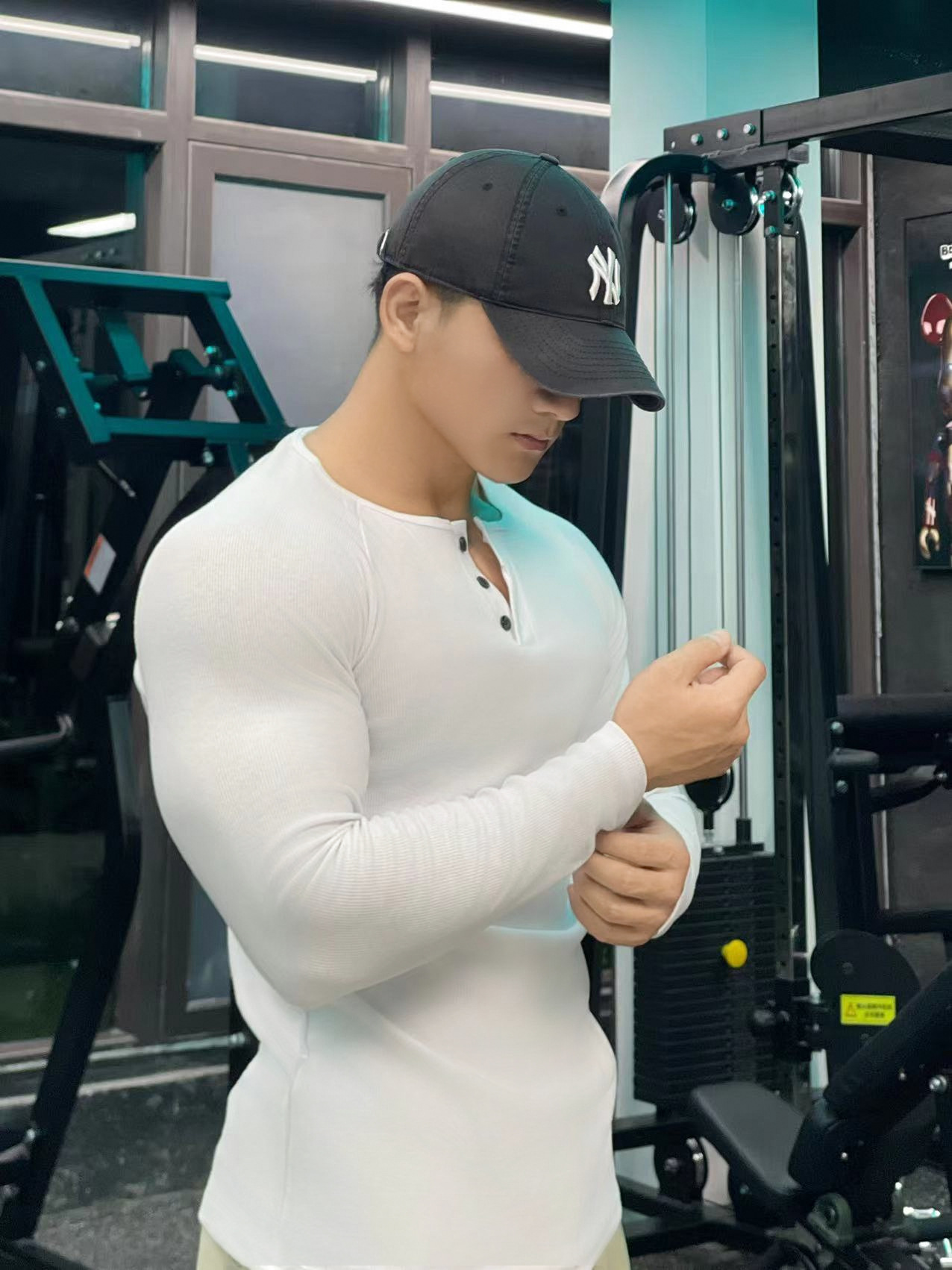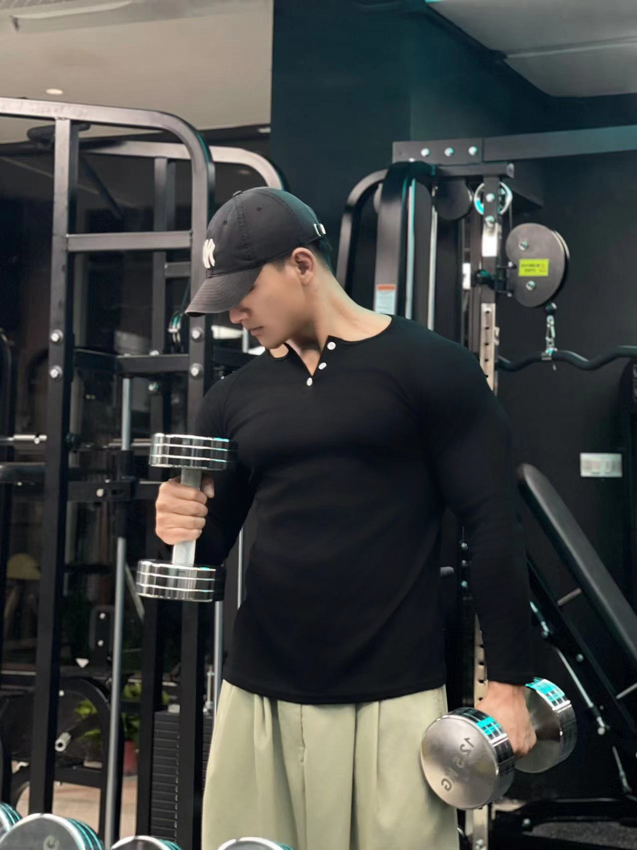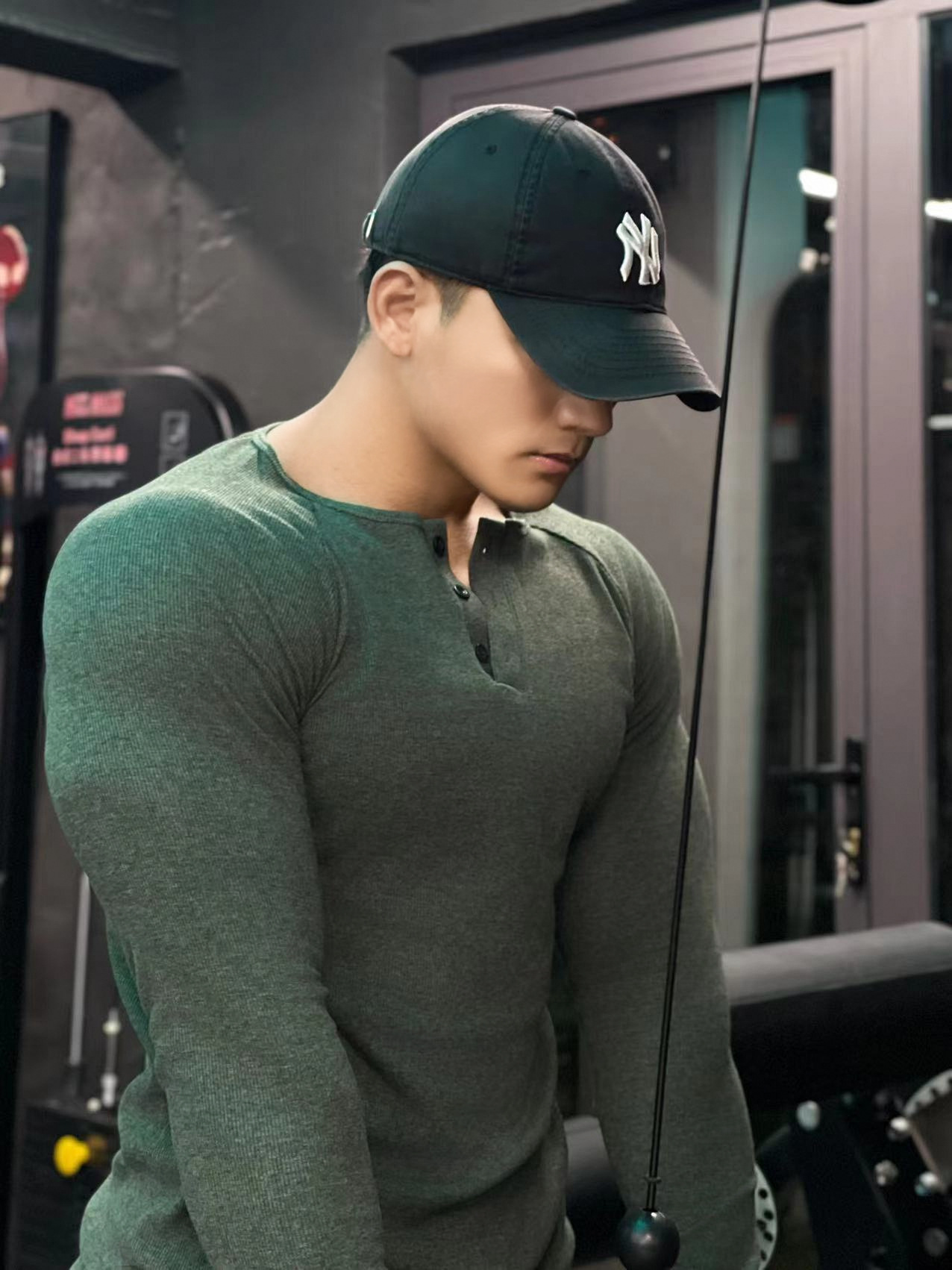 헨리 셔츠 미국 실 면 복고풍 긴 소매 아미 카지 남성용 라글란 휘트니스 빅 헨리 칼라 티셔츠 스포츠스토어 가기