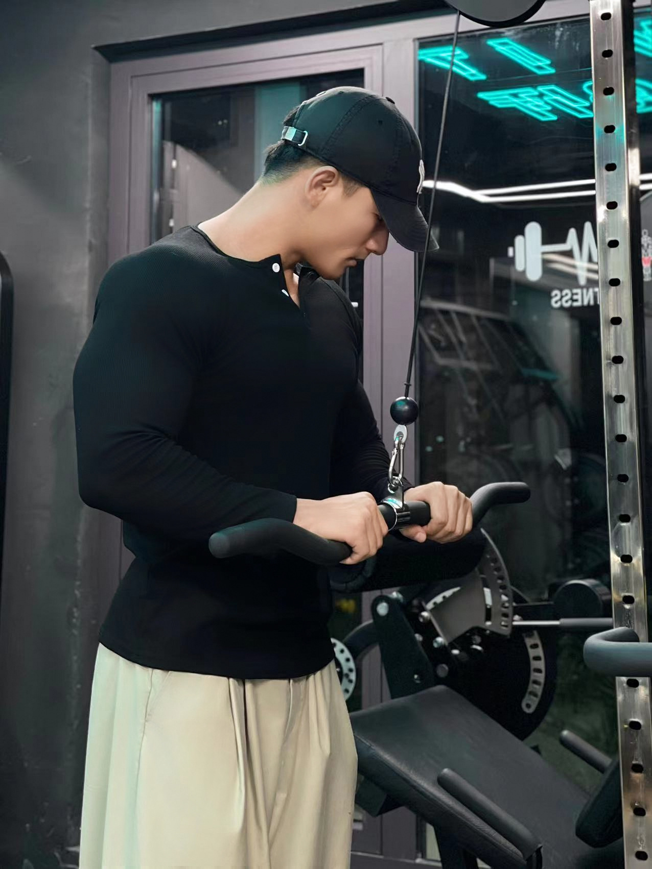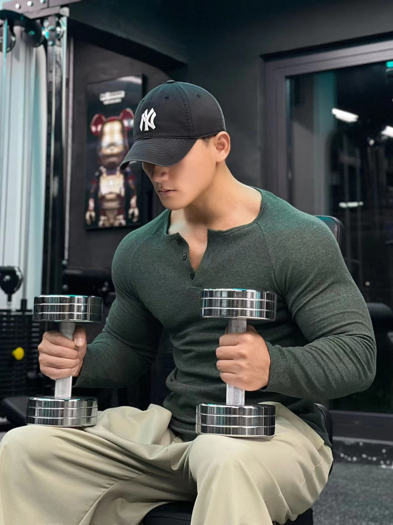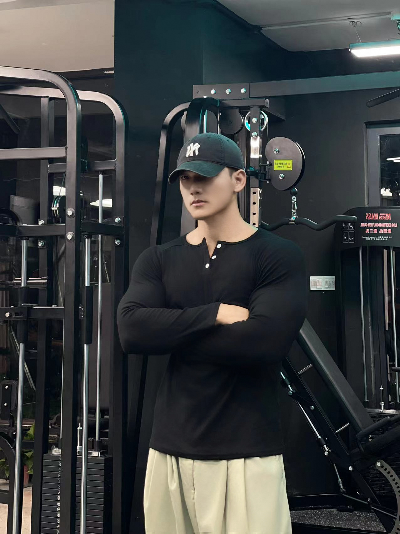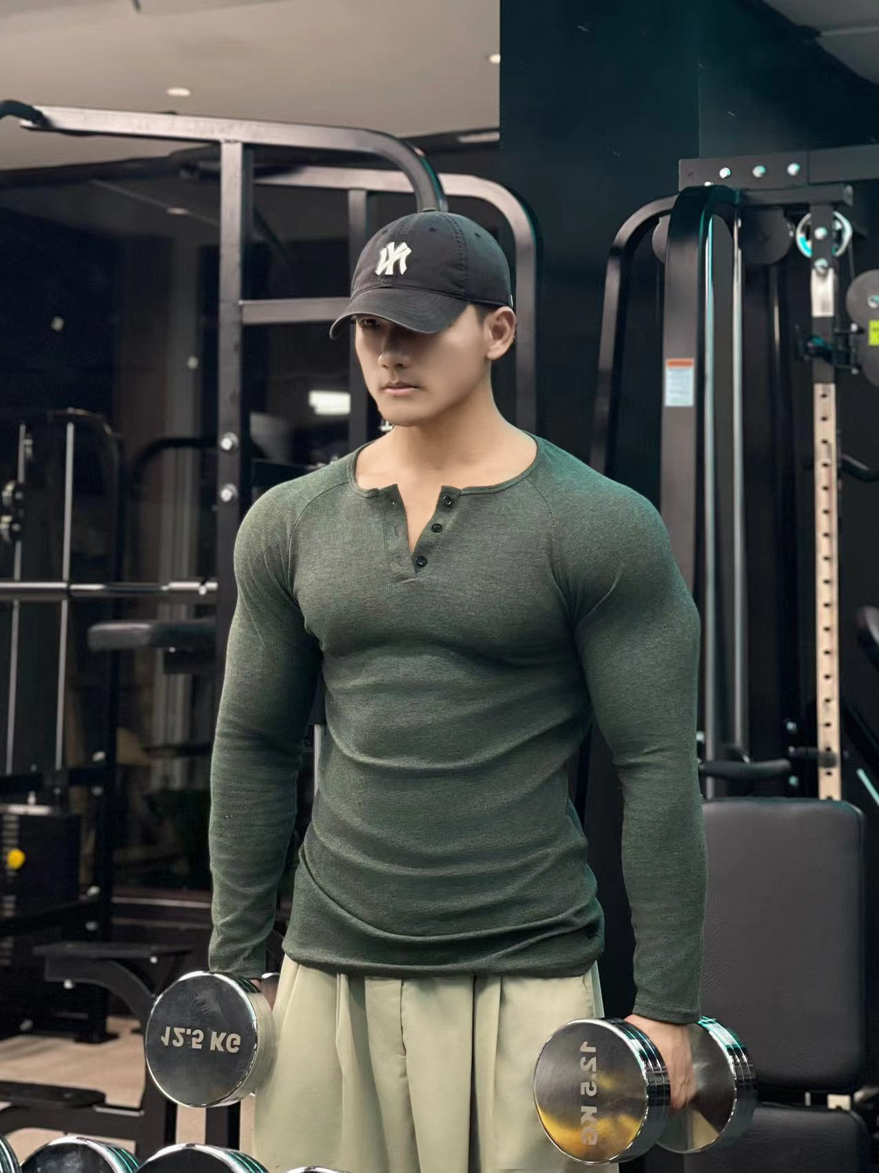 헨리 셔츠 미국 실 면 복고풍 긴 소매 아미 카지 남성용 라글란 휘트니스 빅 헨리 칼라 티셔츠 스포츠스토어 가기