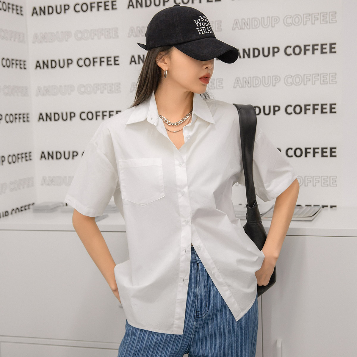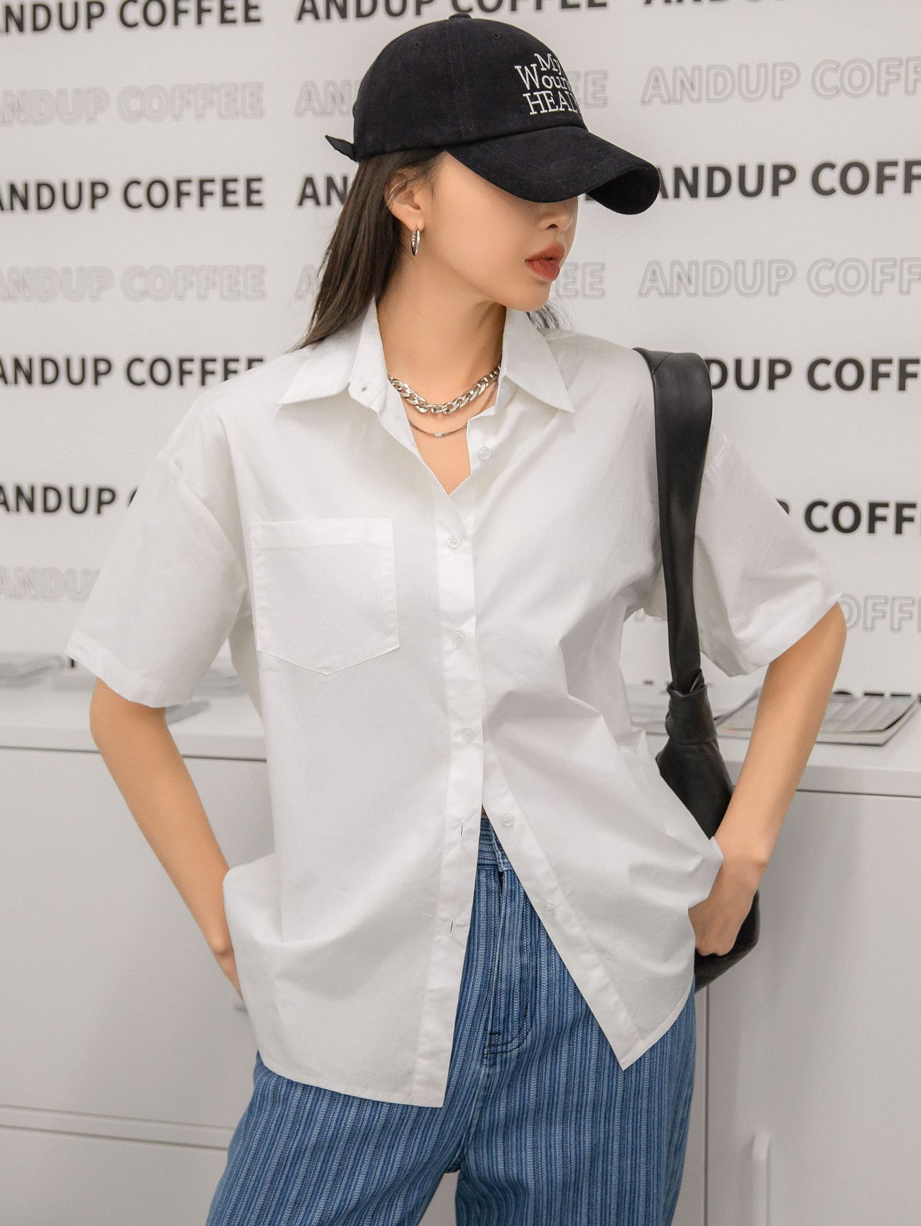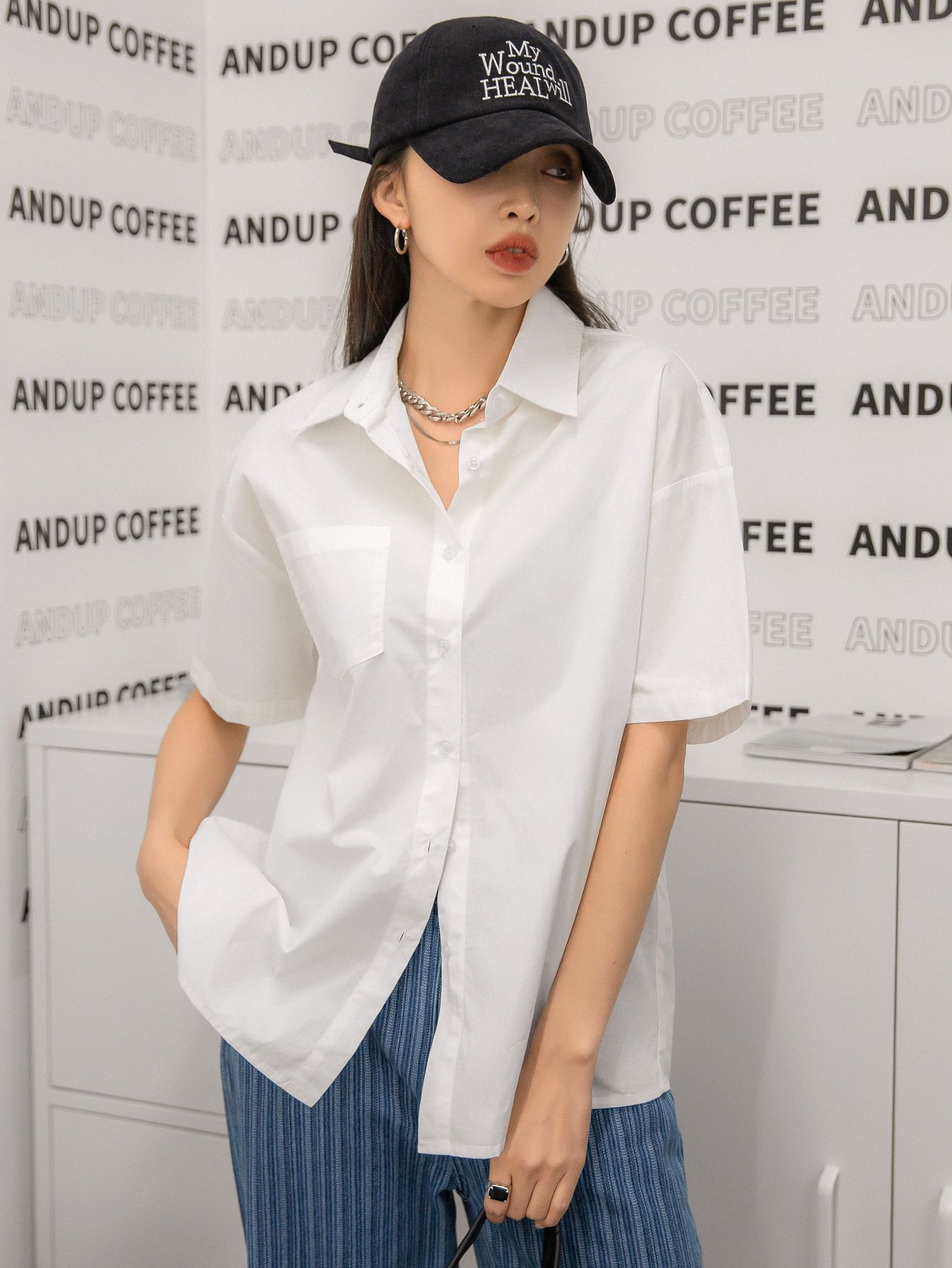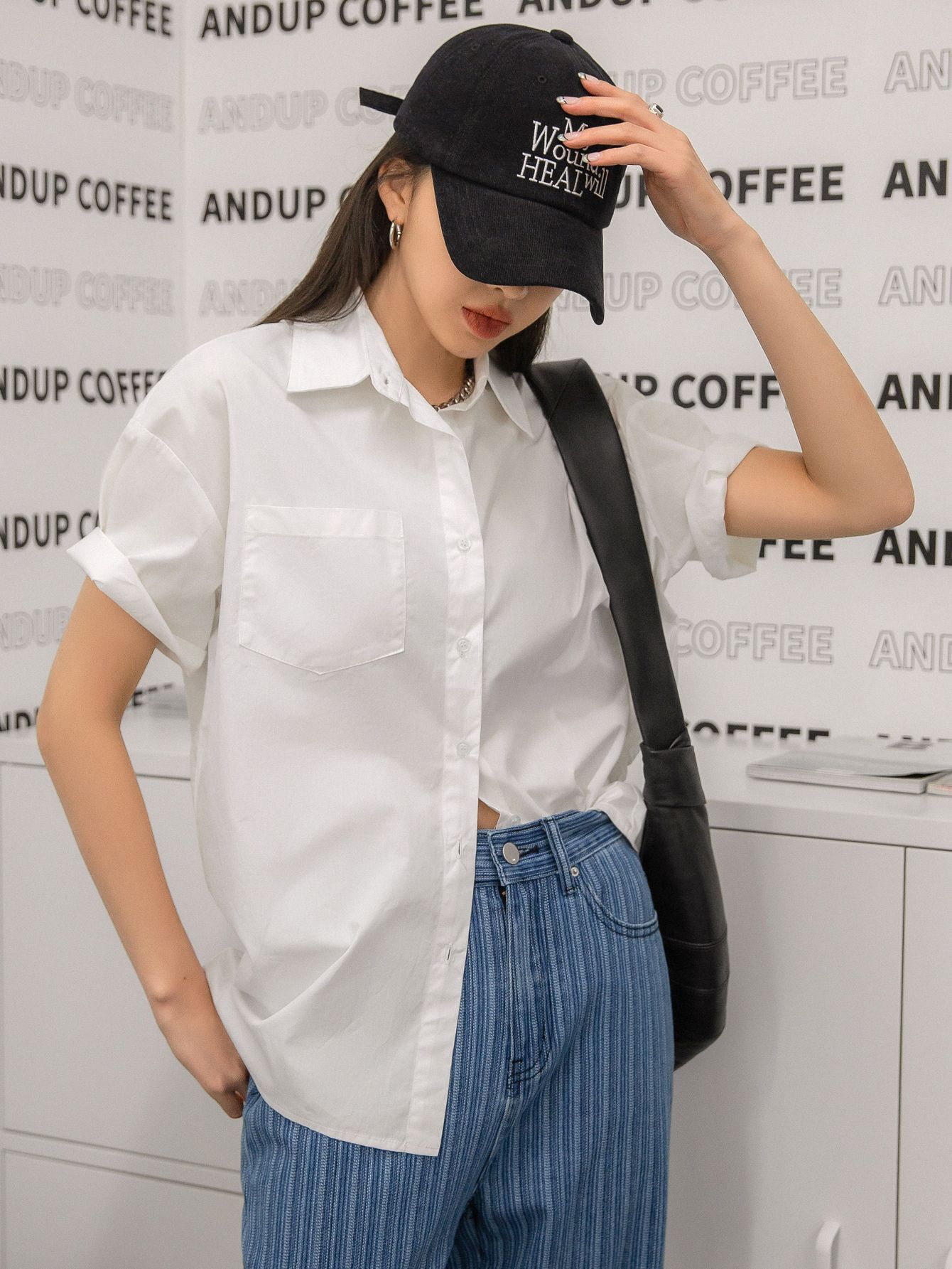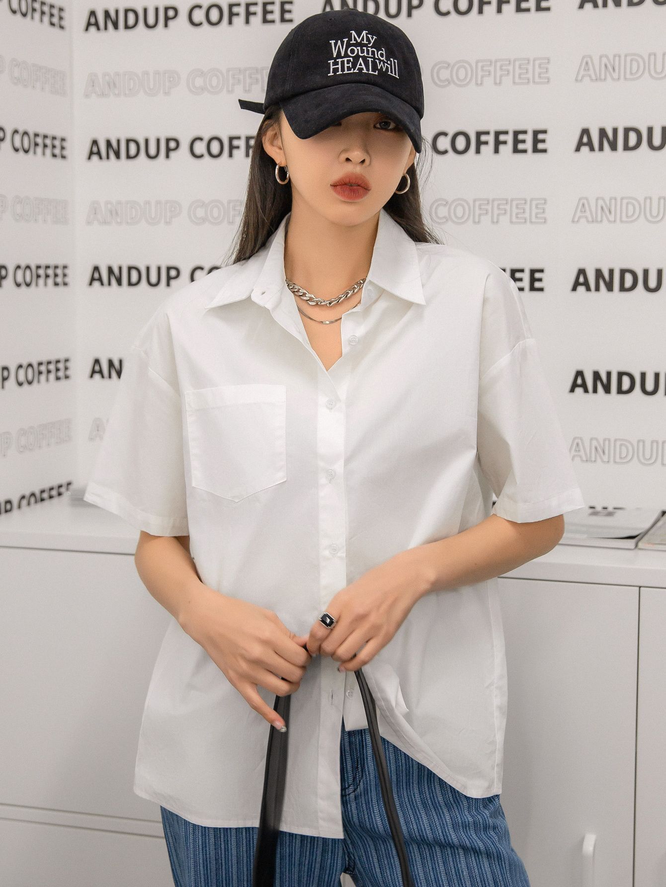 여름 캐주얼 올매치 퓨어 코튼 일본식 여름 화이트 셔츠 Unisex 느슨한 비즈니스 탑스토어 가기