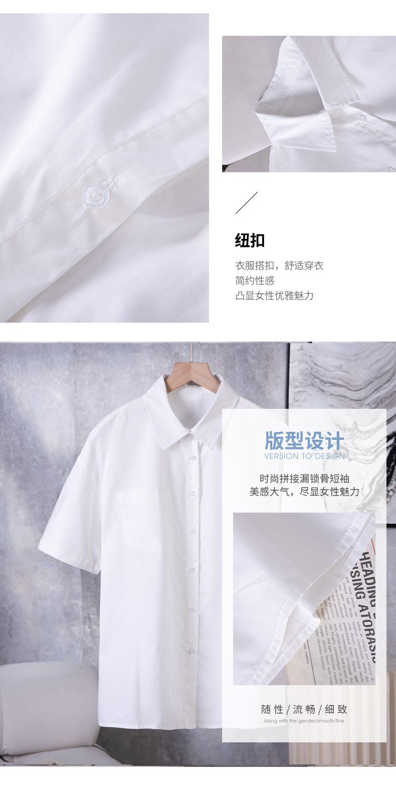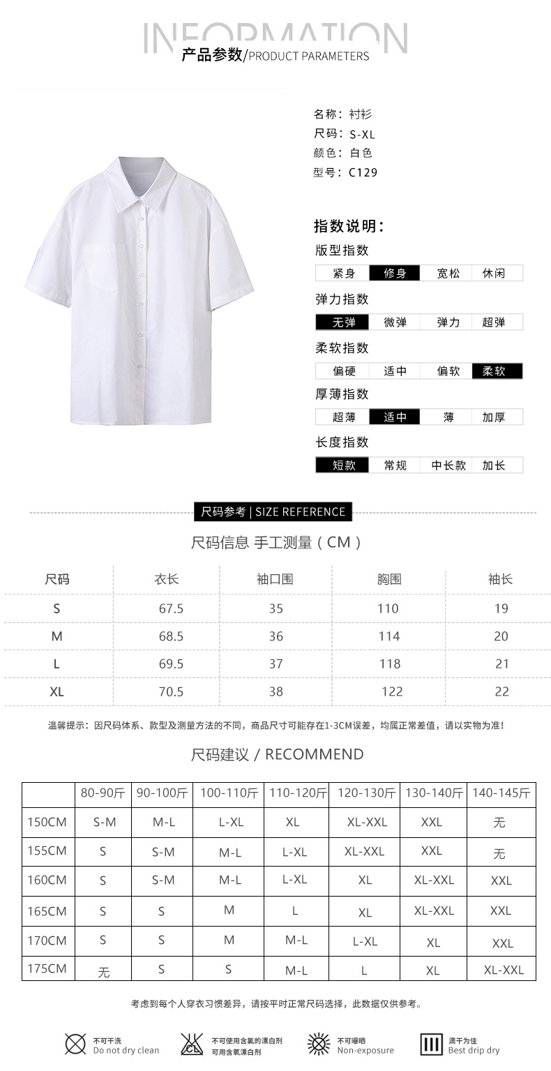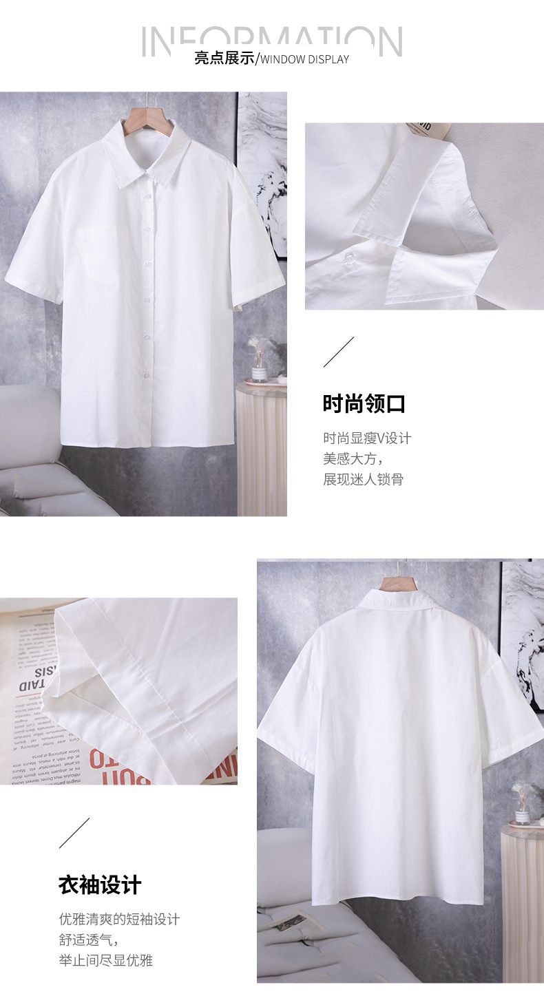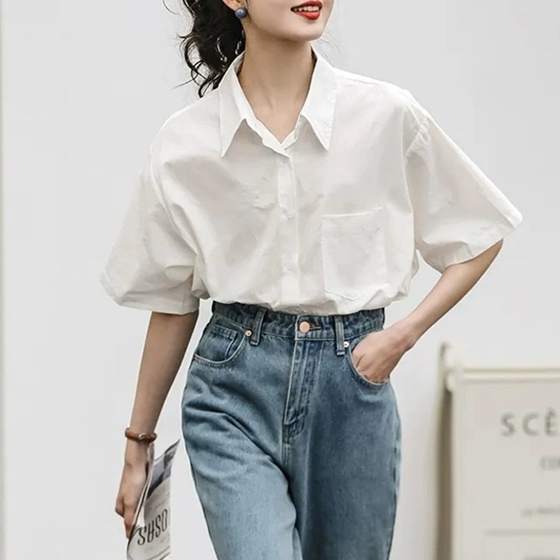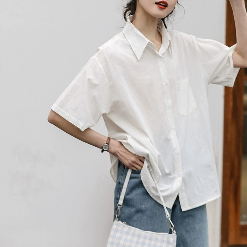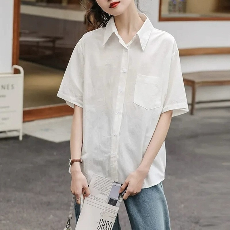 여름 캐주얼 올매치 퓨어 코튼 일본식 여름 화이트 셔츠 Unisex 느슨한 비즈니스 탑