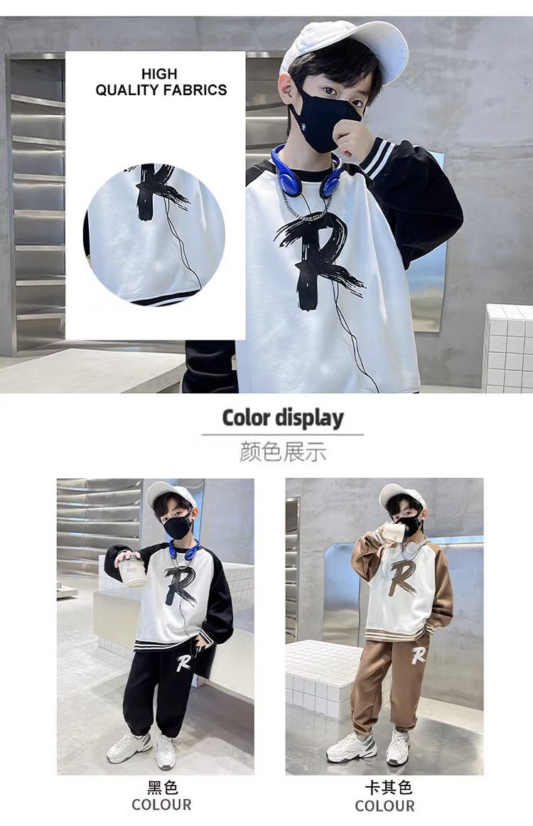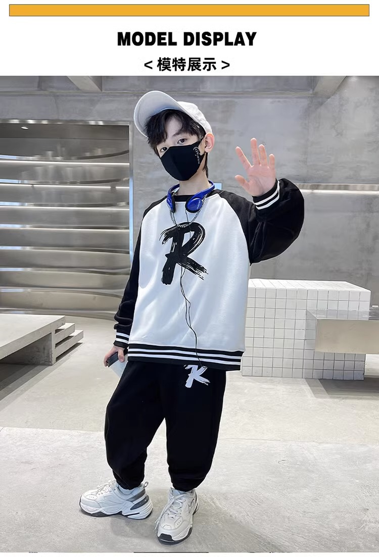 가을/겨울 2023 아동 패션 트렌디 레터 루즈한 캐주얼 세트 중소형 남아 스웨터 팬츠 투피스 세트스토어 가기
