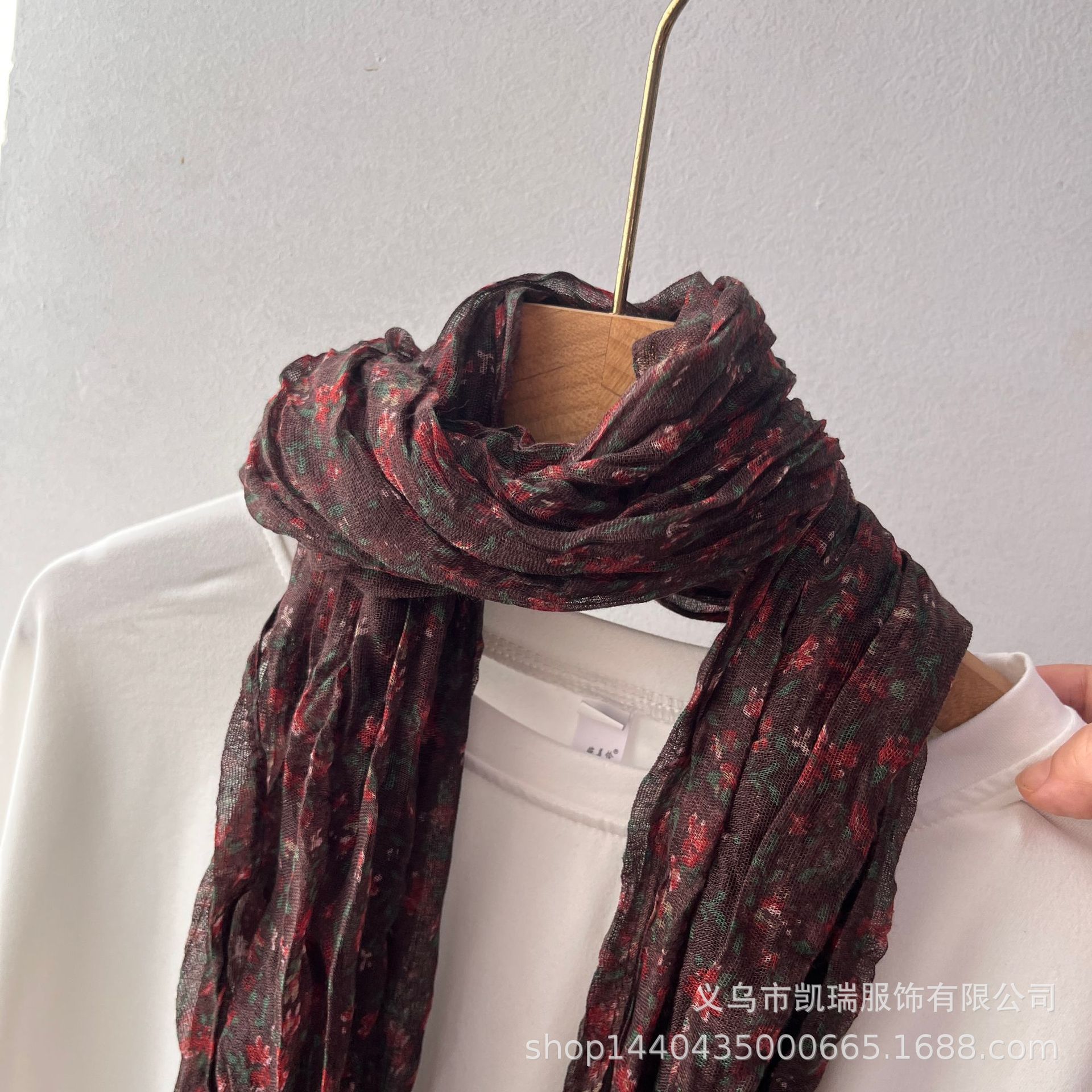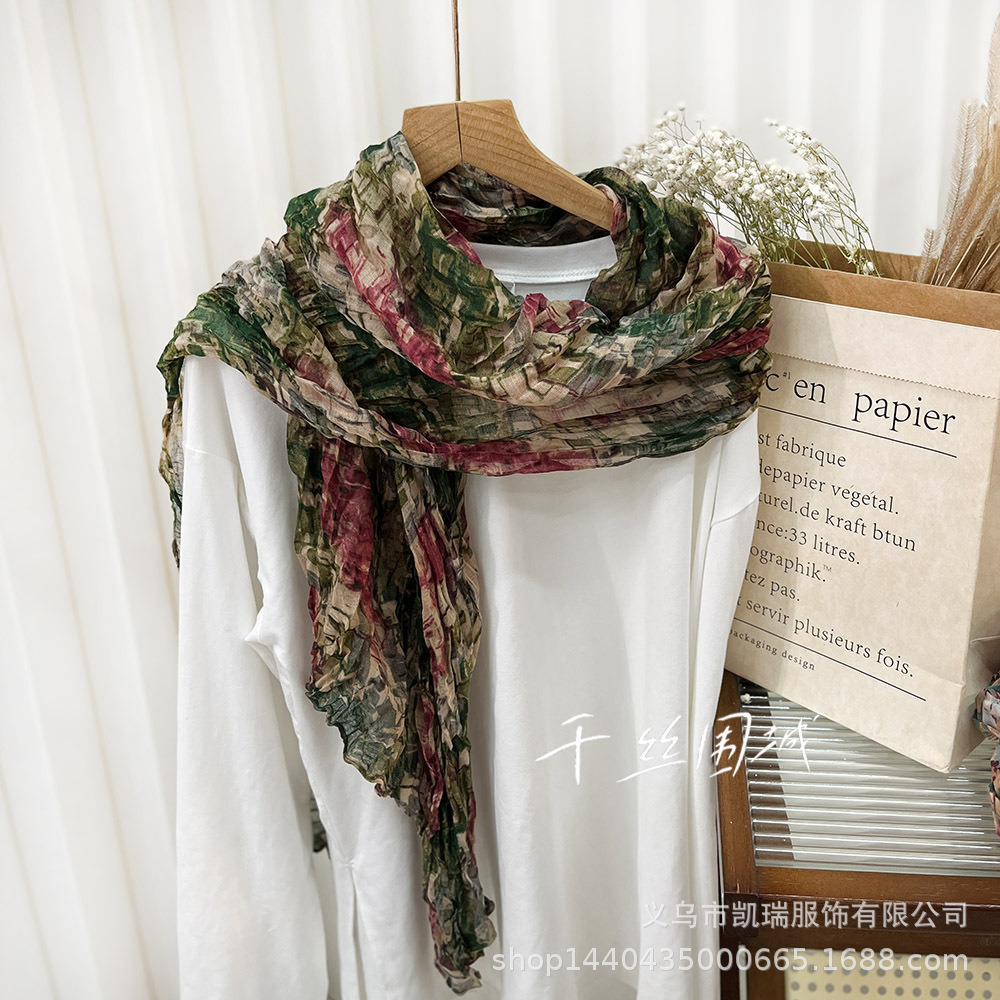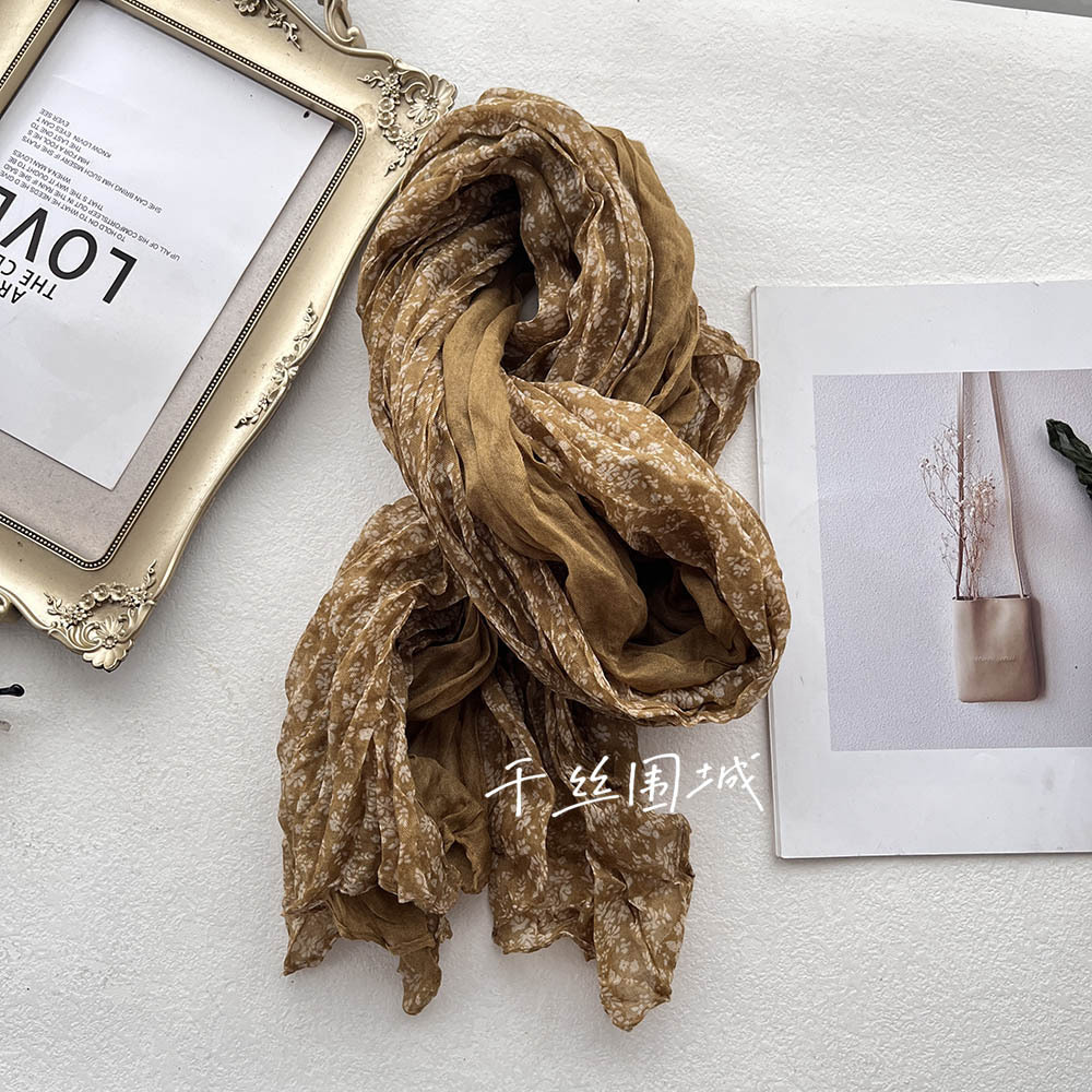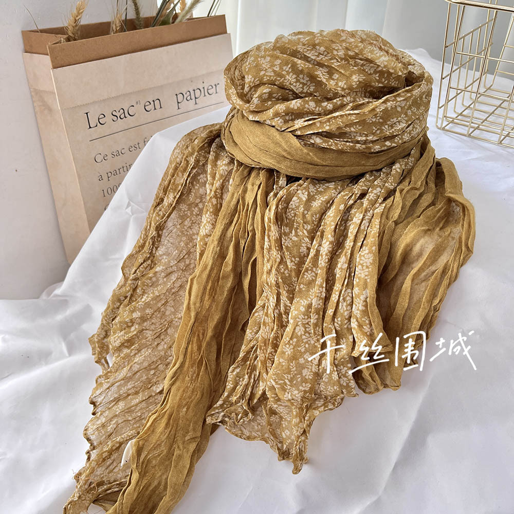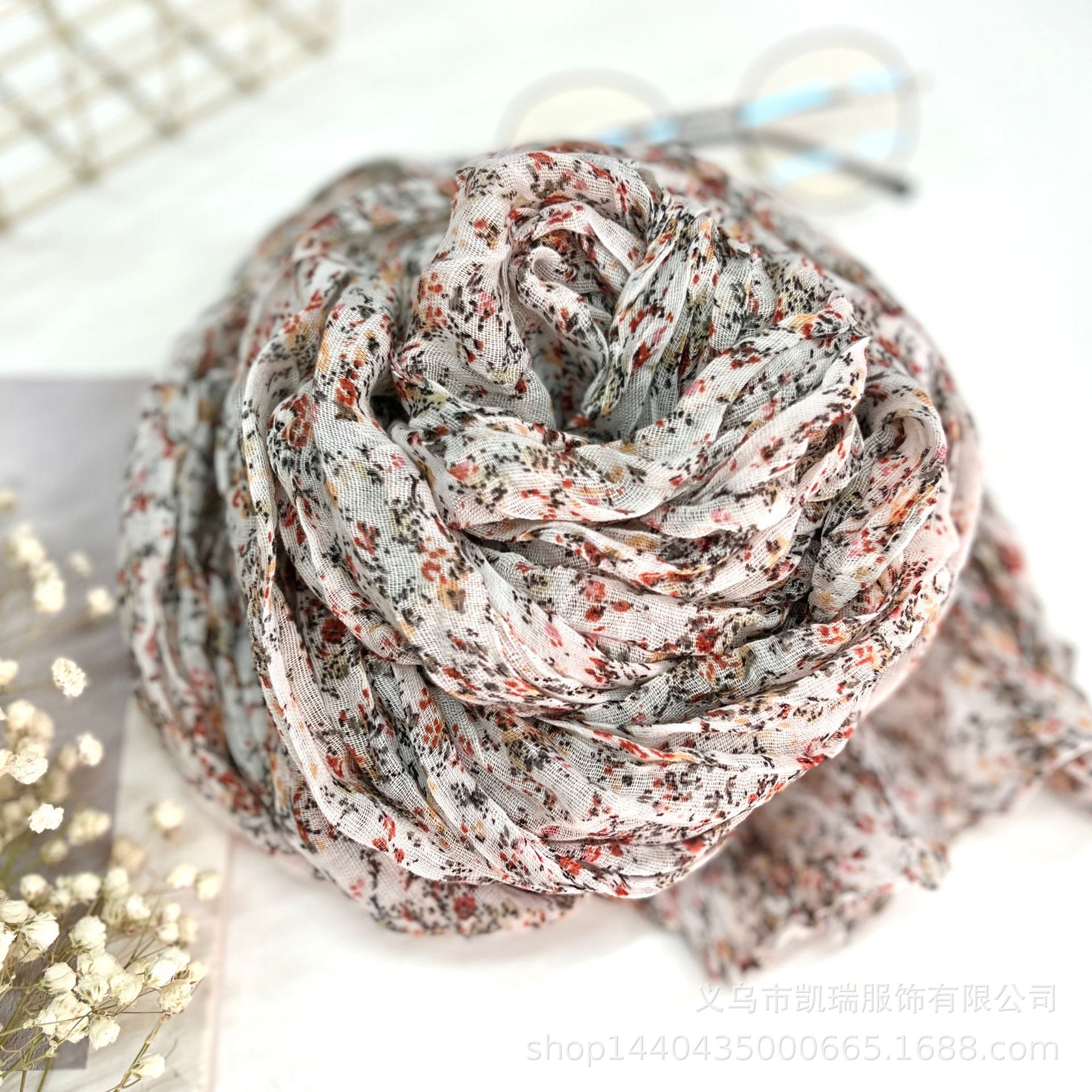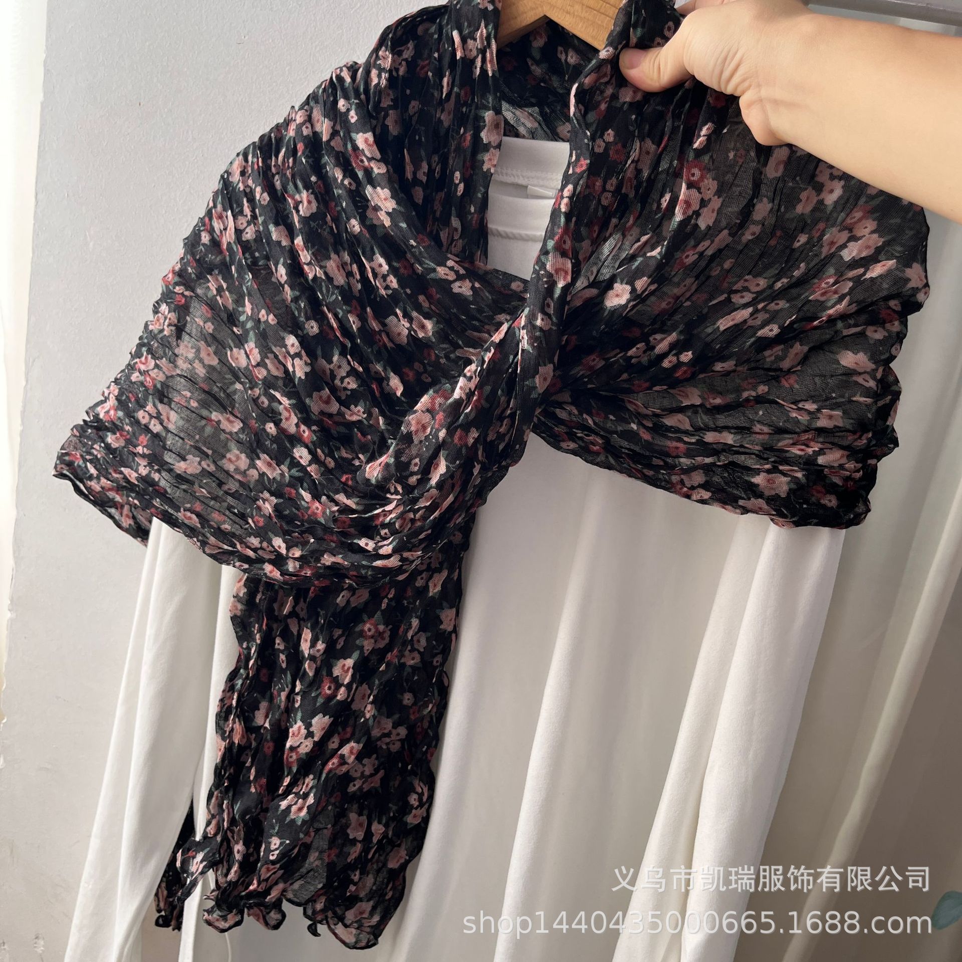 가을과 겨울 2023 새로운 빈티지 예술적 면화와 린넨 주름 얇은 모든 일치 숄 작은 꽃 스카프 일본식 스카프스토어 가기