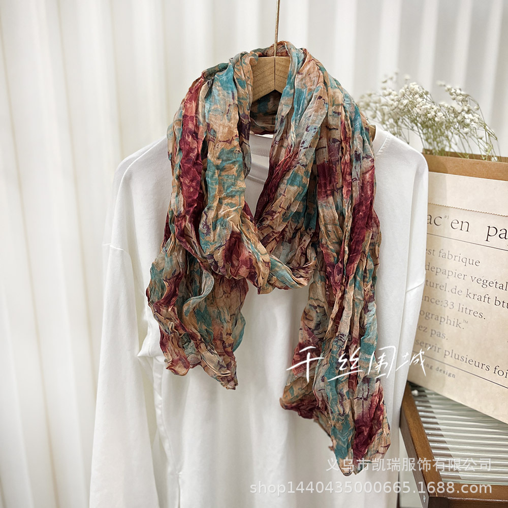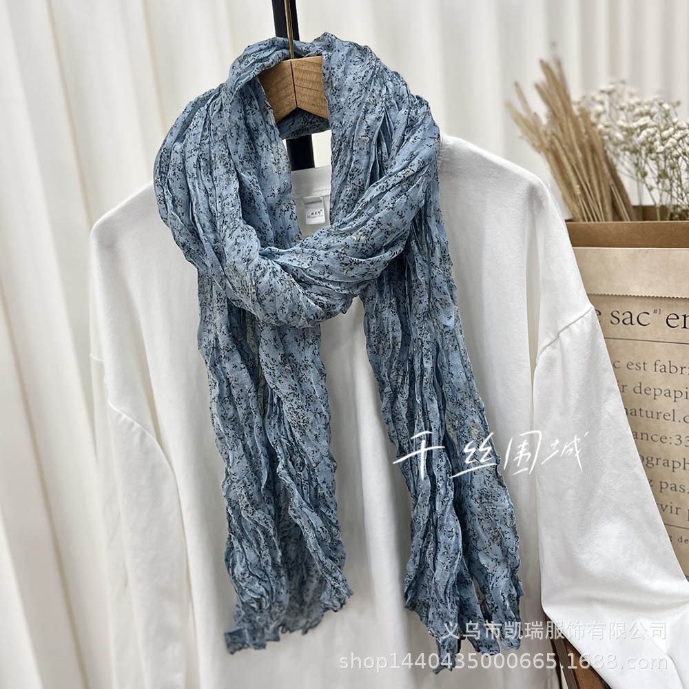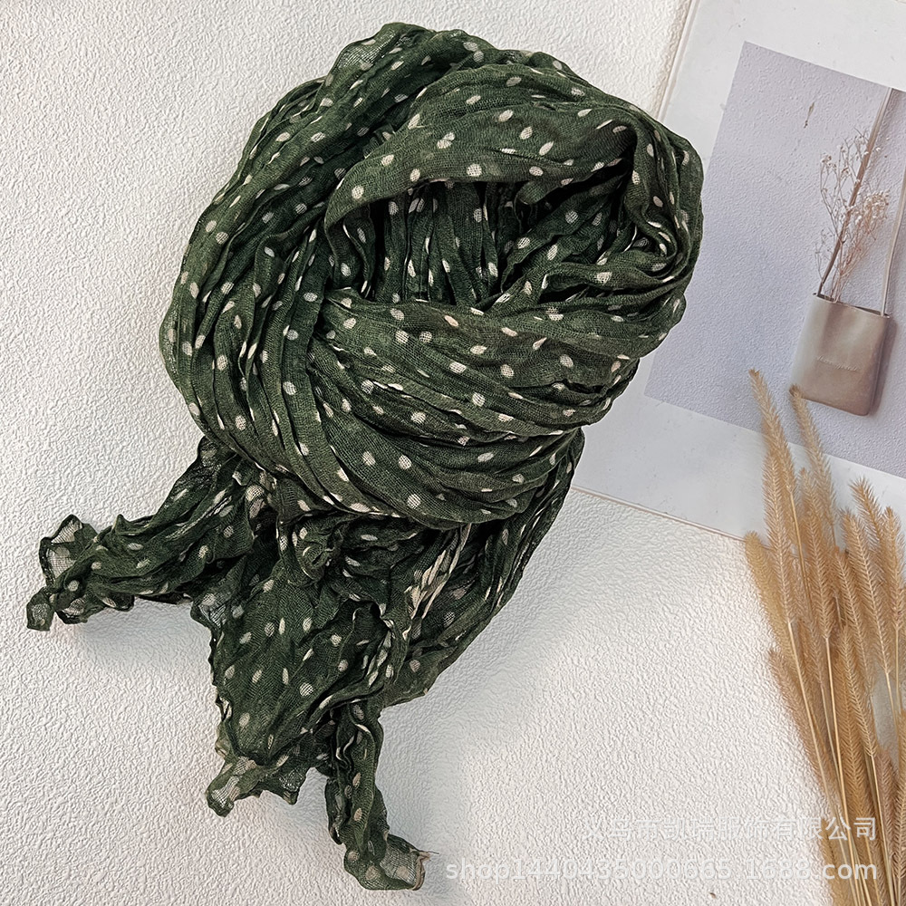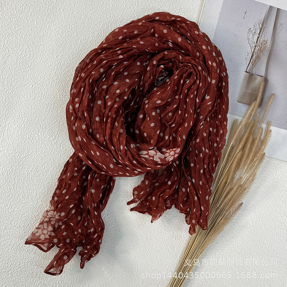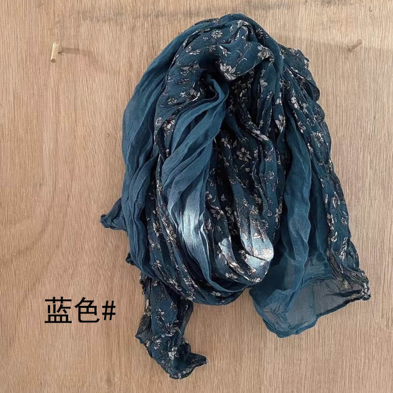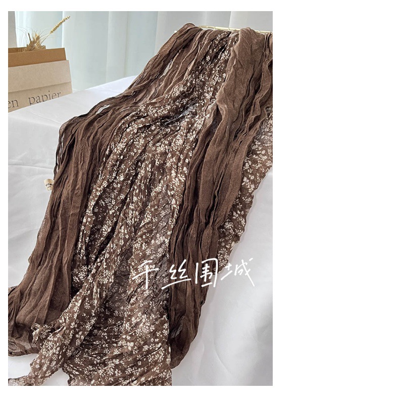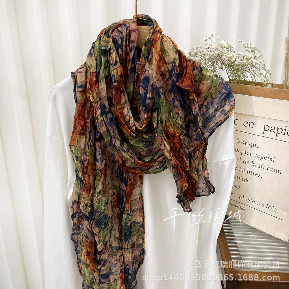 가을과 겨울 2023 새로운 빈티지 예술적 면화와 린넨 주름 얇은 모든 일치 숄 작은 꽃 스카프 일본식 스카프스토어 가기