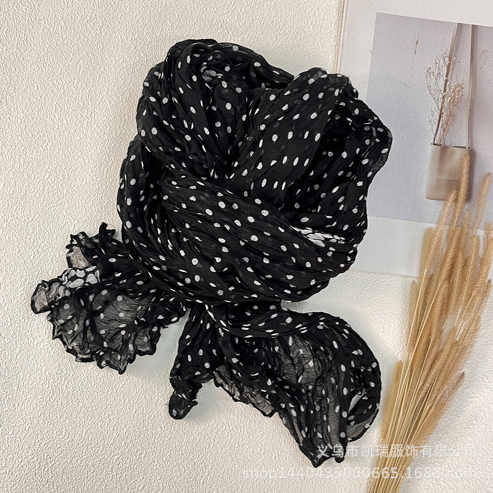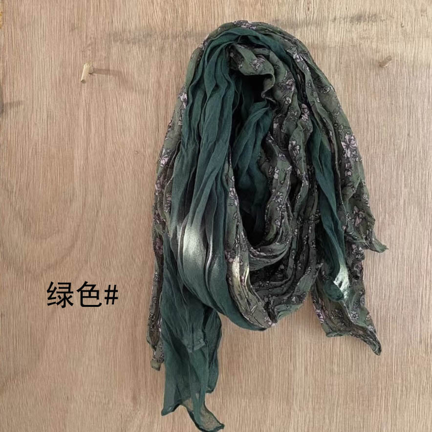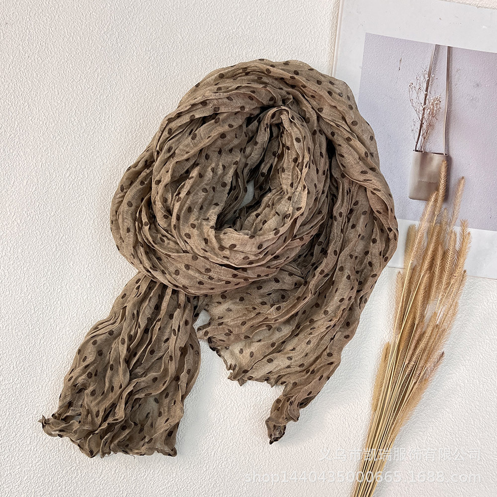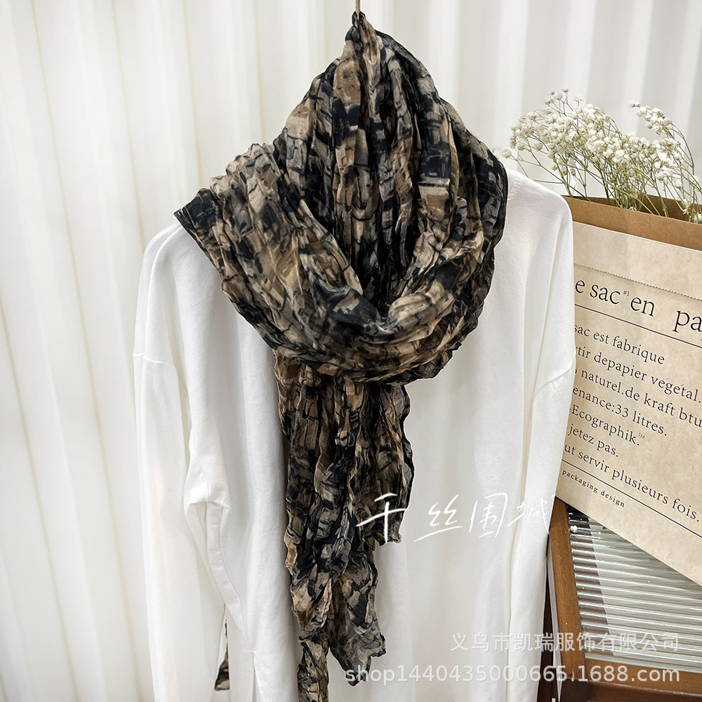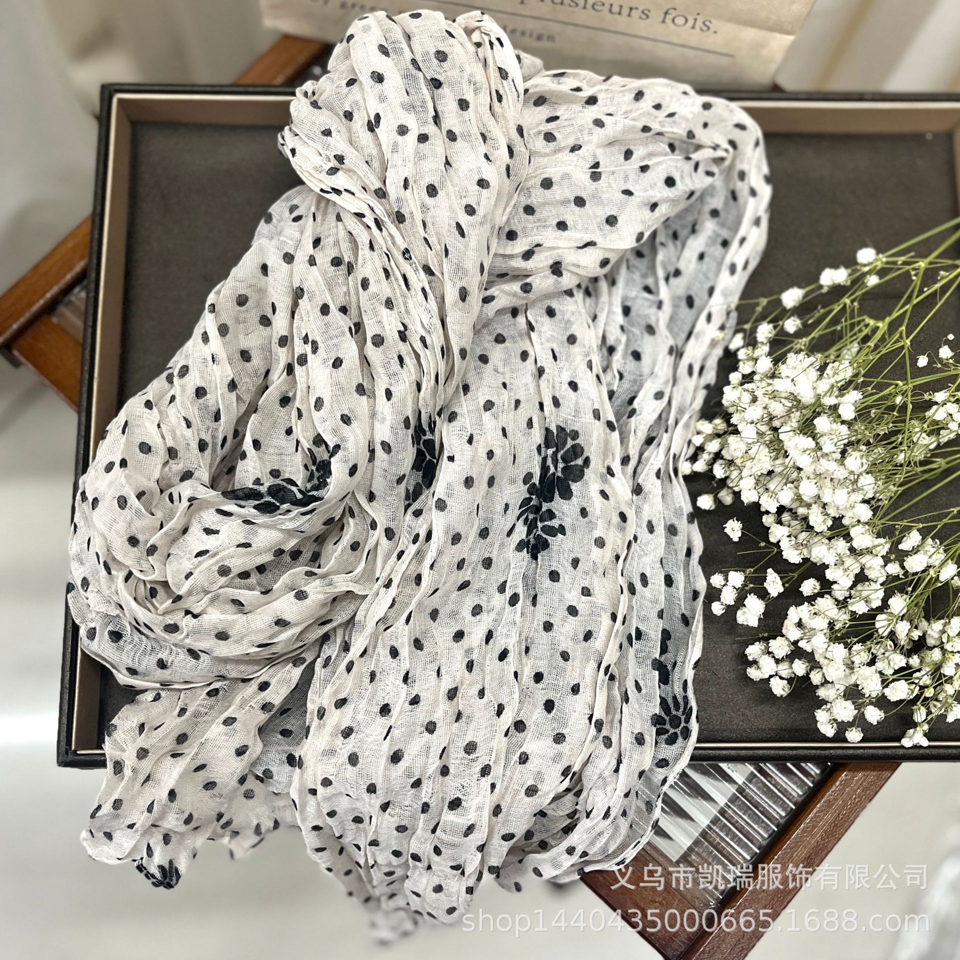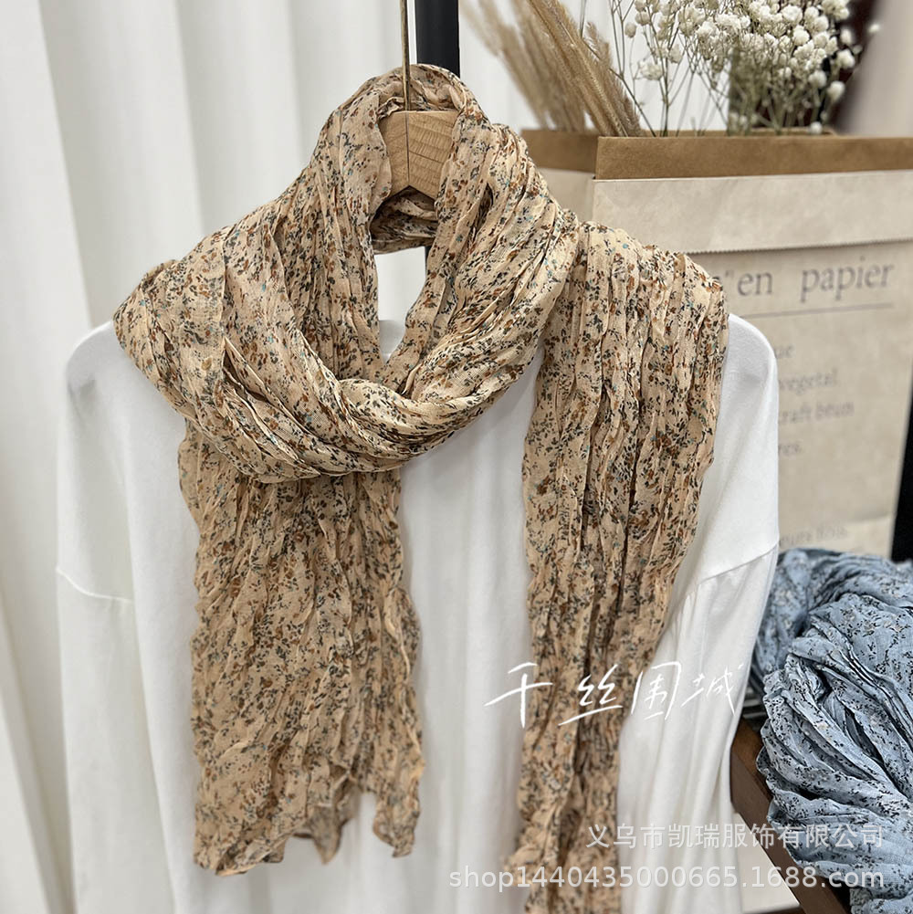 가을과 겨울 2023 새로운 빈티지 예술적 면화와 린넨 주름 얇은 모든 일치 숄 작은 꽃 스카프 일본식 스카프스토어 가기