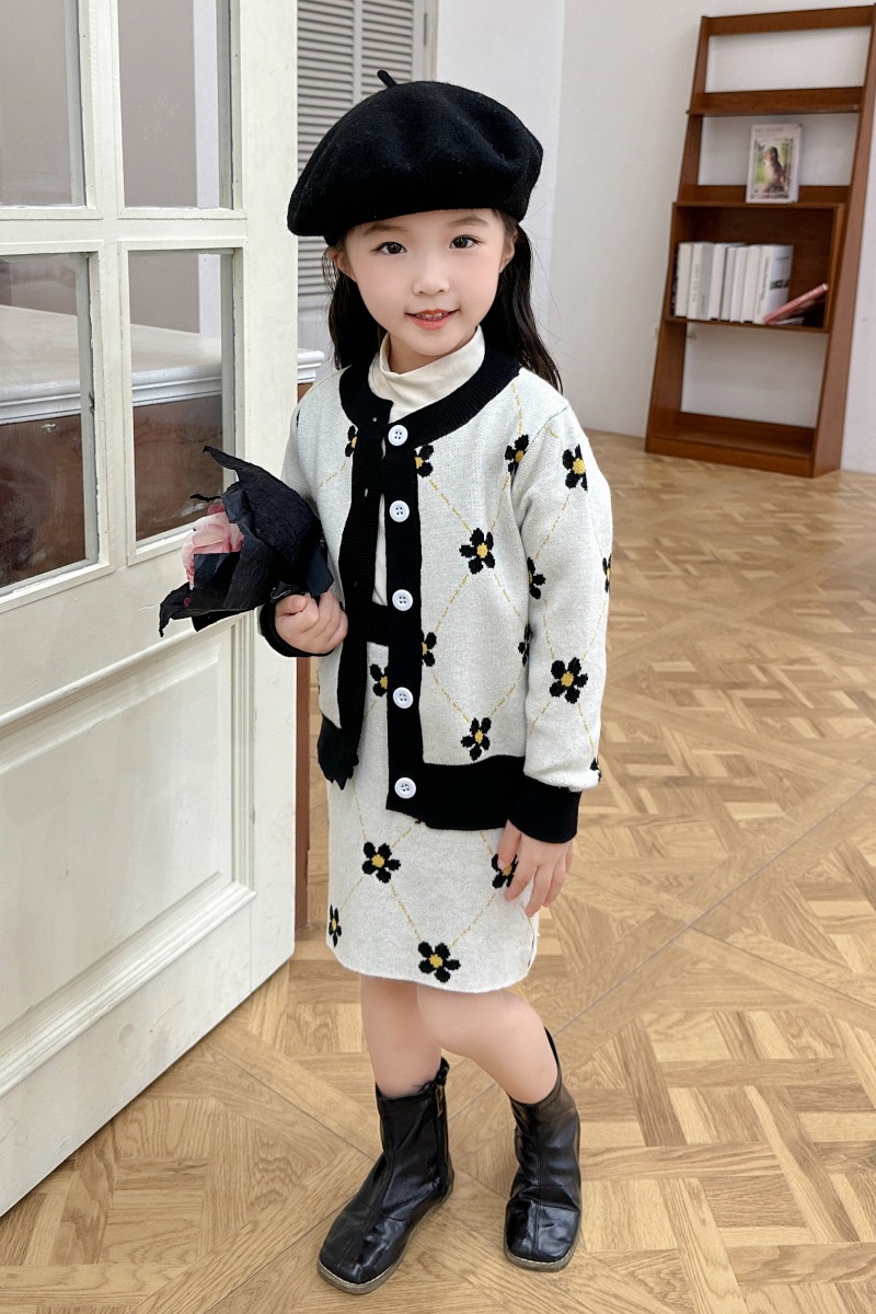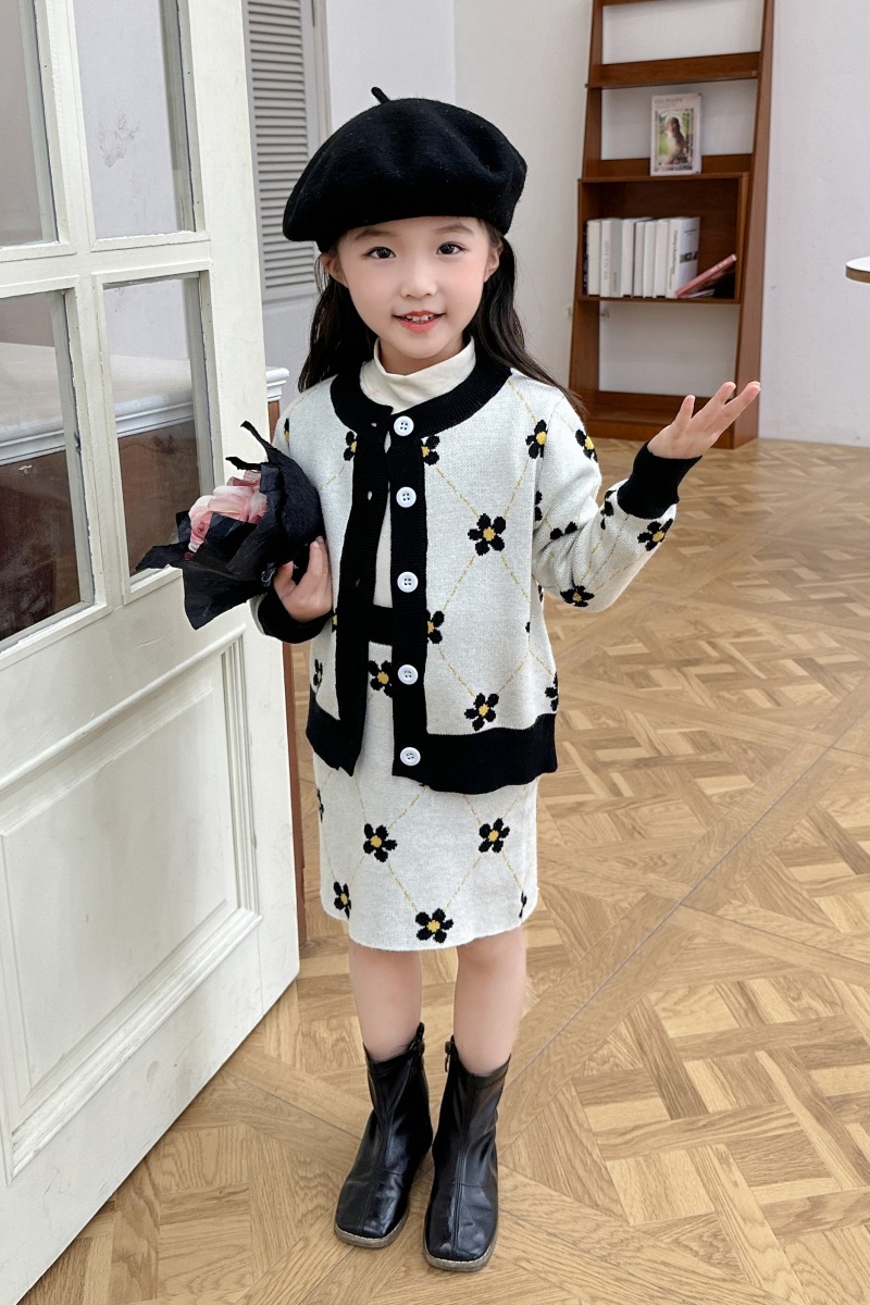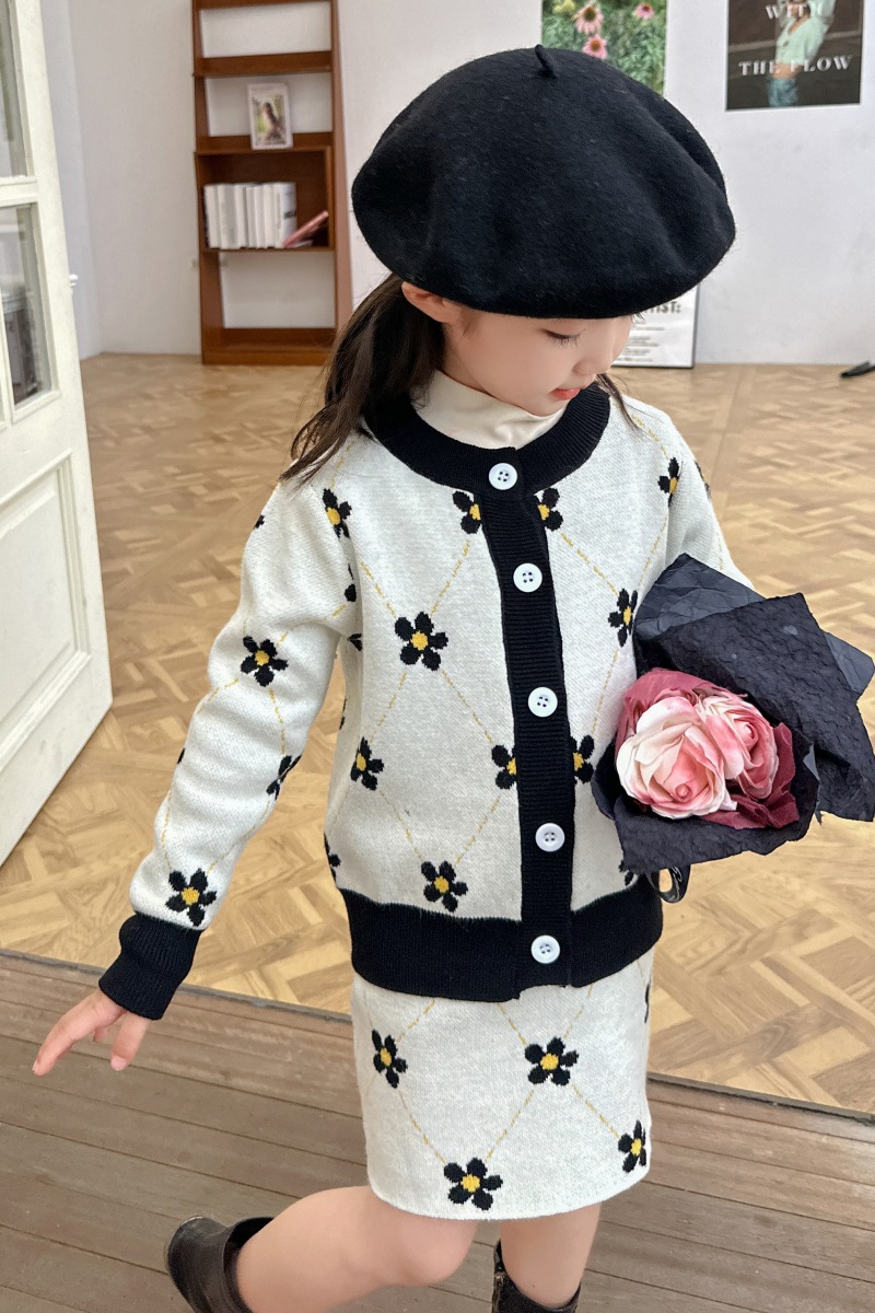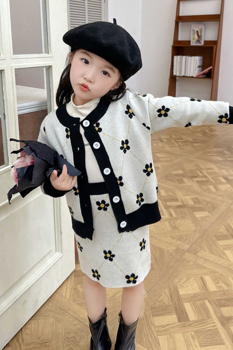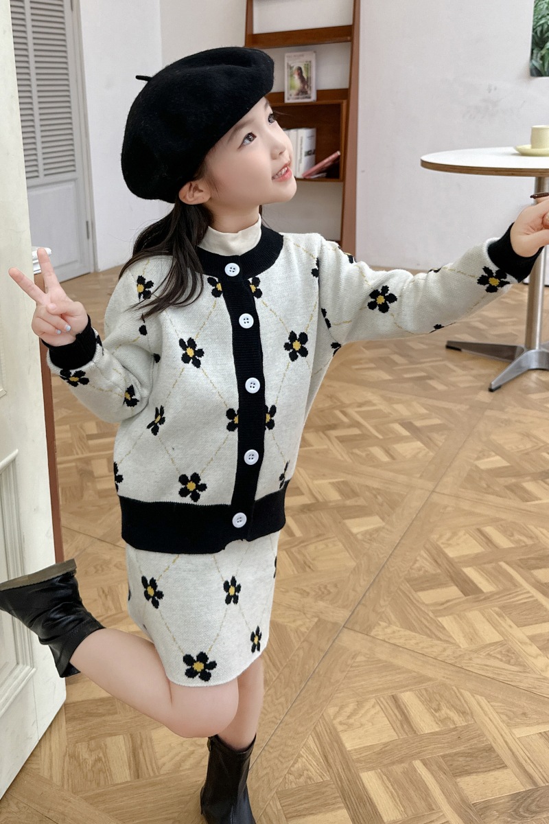 어린이 여아 봄 가을 2025 세트 니트 스웨터 한국 스타일 스포츠 가디건 코트 스커트 트렌디 아동복 유아용
