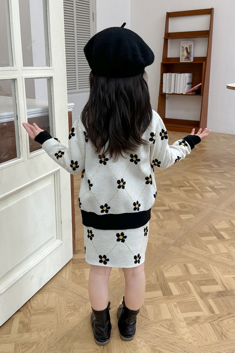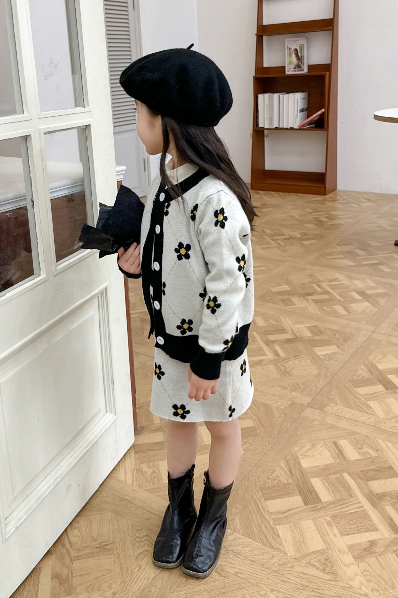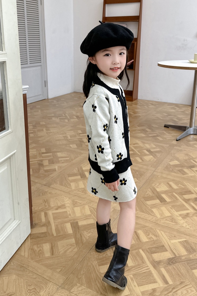 어린이 여아 봄 가을 2025 세트 니트 스웨터 한국 스타일 스포츠 가디건 코트 스커트 트렌디 아동복 유아용스토어 가기