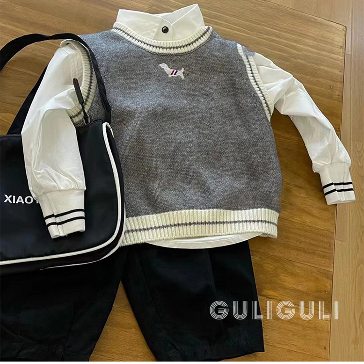 한국 아동복 소년의 조끼 가을 잘 생긴 겉옷 민소매 조끼 유행 멋진 어린이 니트 조끼 가을 착용스토어 가기