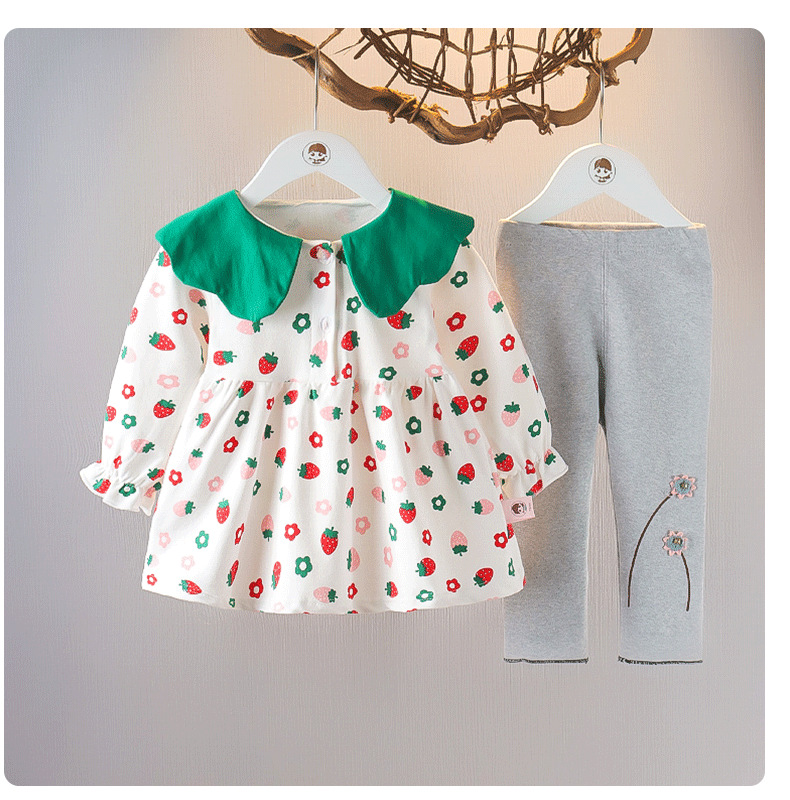 가을 소녀의 꽃 투피스 유행 아동 의류 아기 소녀의 가을 의류 서양 스타일 세트 아기의 가을 옷스토어 가기