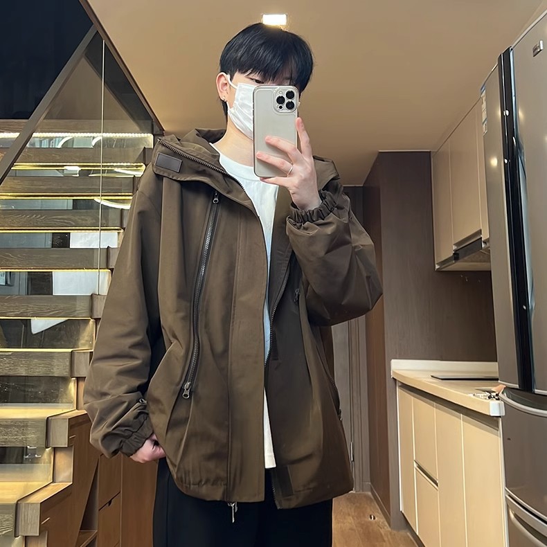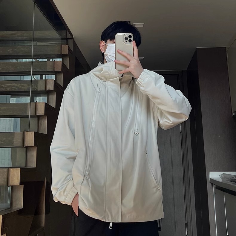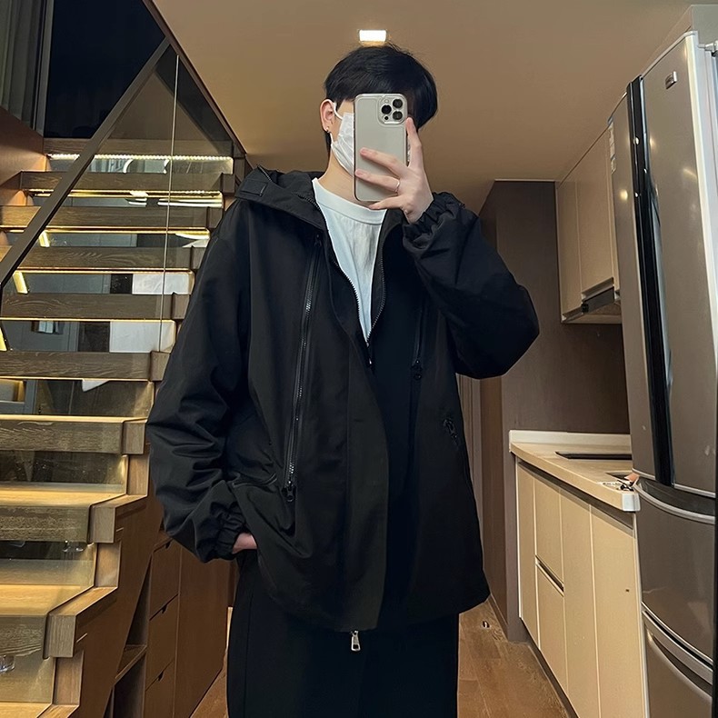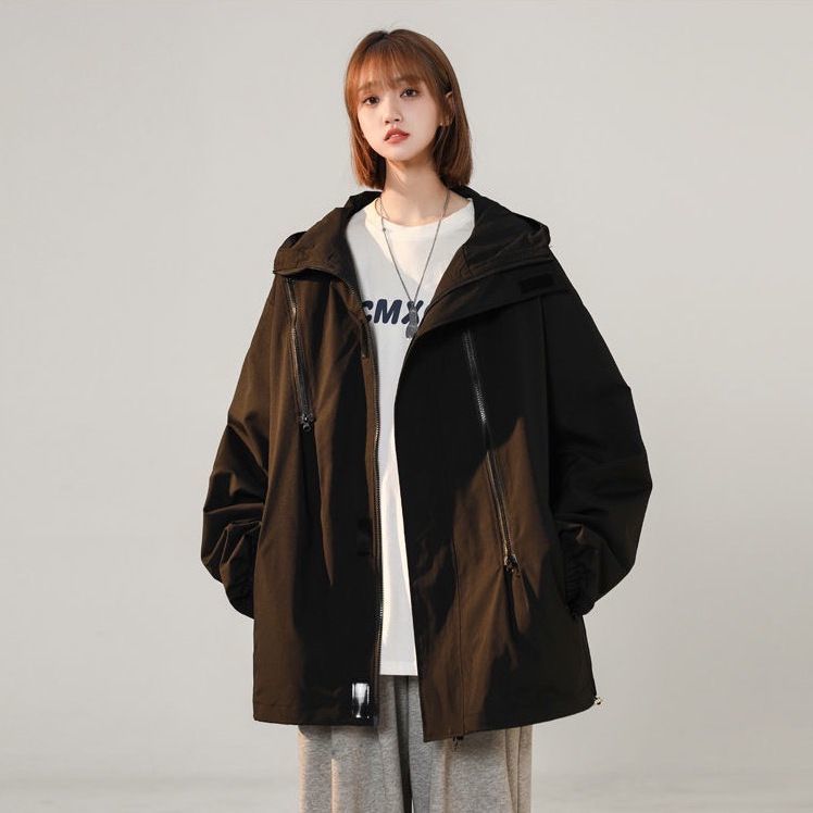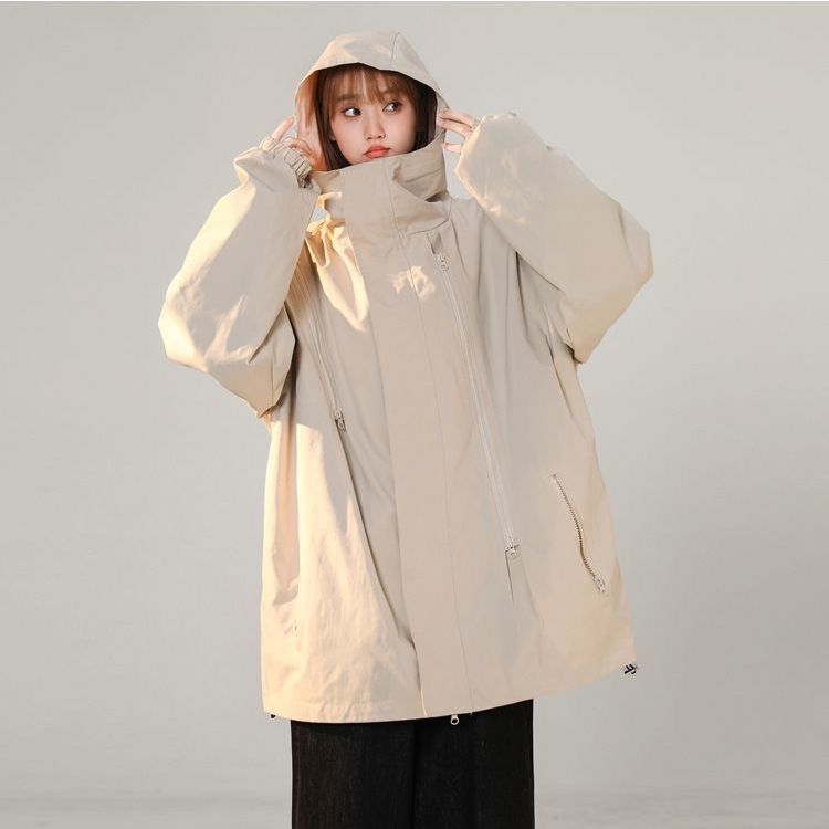 봄 방풍 및 방수 기능 충전 의류 여성 사이드 지퍼 플러스 사이즈 남성과 여성을위한 느슨한 후드 작업 재킷 코트스토어 가기