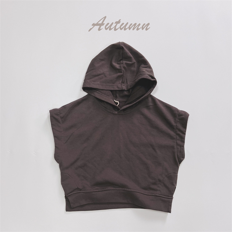 어린이 가을 조끼 한국 아동복 느슨한 캐주얼 단색 후드 조끼 소년과 소녀 민소매 스웨터 까마귀
