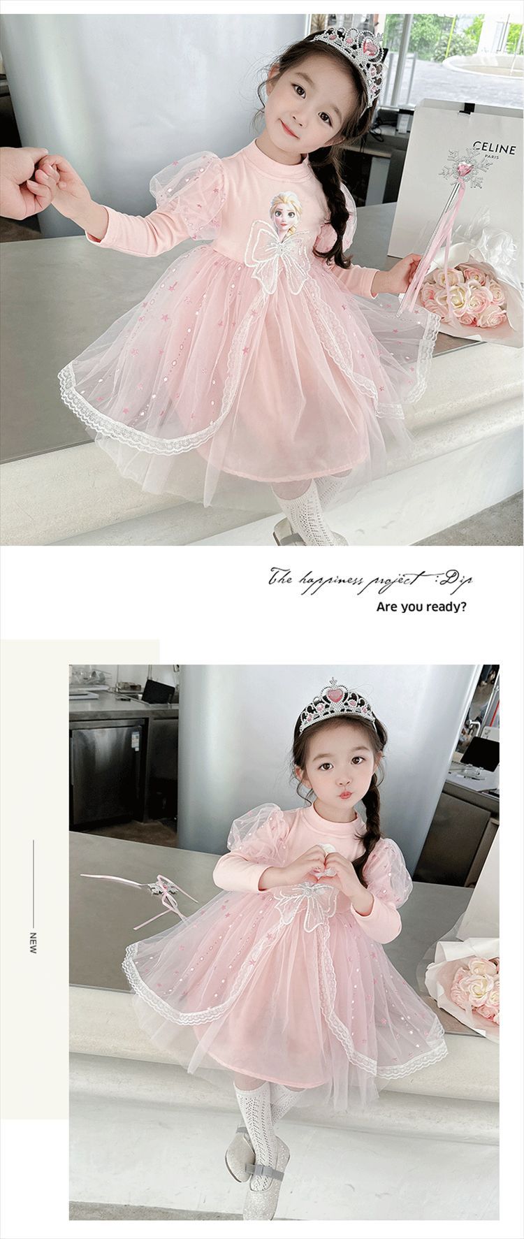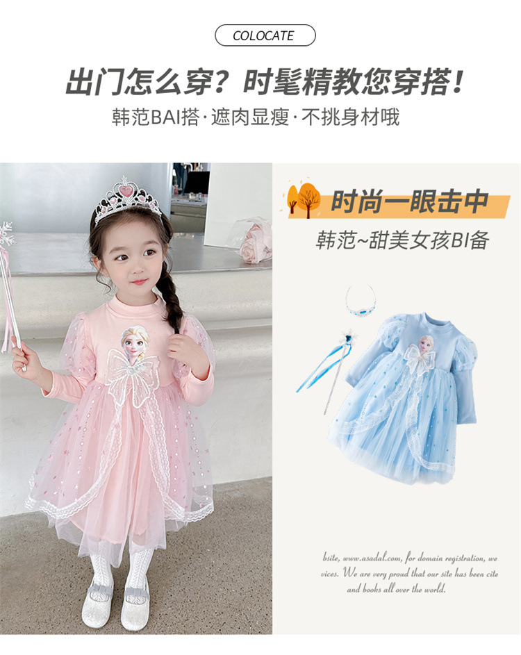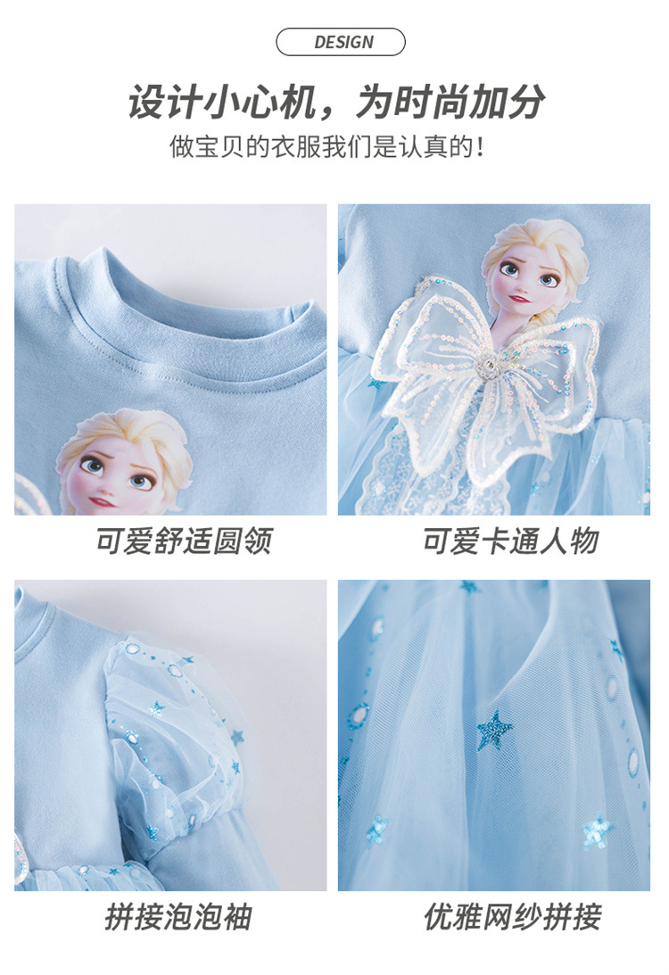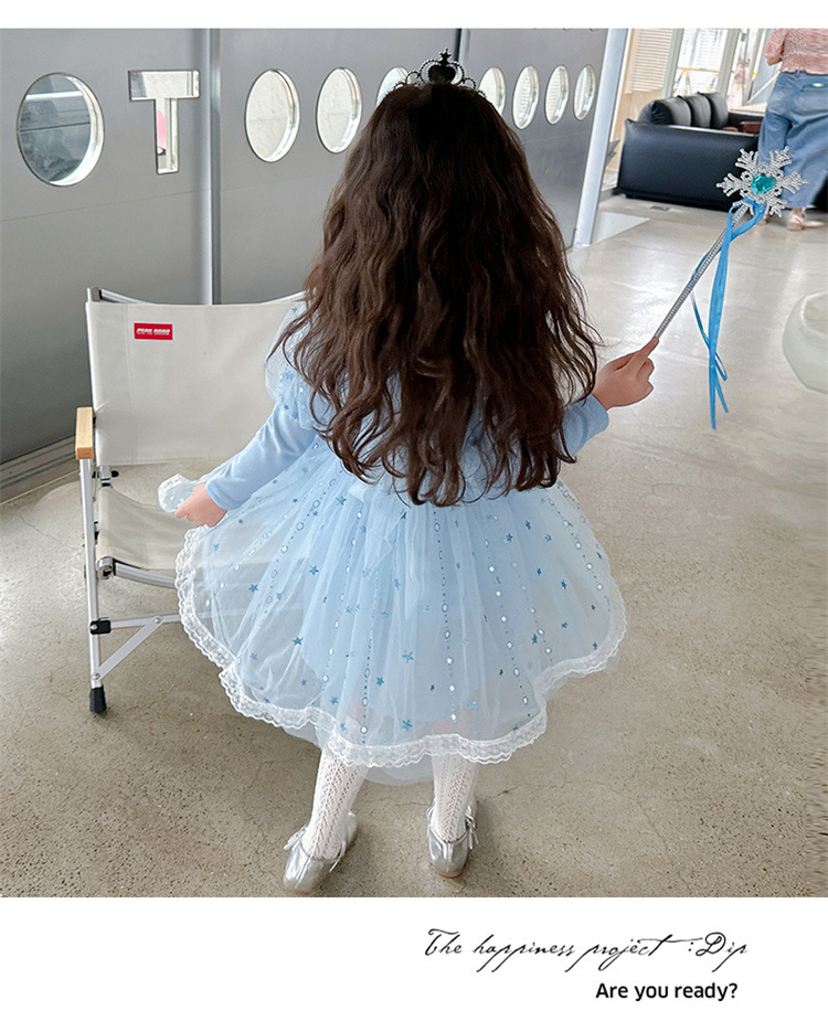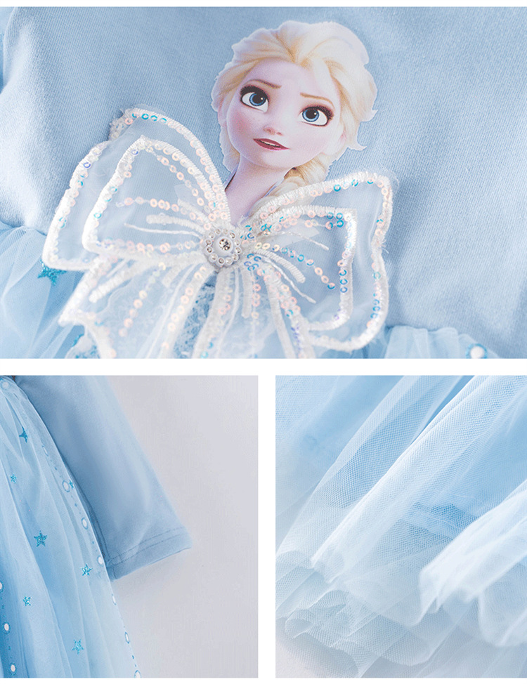 여자 한국 스타일 긴팔 엘사 공주 드레스 어린이 2025 새로운 가을 엘사 드레스 코튼 메쉬 스커트 유행스토어 가기