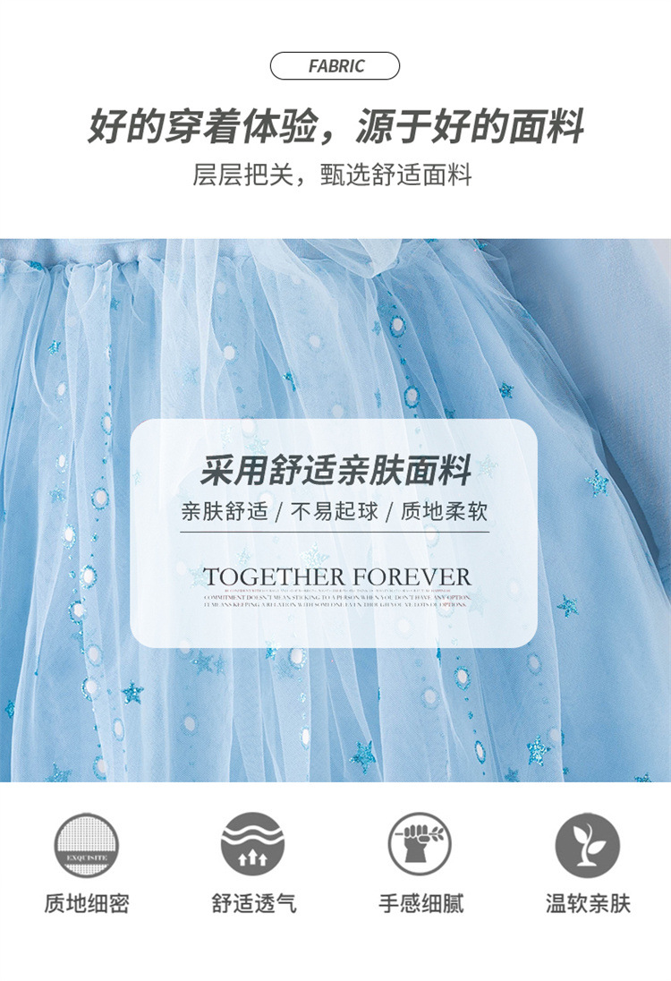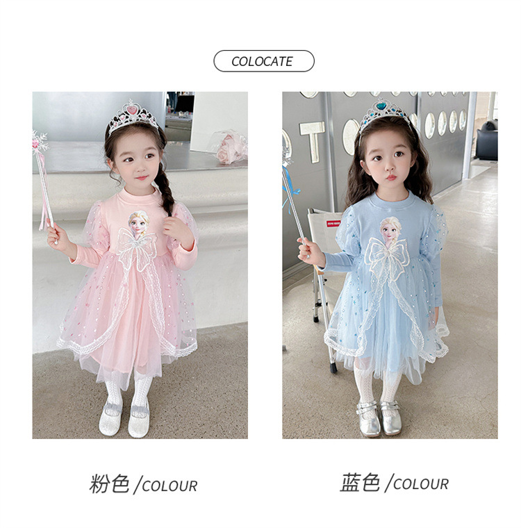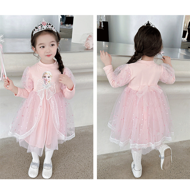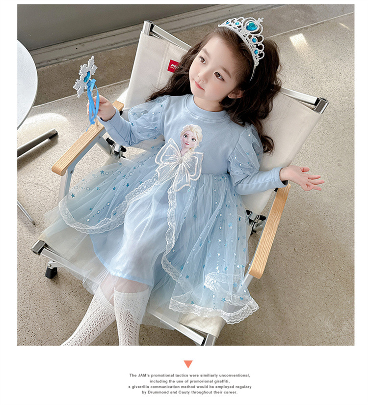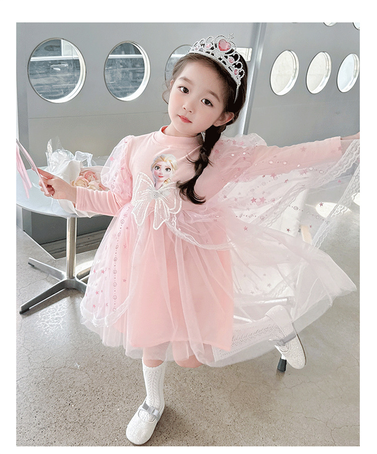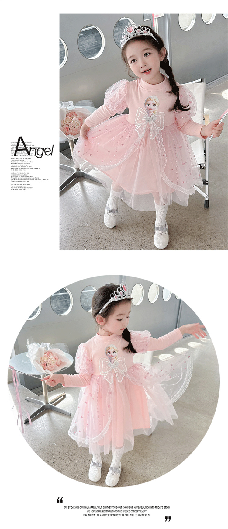 여자 한국 스타일 긴팔 엘사 공주 드레스 어린이 2025 새로운 가을 엘사 드레스 코튼 메쉬 스커트 유행스토어 가기