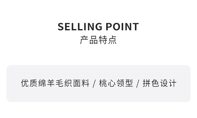 特点优质绵羊毛织面料,桃心领型,拼色设计