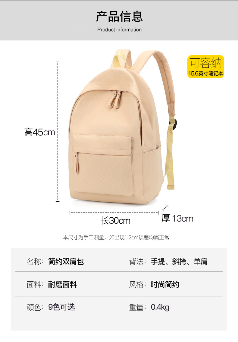크로스보더 공급 2023 새로운 백팩 남녀 대학생 심플 백팩 패션 모든 매치 고등학교 책가방