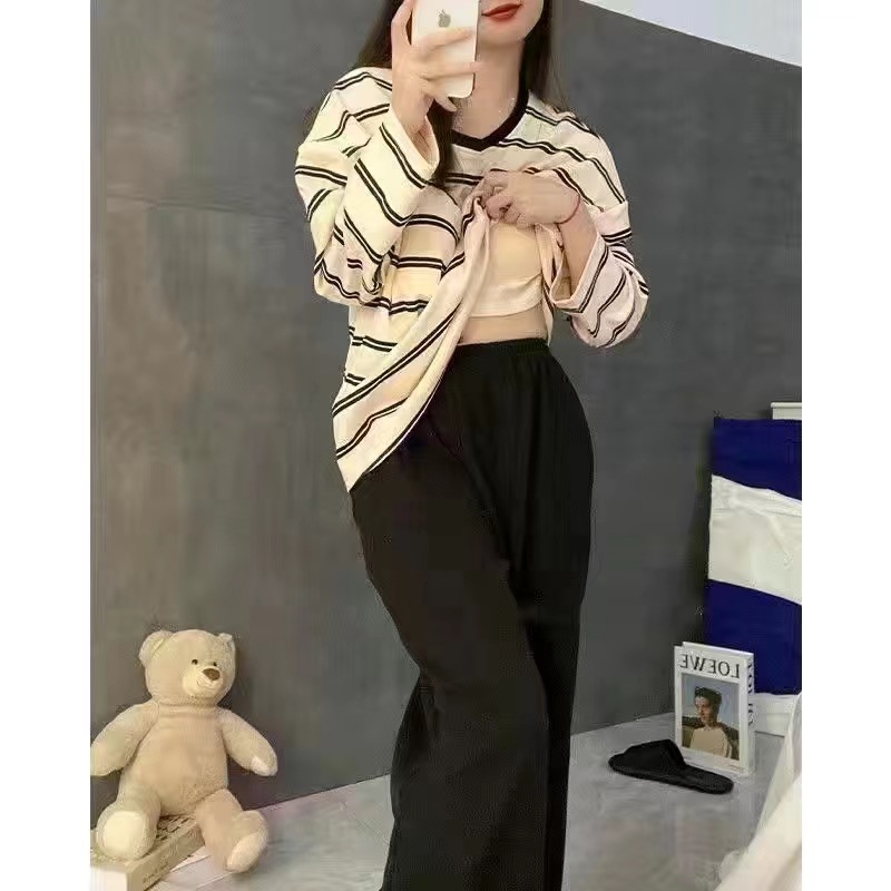 봄과 가을 새로운 긴팔 바지 가슴 패드 단색 달콤한 느슨한 플러스 사이즈 플러스 뚱뚱한 간단한 가정 옷 세트스토어 가기