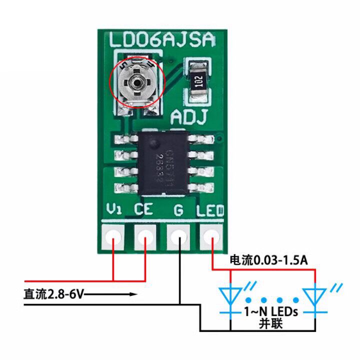 工作电压:DC 2.8-6V(适用于3V 3.3V 3.7V 4.5V 5V 6V LED驱动器)