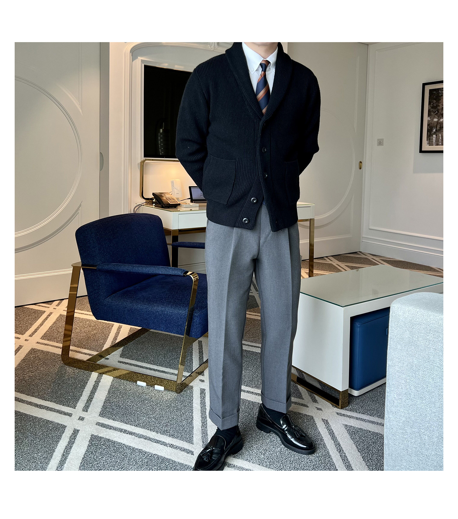 가을과 겨울 고급 숄 칼라 가디건 남성용 레트로 슬림핏 라이트 성숙한 비즈니스 니트웨어 인기 스웨터 코트 남성스토어 가기