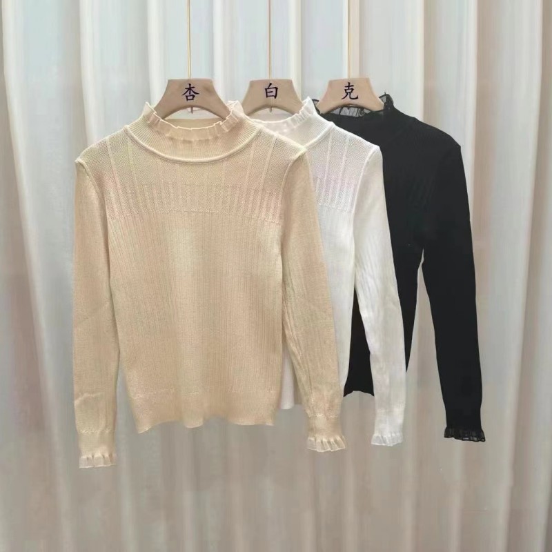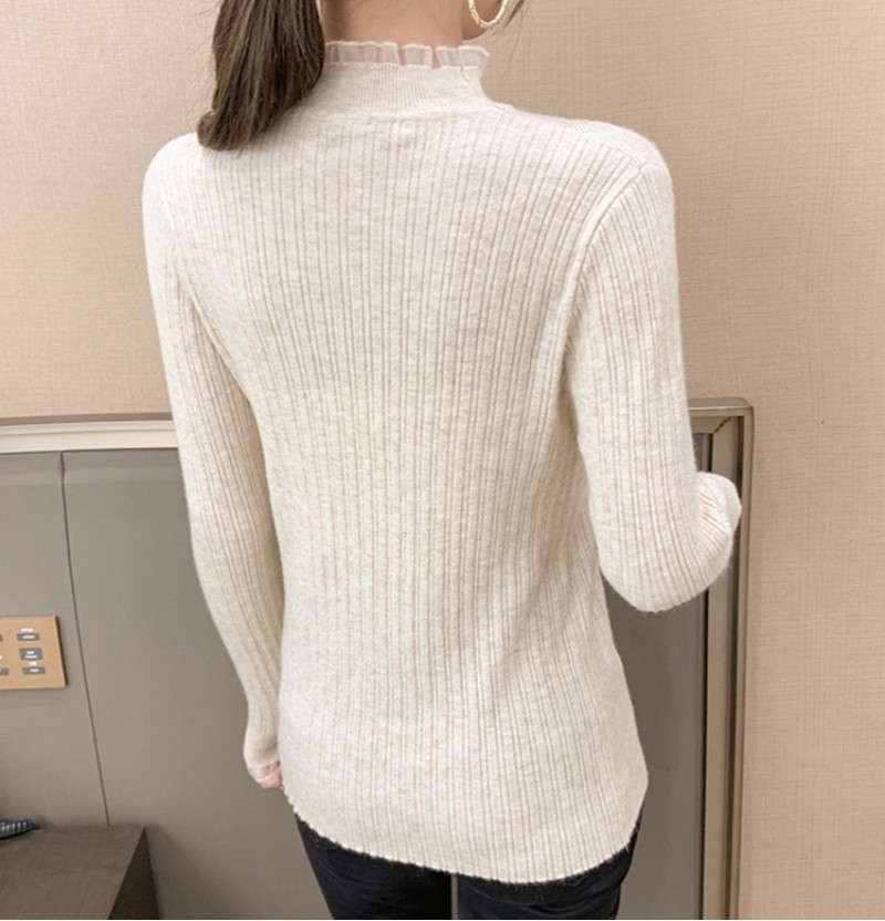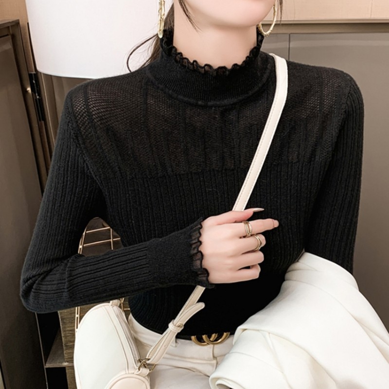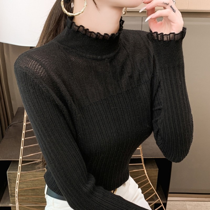 여성용 하프 하이 칼라 레이스 베이스 셔츠 봄과 가을 새로운 니트 내부 스웨터 세련된 디자인 세련된 탑스토어 가기