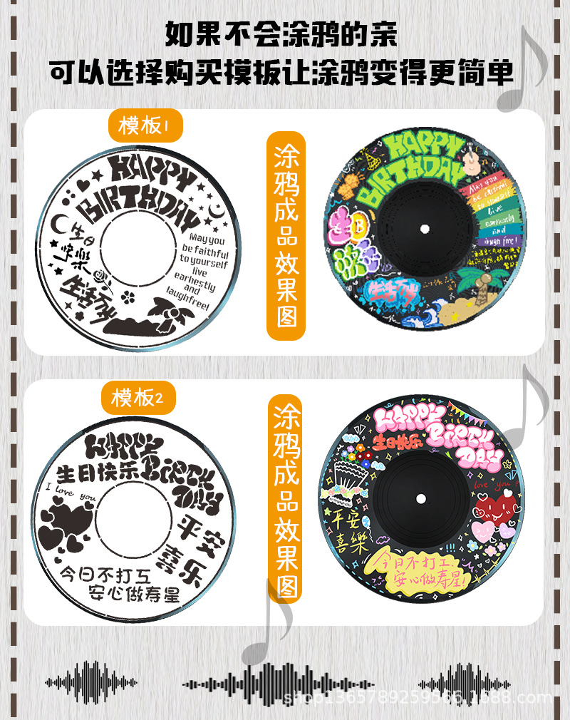 넷플레이 클라우드 시뮬레이션 블랙글로스 레코드 그래피티 DIY 생일 졸업 축하 선물 장식 시계 장식품