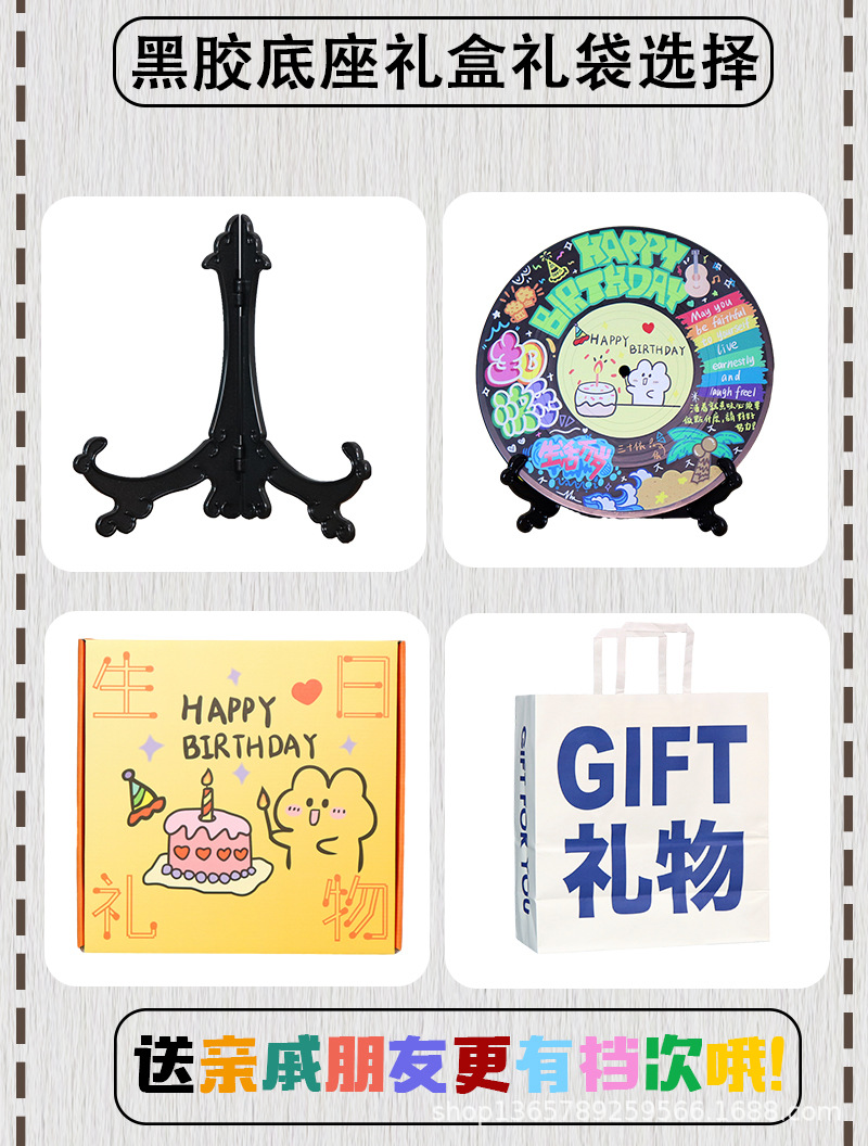 • 레드 생일 축하 + 8 색 펜 + 베이스 + 선물 가방