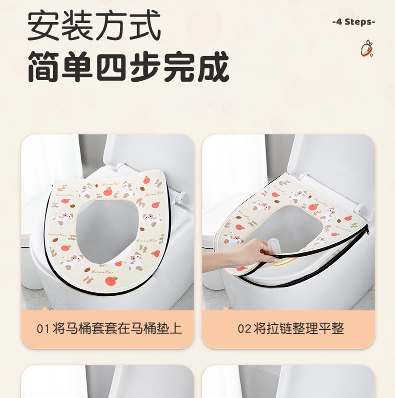 만화 인쇄 봉제 사계절 유니버설 방수 변기 커버 가을과 겨울 가정용 변기 패드 화장실 착석 와셔