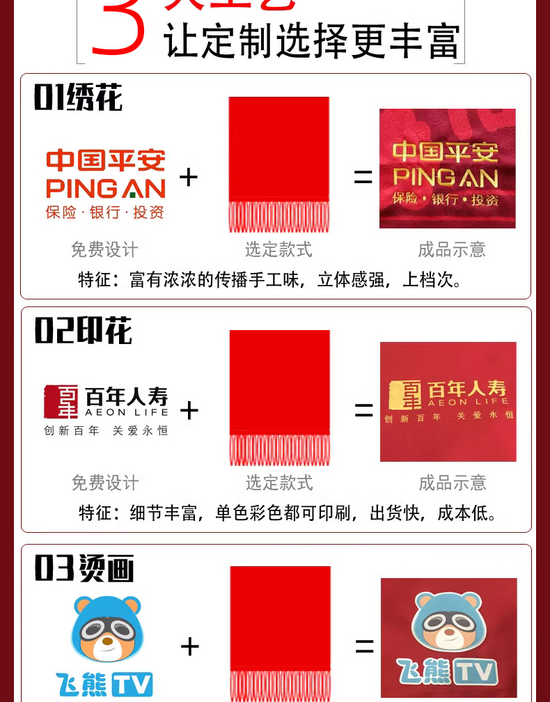 중국 레드 오프닝 레드 스카프 맞춤형 회사 이벤트 파티 로고 자수 회의 목도리 스카프 인쇄 선물스토어 가기