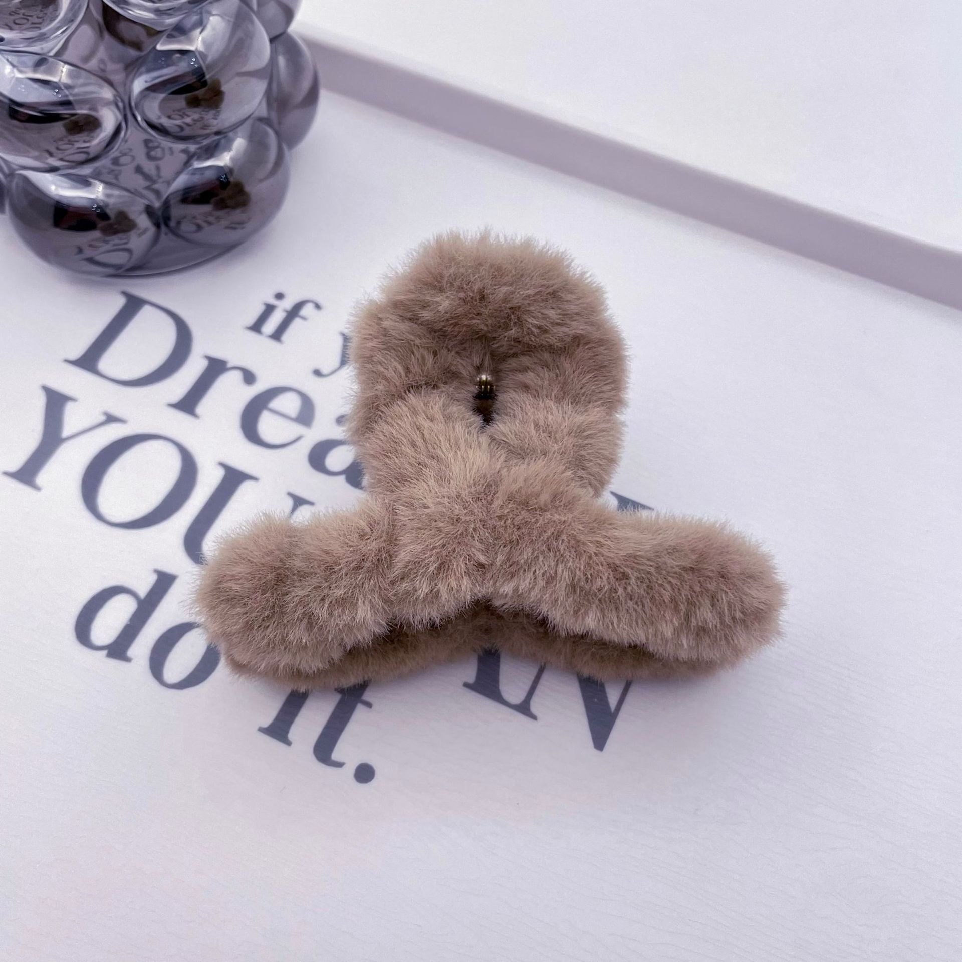 • 다크 브라운 및 단어 플러시 그랩 클립 [약 9cm 길이]]