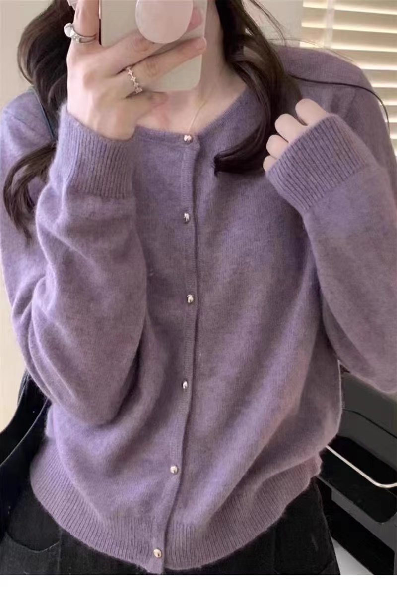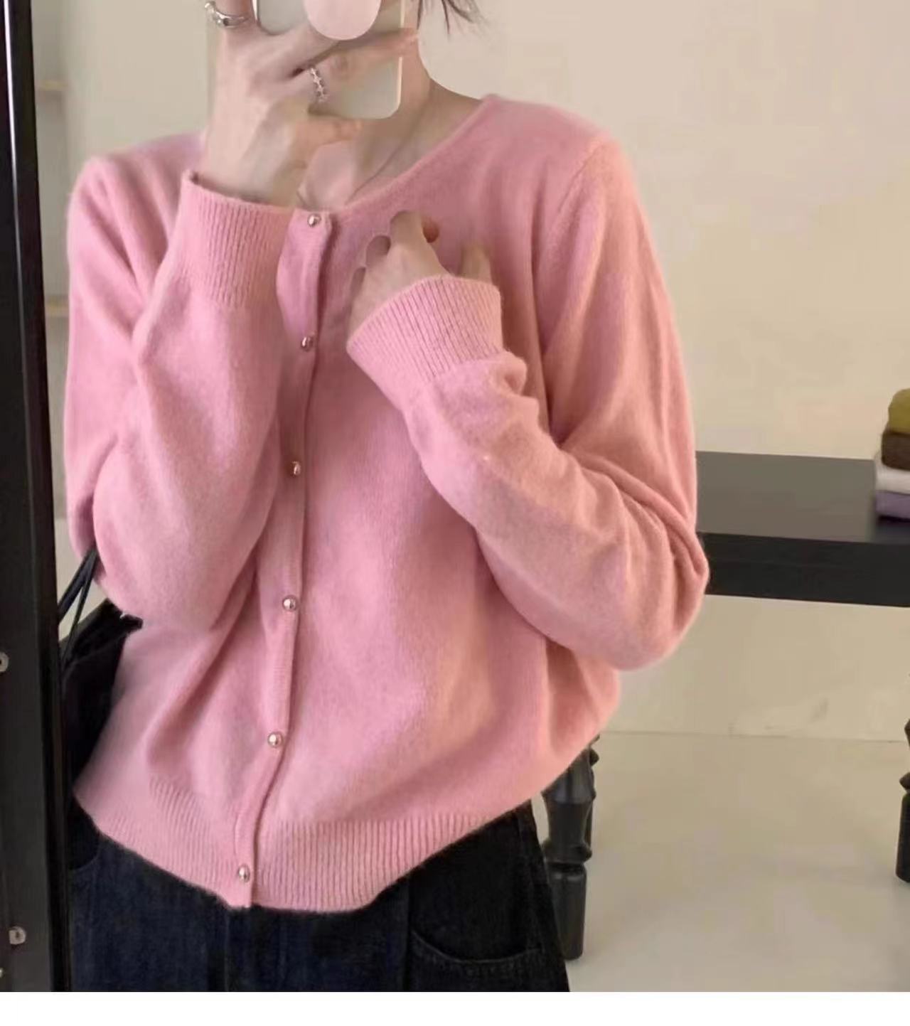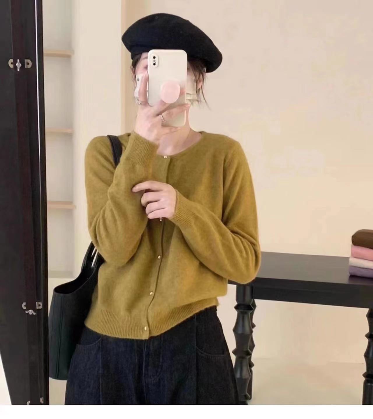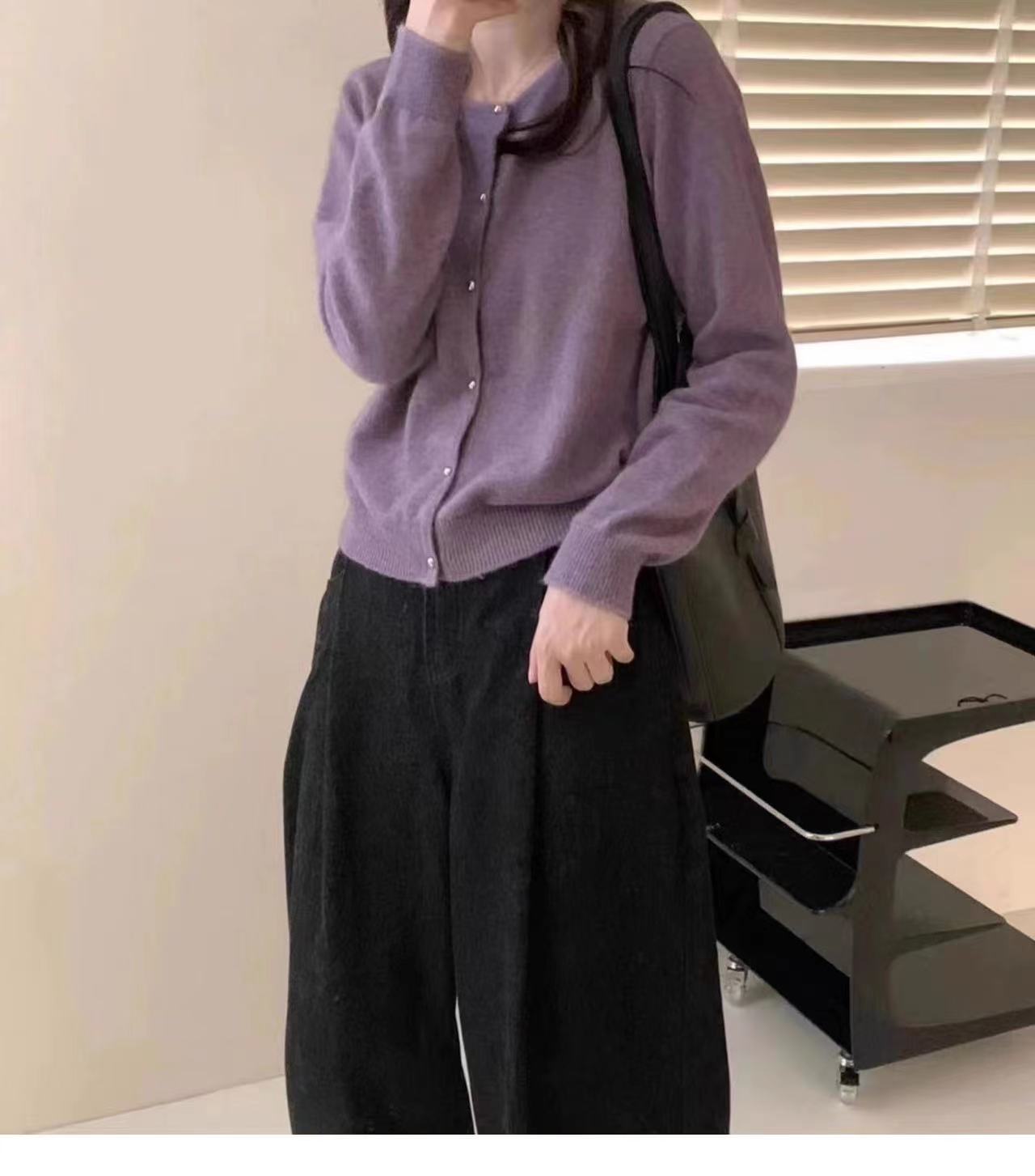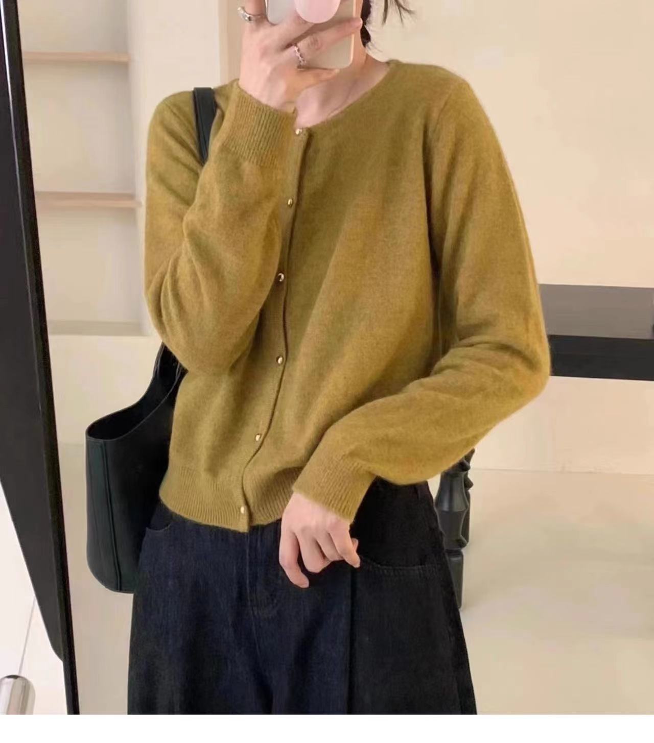 가을과 겨울 여성 크루 넥 울 니트 가디건 재킷 스웨터 단색 긴 소매베이스 울 스웨터 느슨한 캐주얼 탑