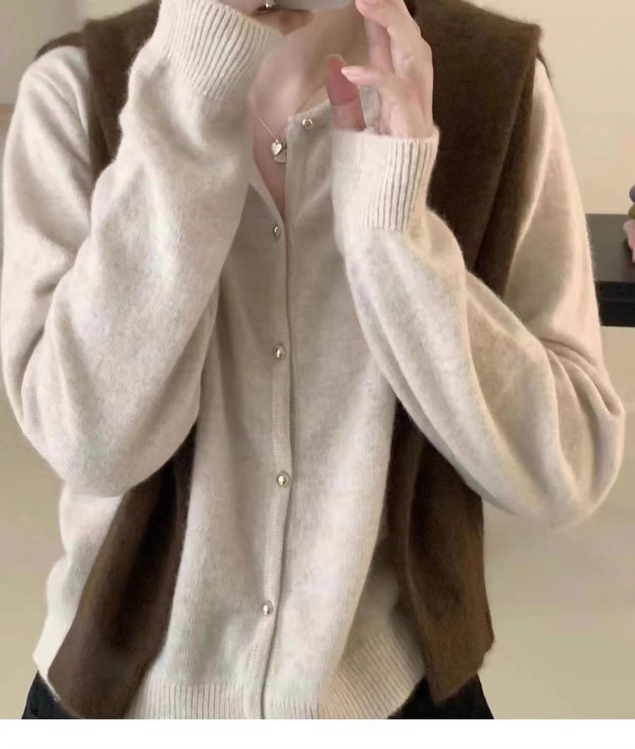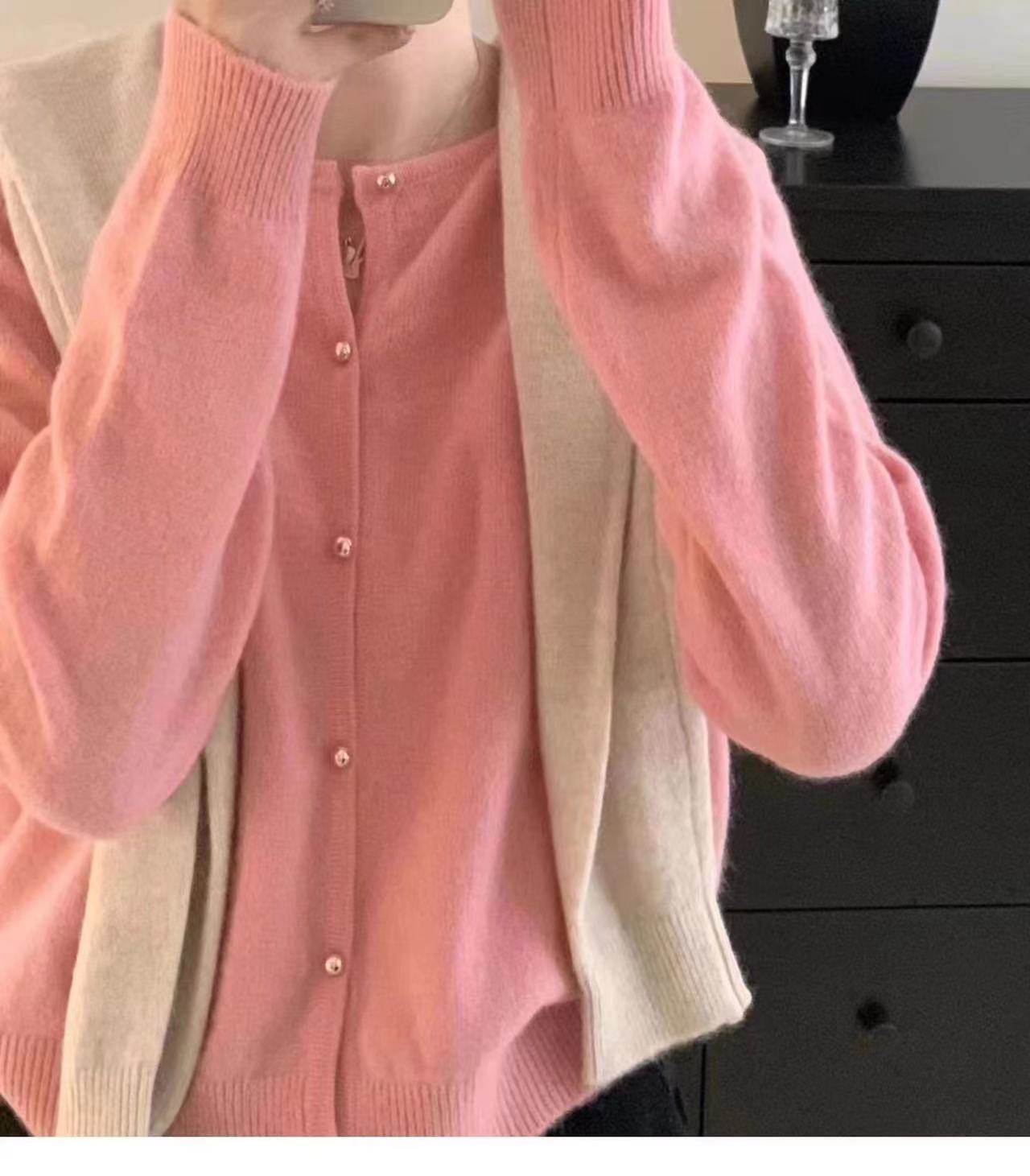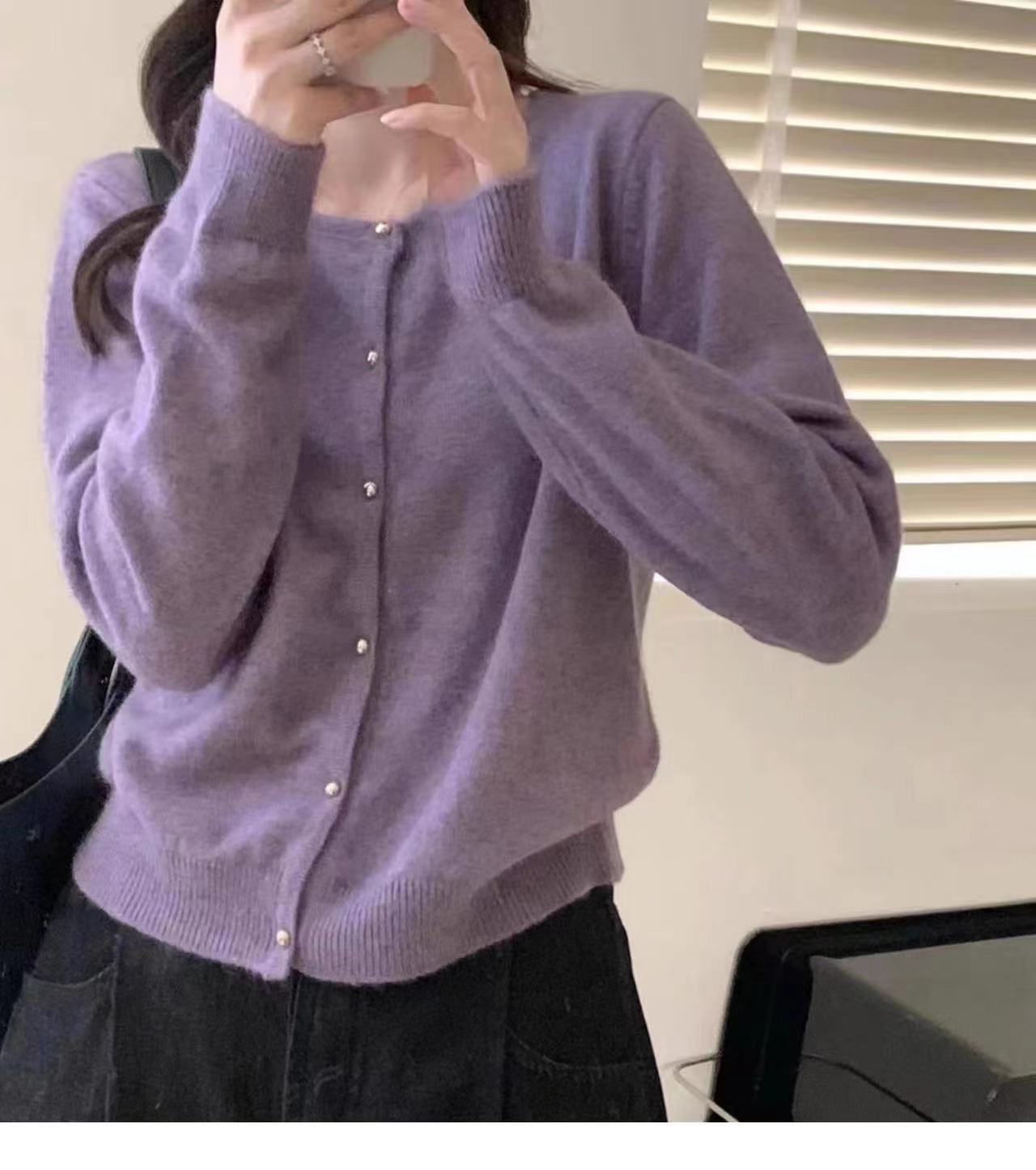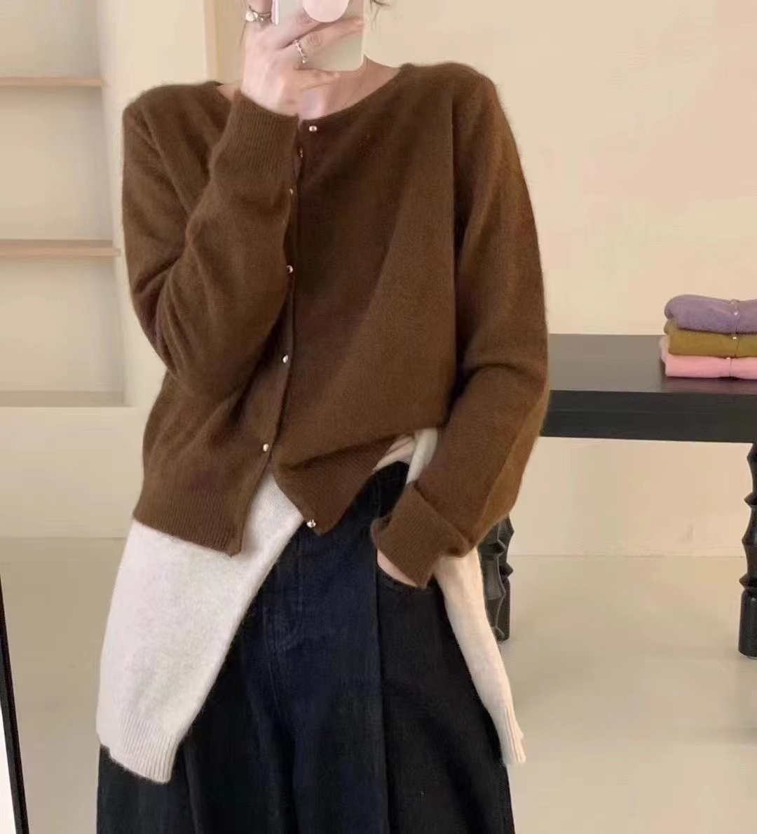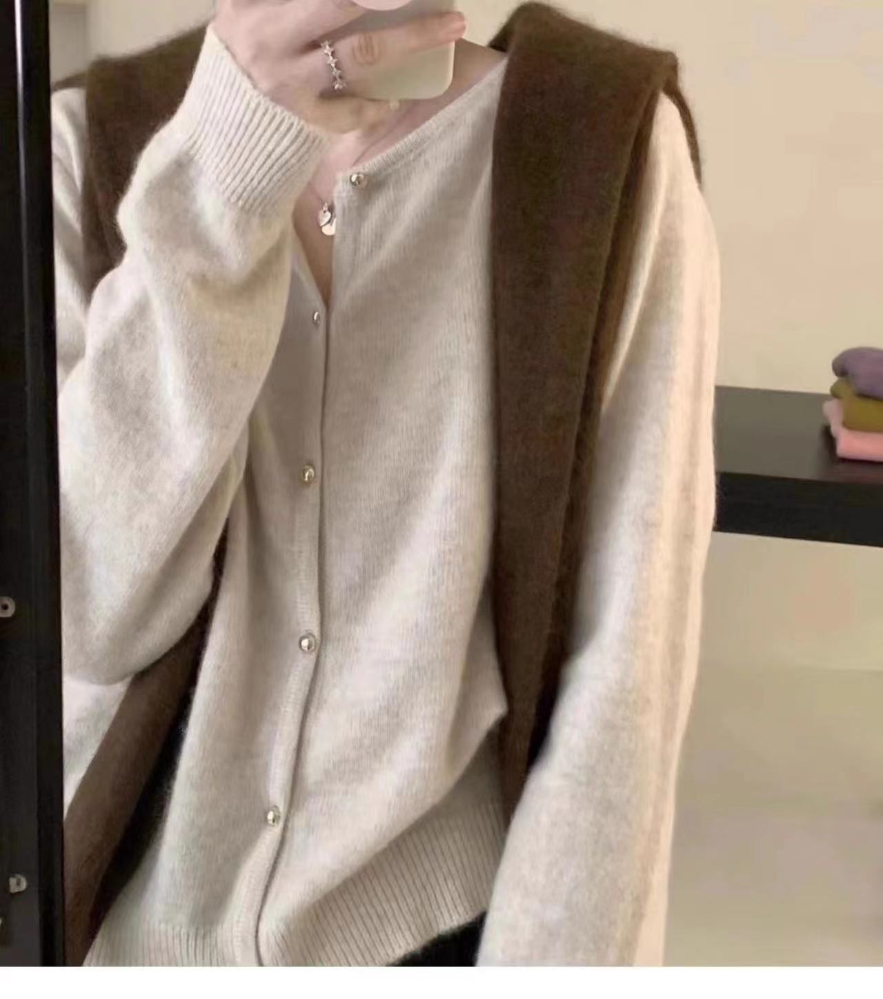 가을과 겨울 여성 크루 넥 울 니트 가디건 재킷 스웨터 단색 긴 소매베이스 울 스웨터 느슨한 캐주얼 탑