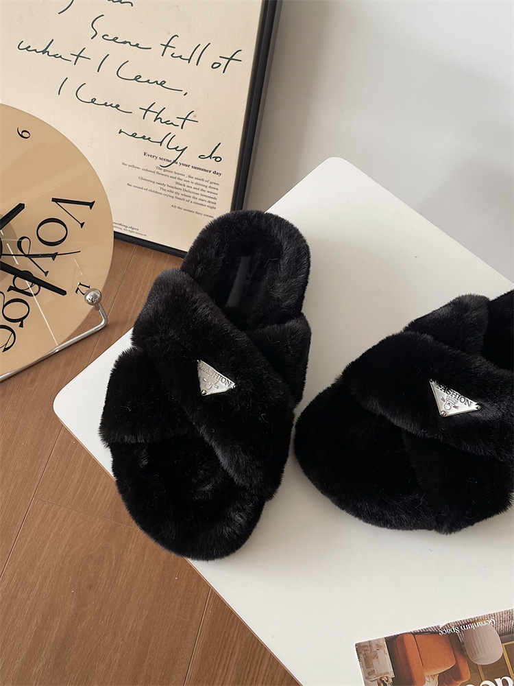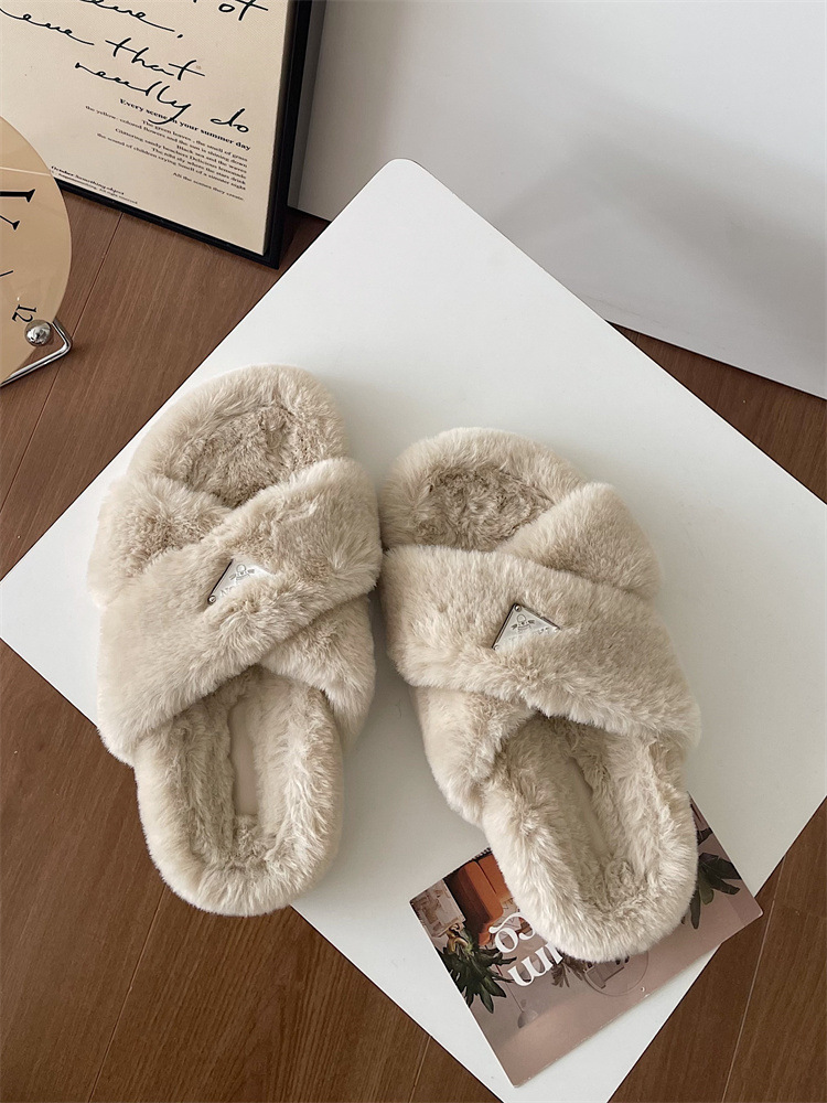 Jinmi Net 인기 바람 겉옷 푹신한 슬리퍼 여성 2023 가을과 겨울 새로운 두꺼운 바닥 미끄럼 방지 따뜻한 플러시 면 슬리퍼