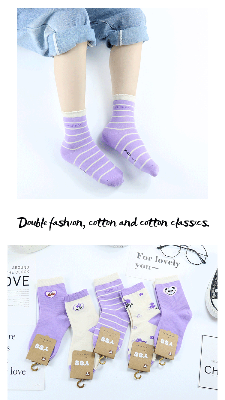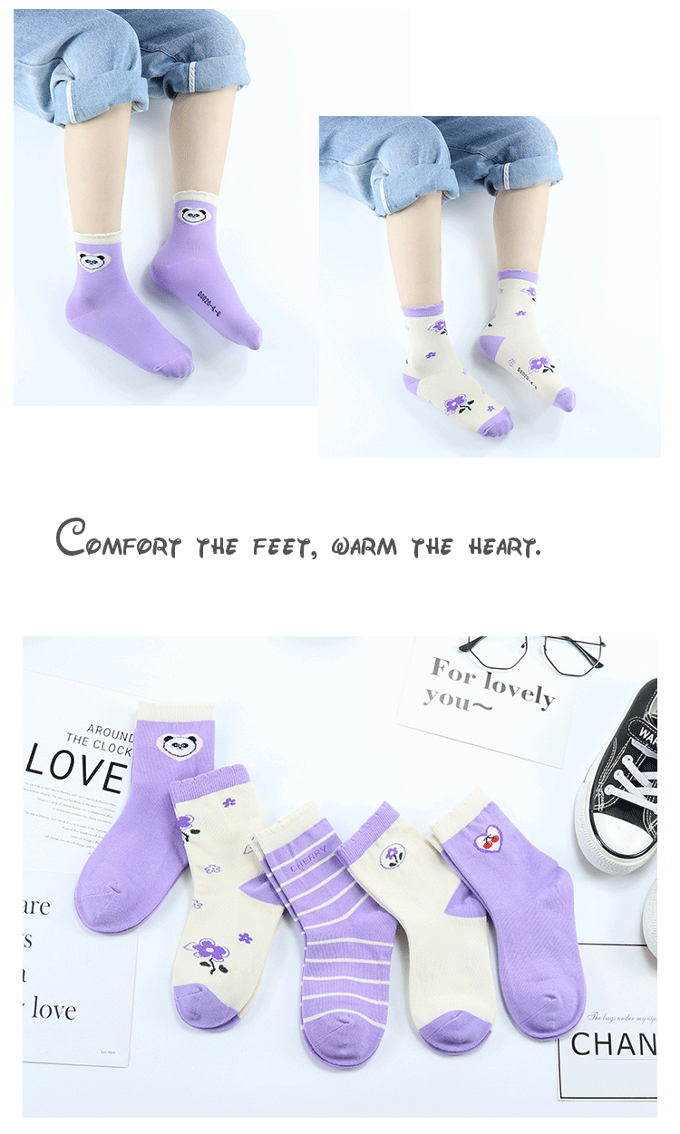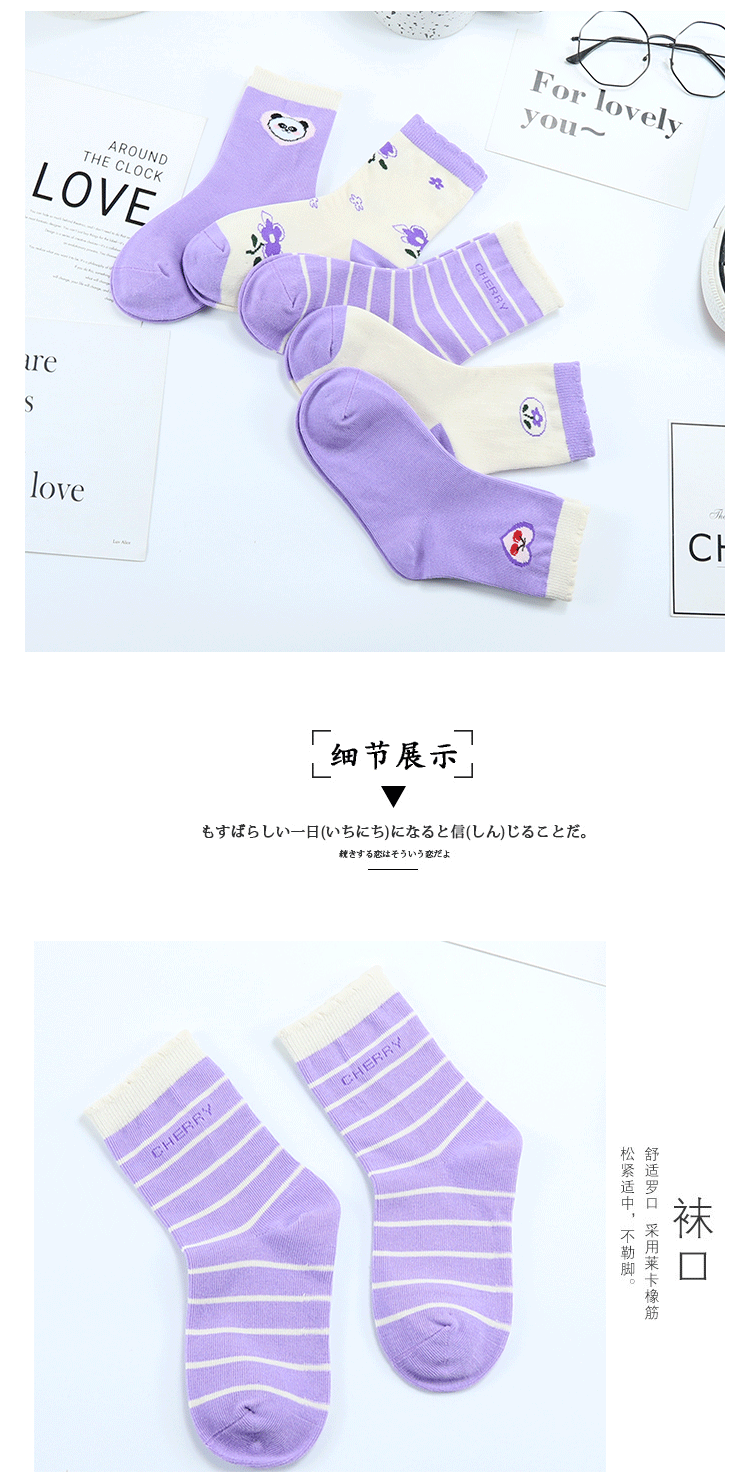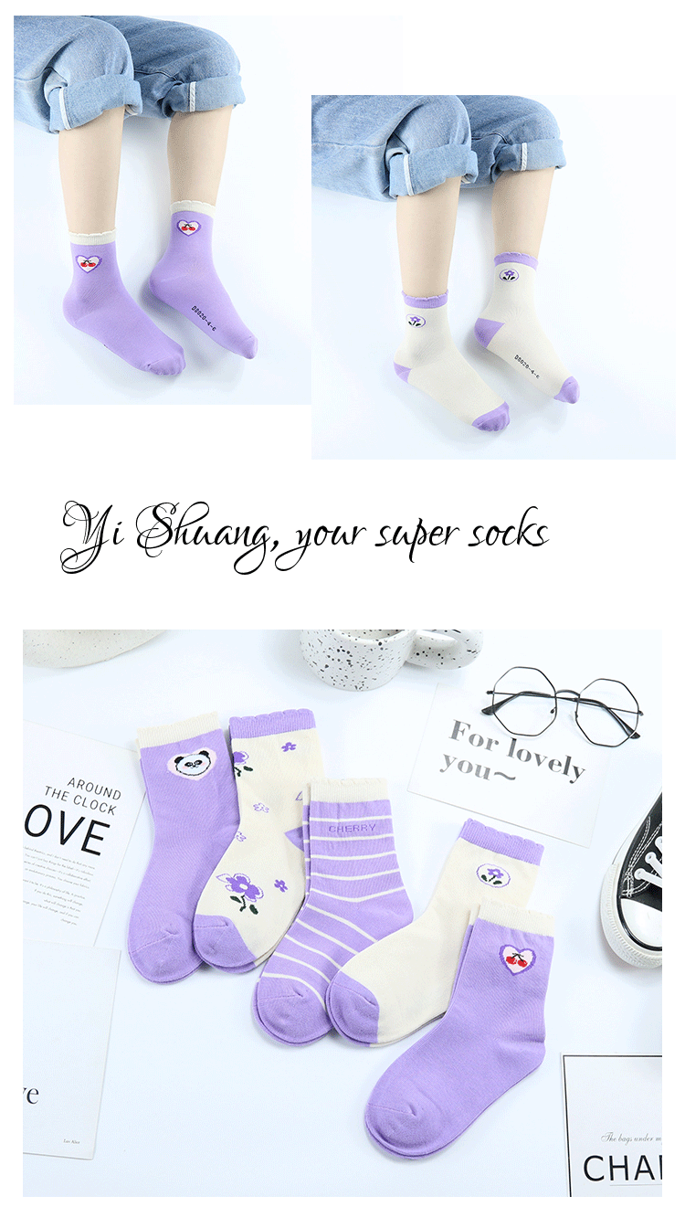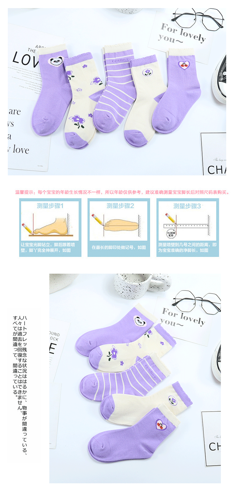 이순신 쌍 어린이 양말 가을과 겨울 새로운 두꺼운 만화 팬더 양말 빗질 코튼 퍼플 여자 학생 양말스토어 가기