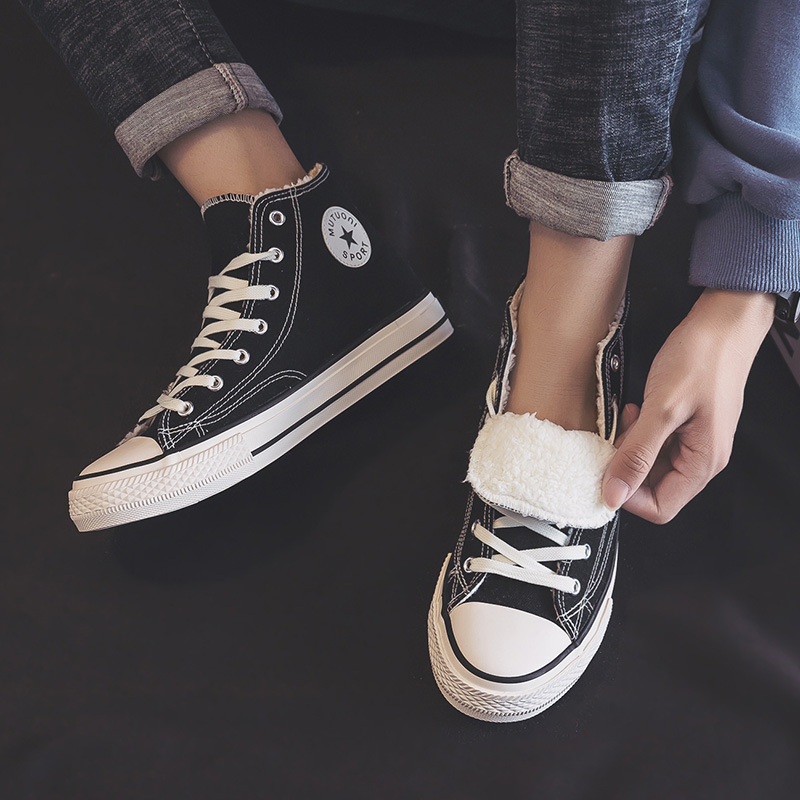 커플을위한 벨벳 캔버스 신발 겨울 한국 스타일 다목적 캐주얼 신발 두꺼운 따뜻한 면화 복제 1970 년대 남성 신발 M20