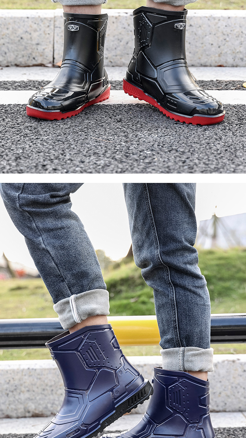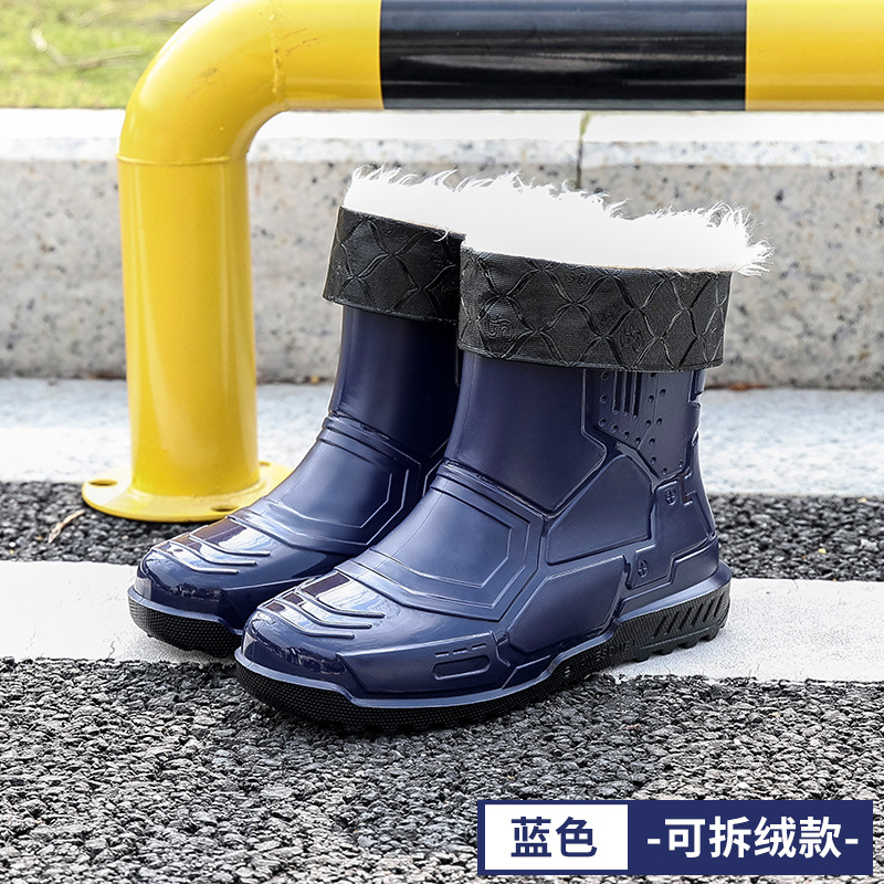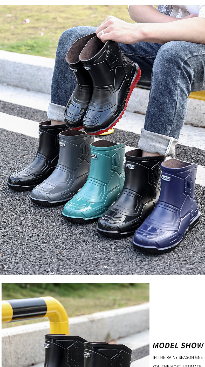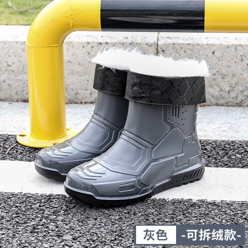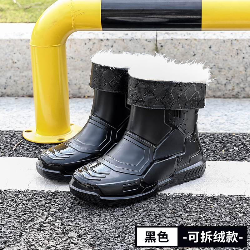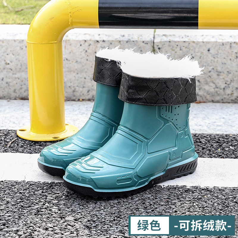 헤어 레인 슈즈 남성용 및 여성용 쇼트 튜브 워터 슈즈 성인 플랫 따뜻한 방수 부츠 짧은 학생 고무 신발 남성용 오버 슈즈 도매스토어 가기