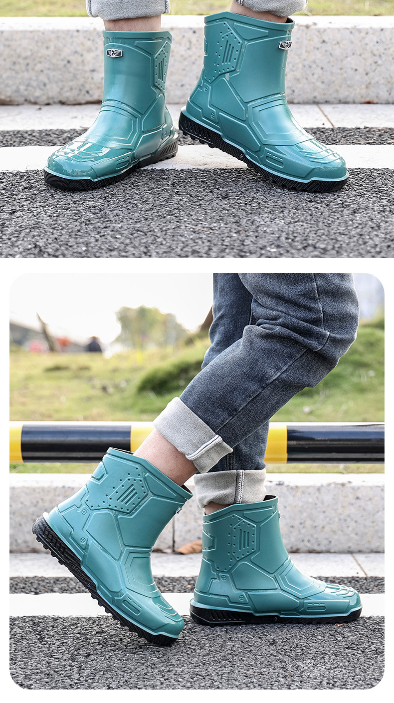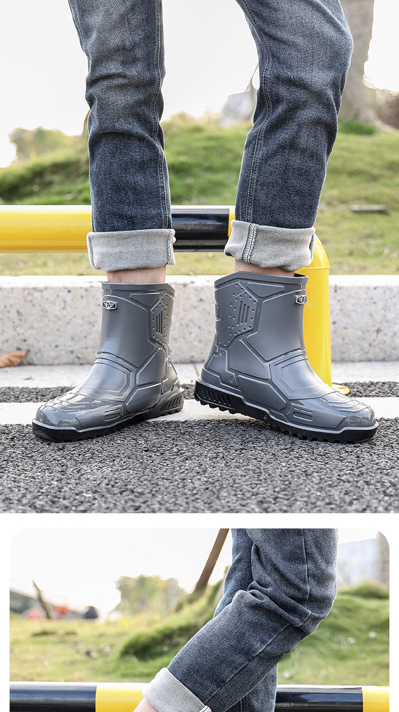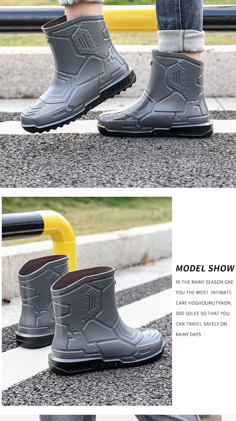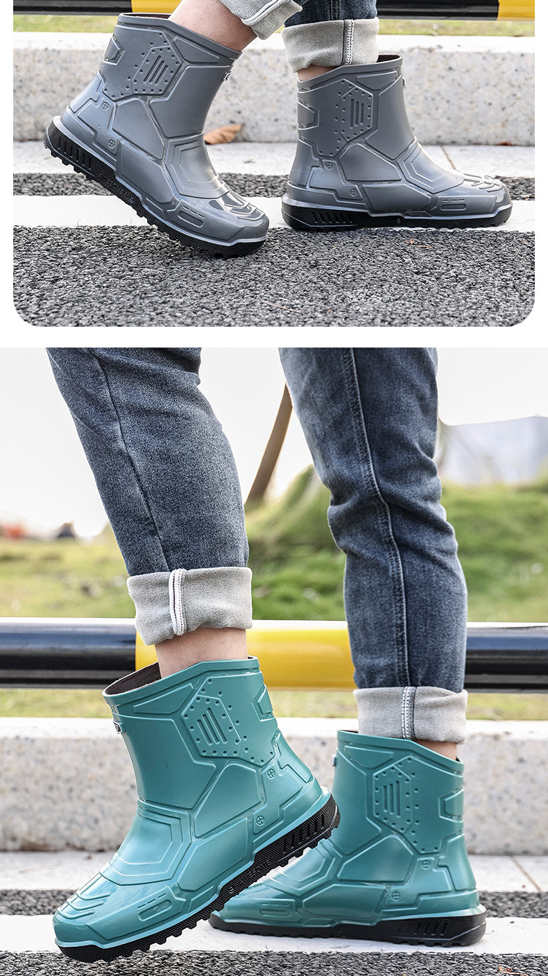 헤어 레인 슈즈 남성용 및 여성용 쇼트 튜브 워터 슈즈 성인 플랫 따뜻한 방수 부츠 짧은 학생 고무 신발 남성용 오버 슈즈 도매스토어 가기