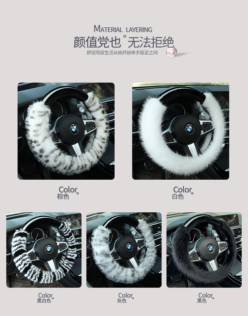 XH 새로운 F44 겨울 플러시 자동차 핸들 커버 긴 머리 드릴 크리 에이 티브 숙녀 스트라이프 단색 유니버설